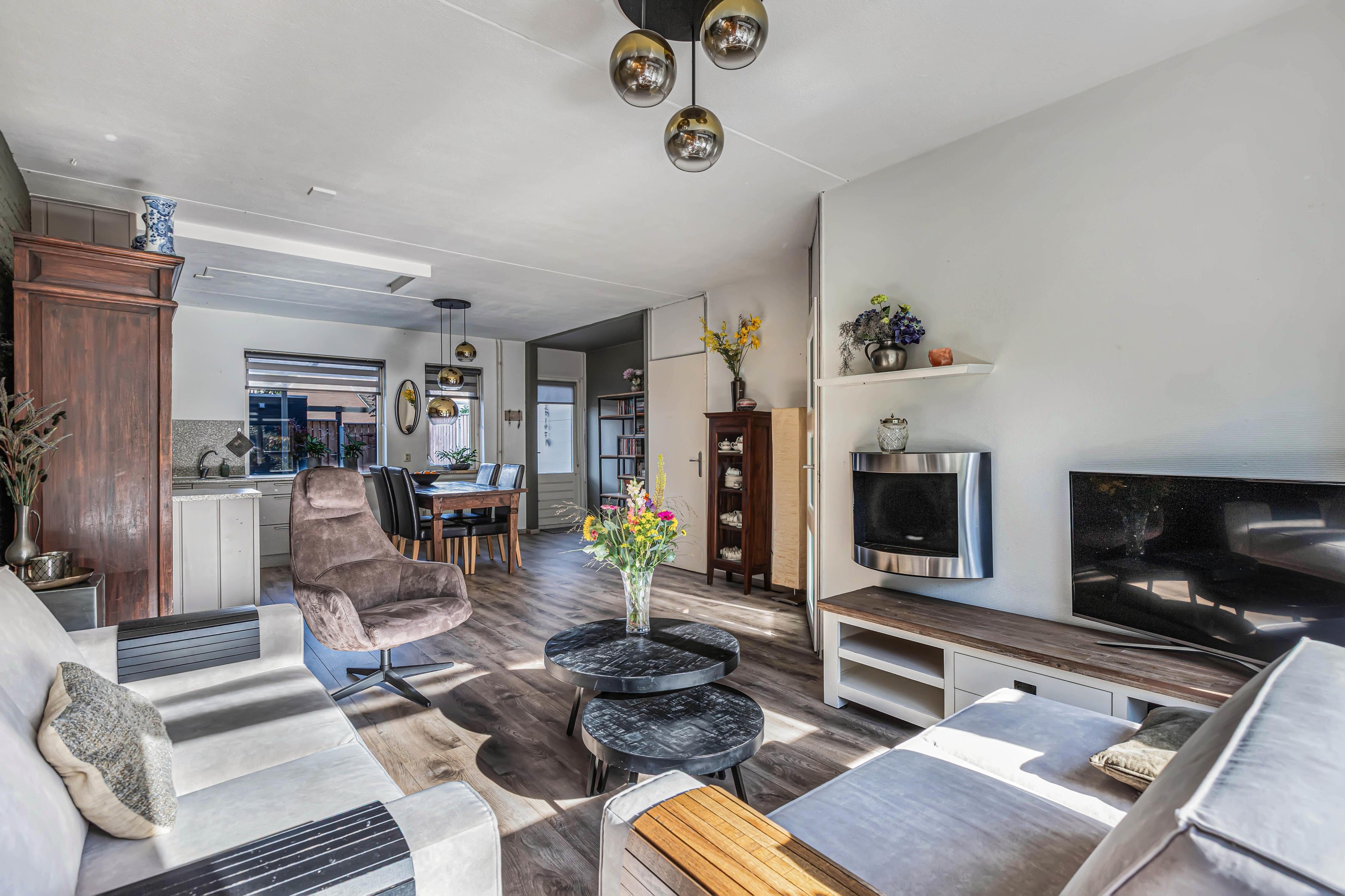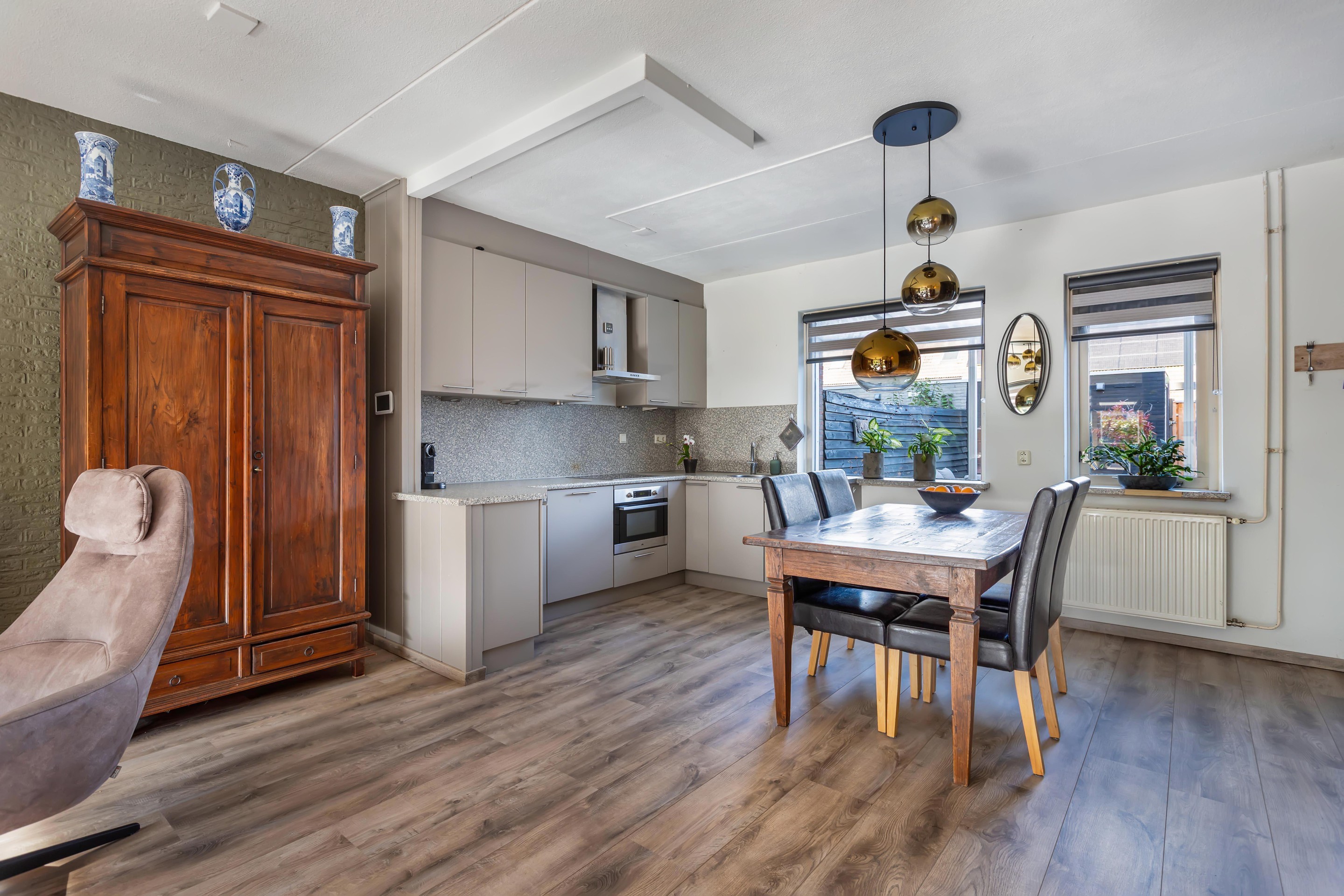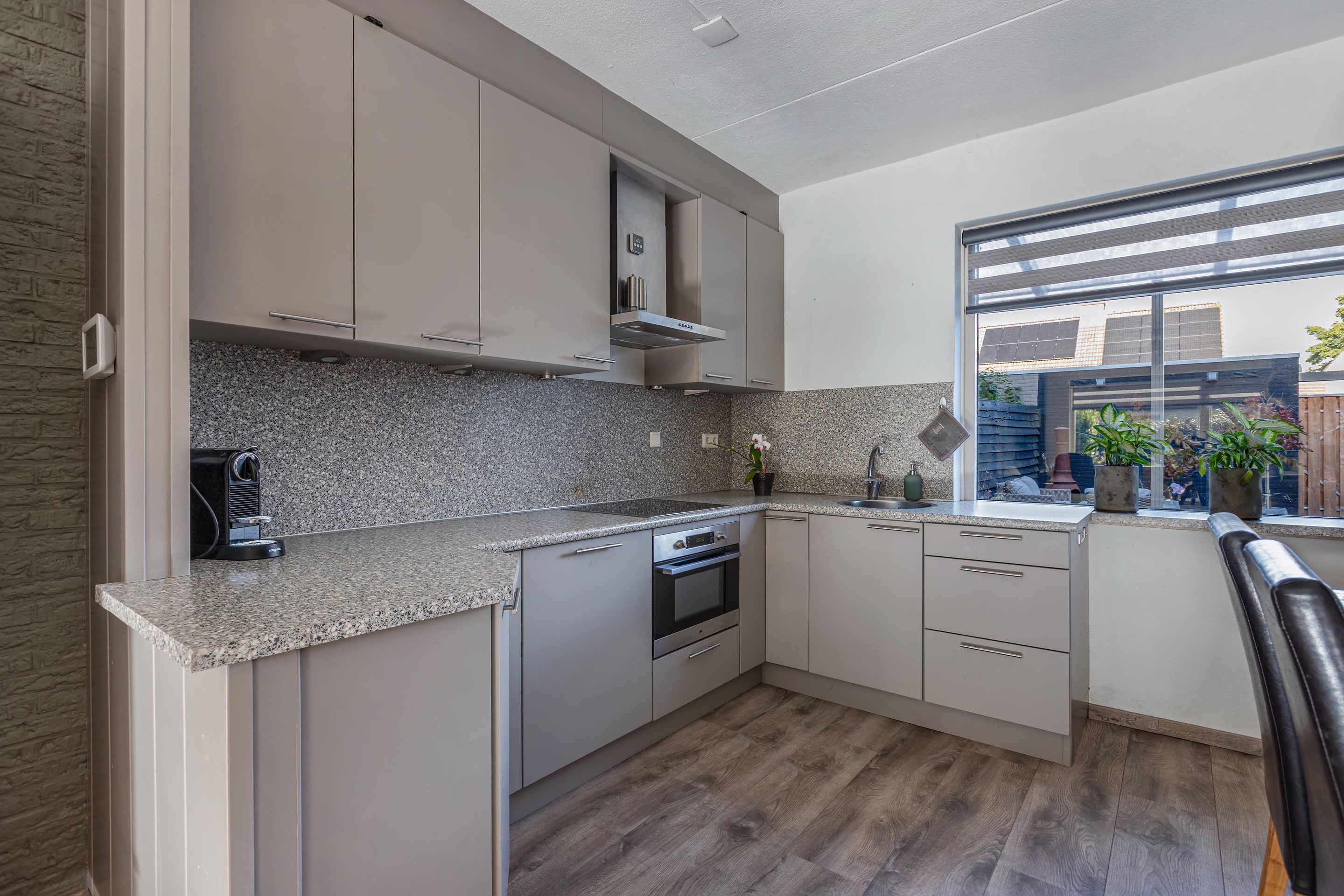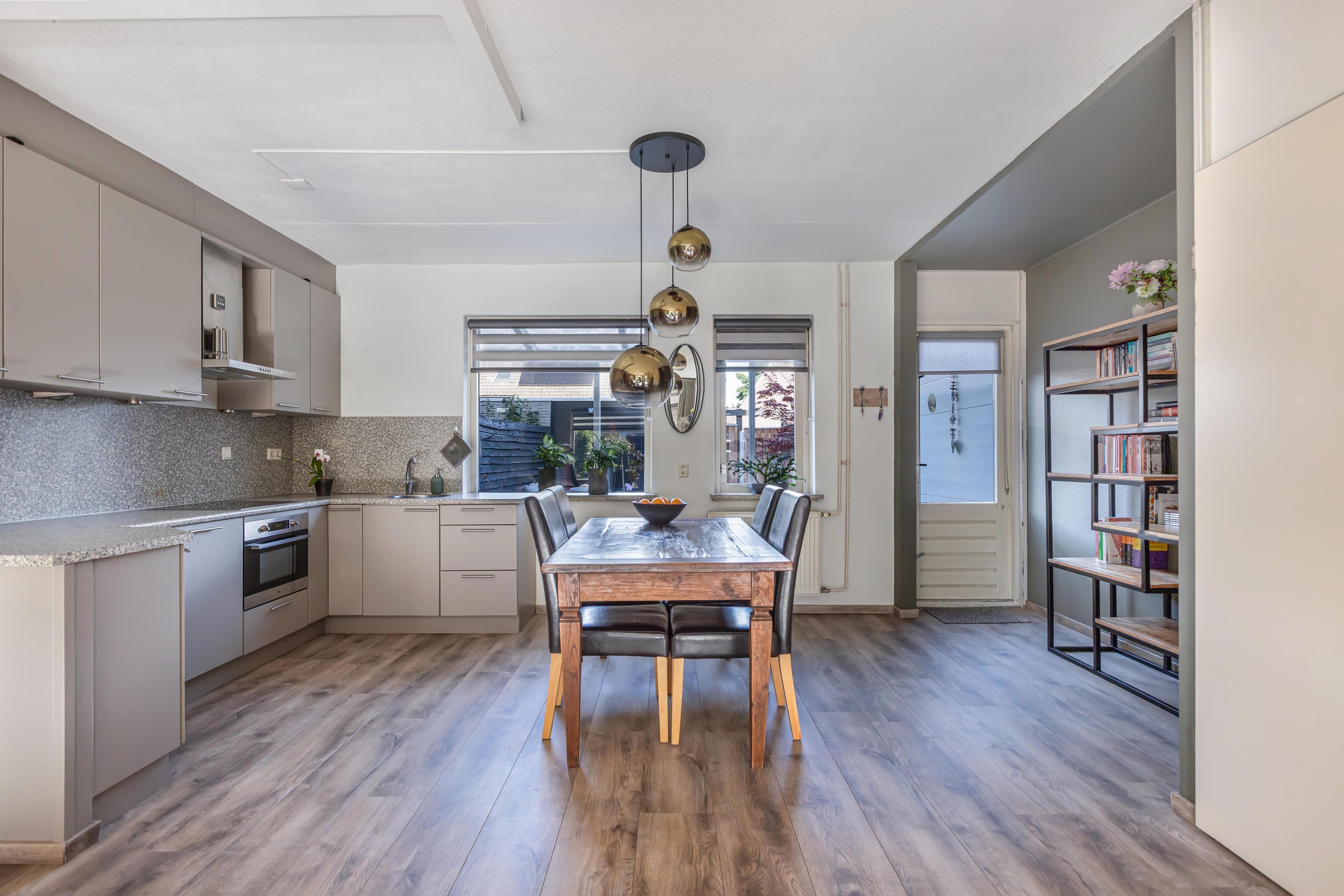 - Open keuken (in 2023 gerenoveerd) met diverse inbouwapparatuur en trapkast.