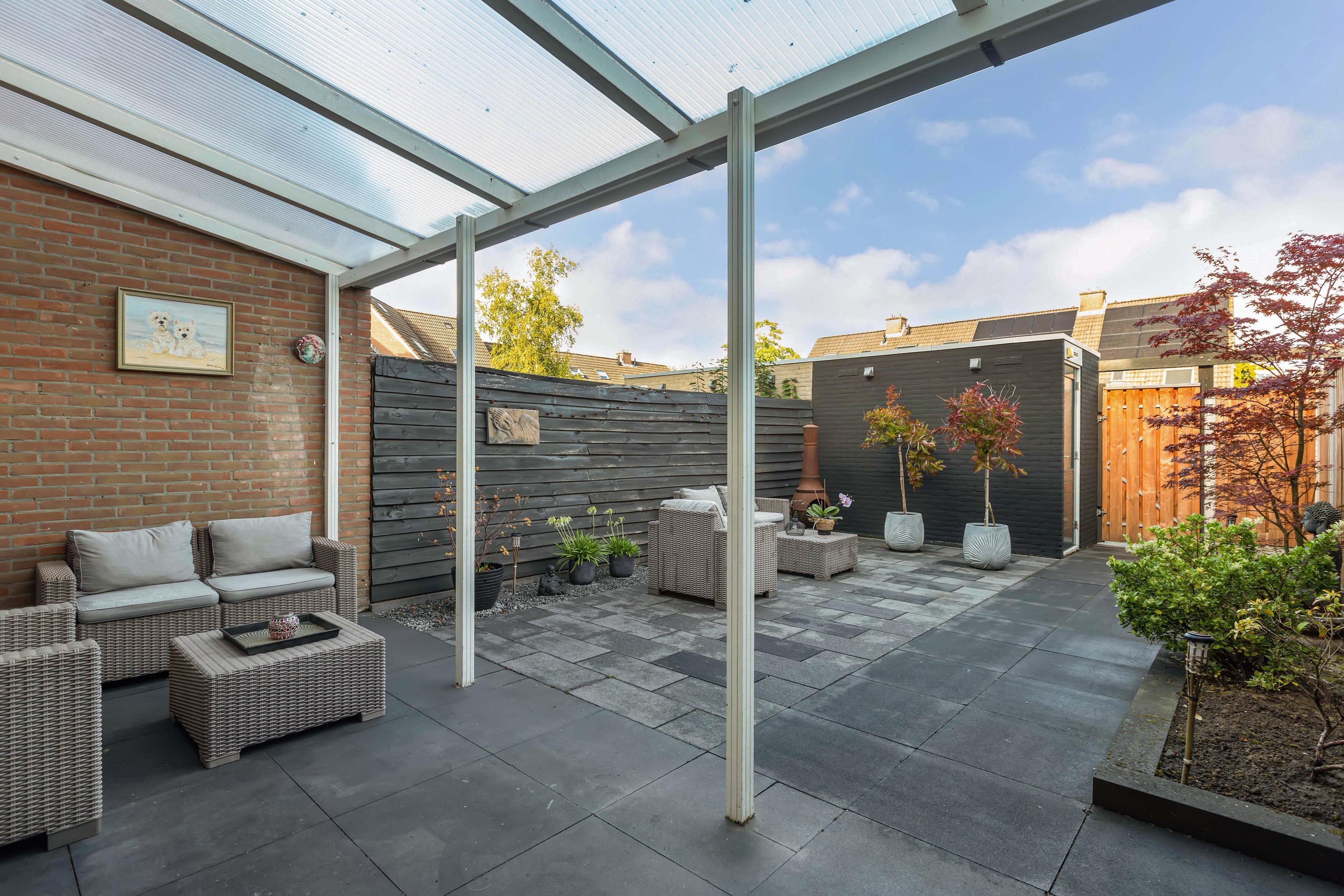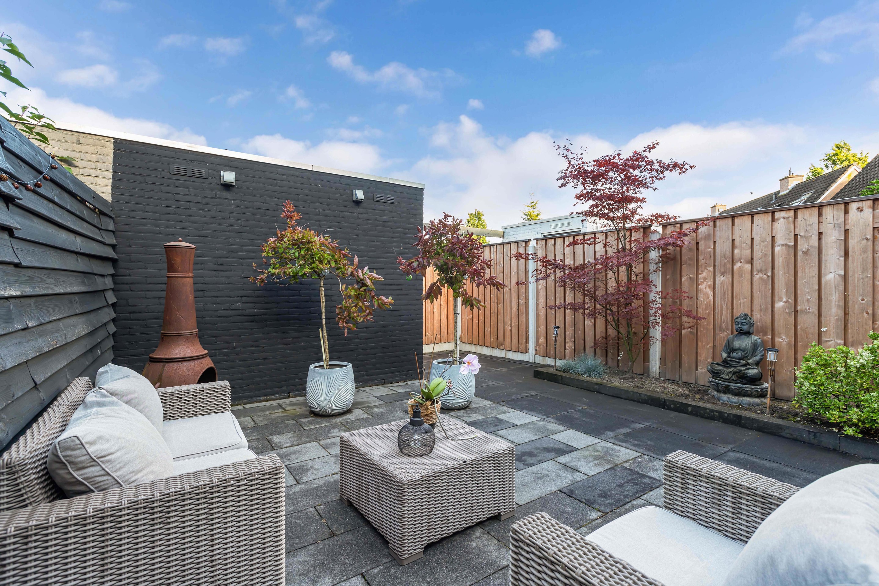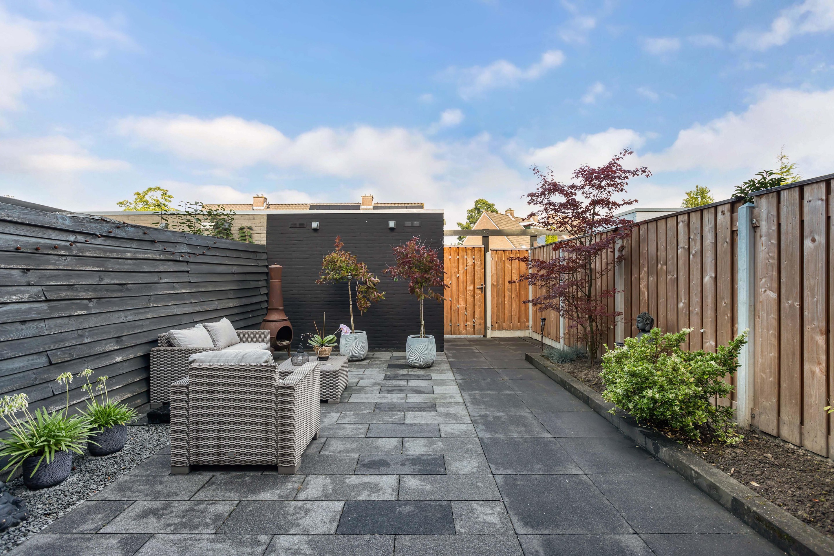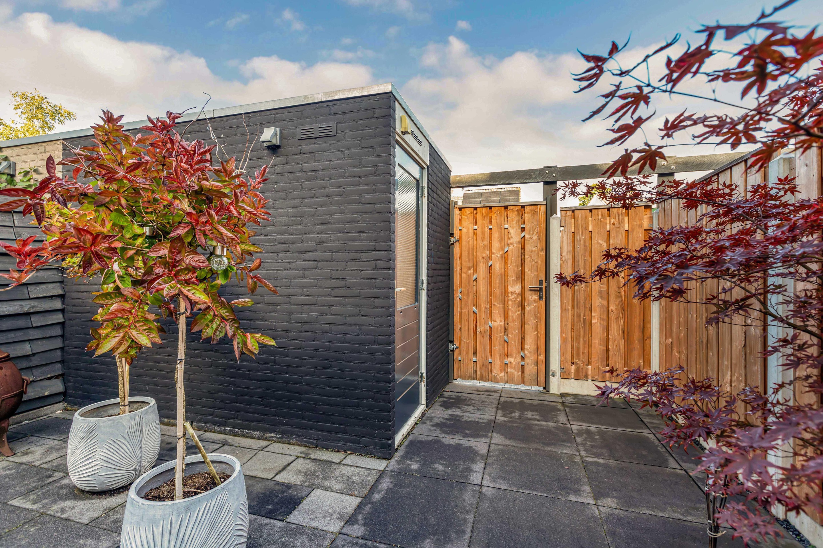 De achtertuin ligt op het oosten waar je kunt genieten van de ochtend- en middagzon. Heerlijk genieten zonder de hitte van de avondzon! Door de onderhoudsvriendelijke inrichting heb je er weinig werk, maar er wél veel plezier van. De vrijstaande stenen berging biedt ruimte voor fietsen, speelgoed en tuingereedschap.