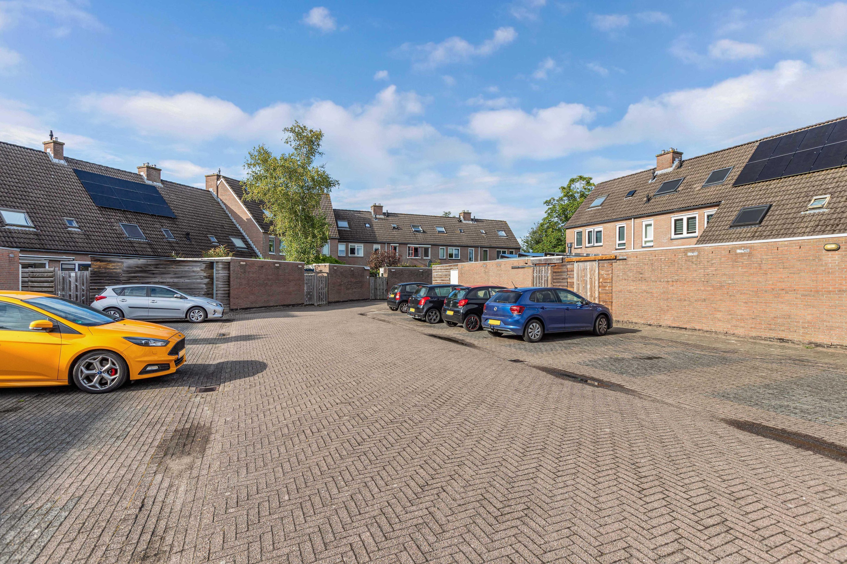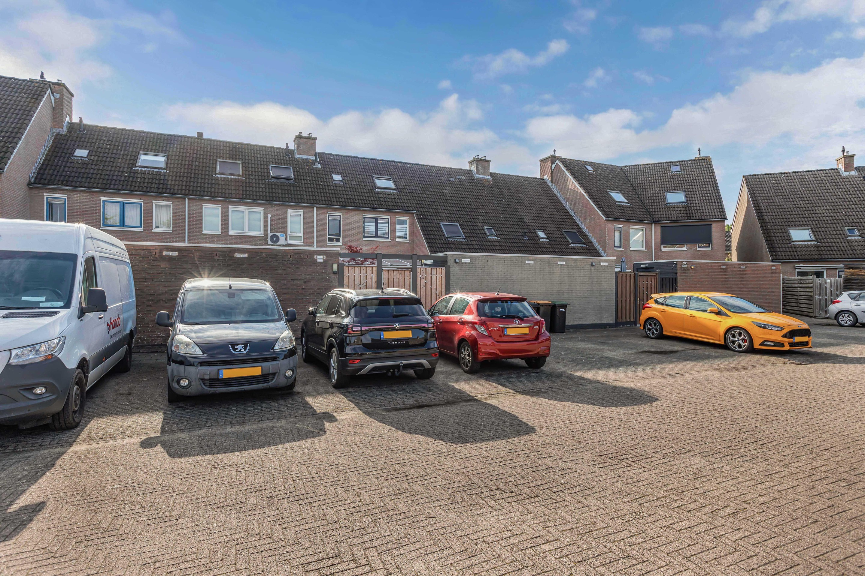Achter de woning ligt een gezamenlijk parkeerterrein.