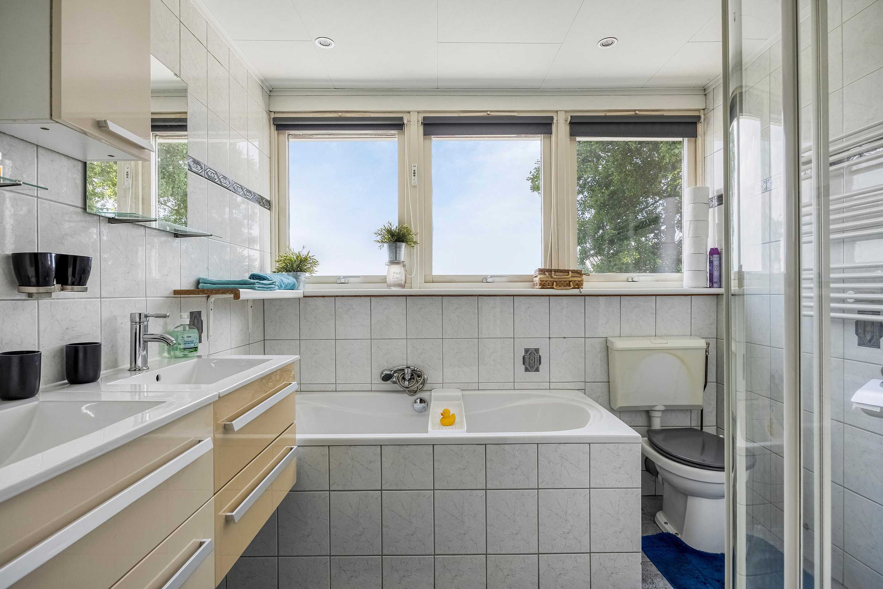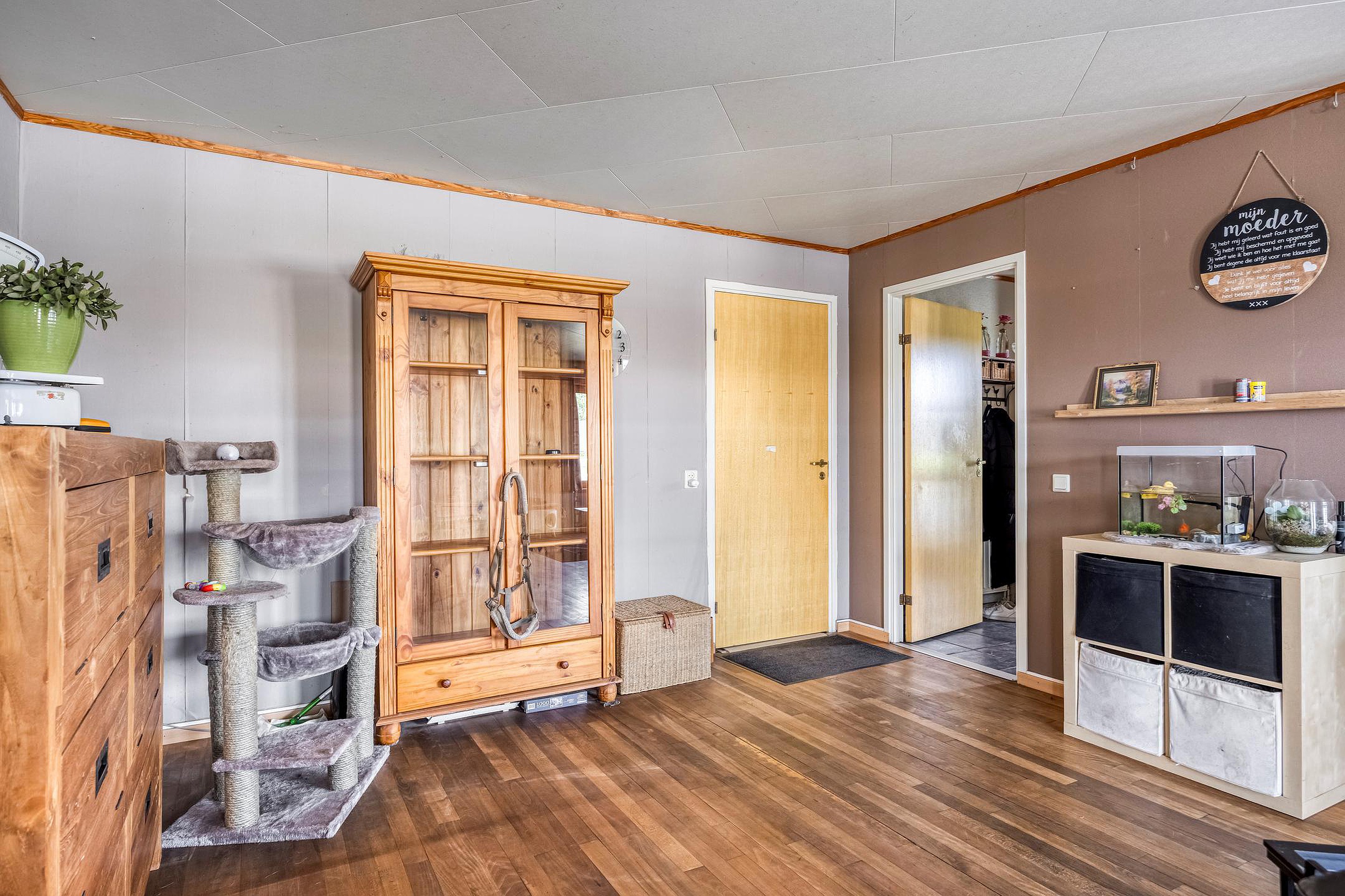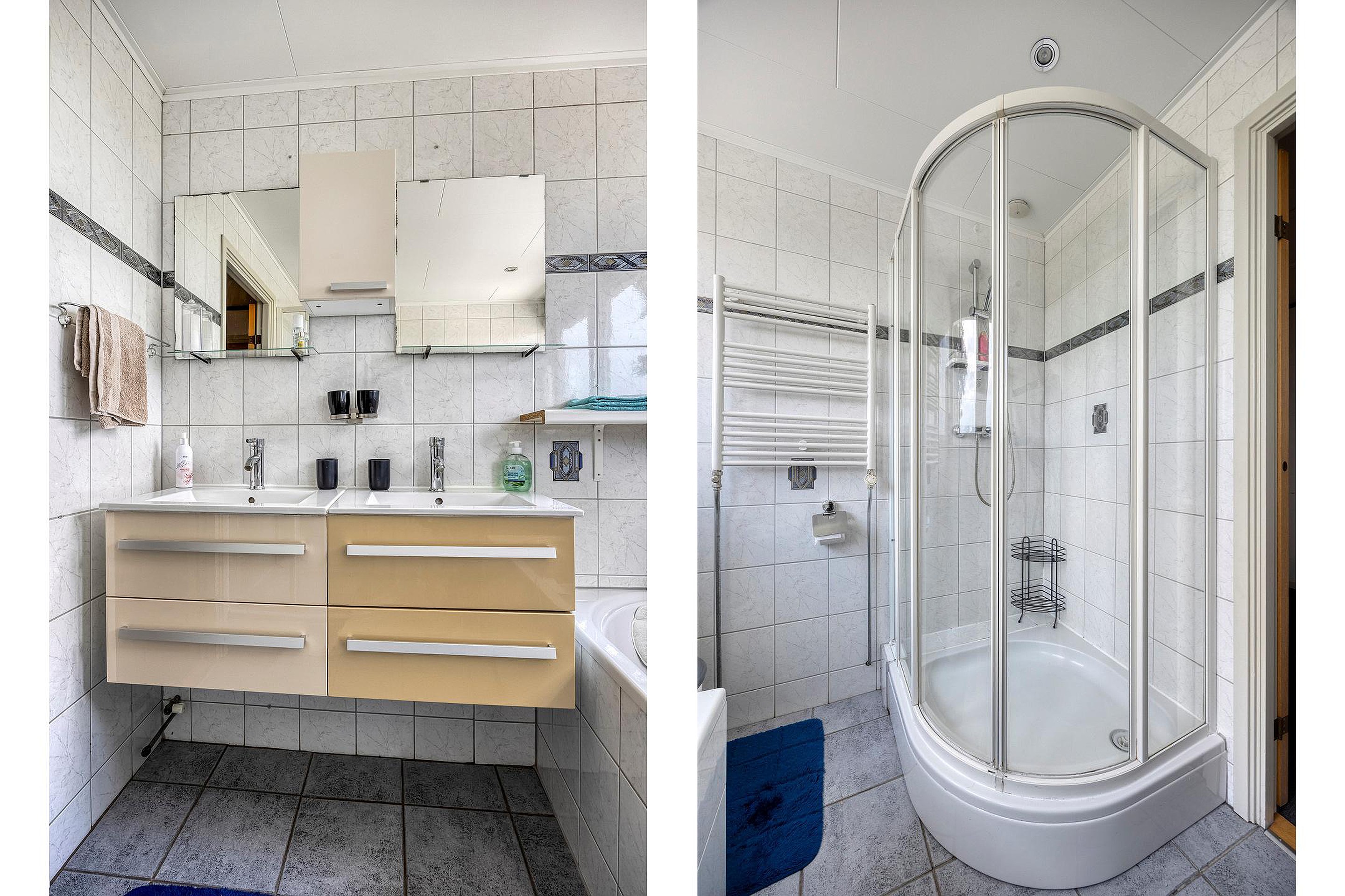 Begane grond Entree met toilet, meterkast en vaste kast. Bij binnenkomst treft u een lichte L-vormige woonkamer waar de grote ramen zorgen voor een prachtig uitzicht over het omringende groen. Vanuit hier loopt u zo de veranda op, waar het in elk seizoen heerlijk vertoeven is. De woonkeuken, in 2020 vernieuwd en uitgerust met diverse inbouwapparatuur, vormt het hart van het huis en sluit aan op de praktische bijkeuken met witgoedaansluitingen. Achter de bijkeuken bevindt zich een tweede berging die volop ruimte biedt voor opslag of hobby’s. Aansluitend vindt u de aanbouw, oorspronkelijk ontworpen als mantelzorgwoning of dubbele bewoning. Hier is een aparte slaapkamer, woonkamer, toilet en badkamer bedacht. Deze ruimte kan naar eigen wens worden afgebouwd en ingedeeld – perfect voor zorg aan huis, gastenverblijf of een kantoor, studio of werkruimte.