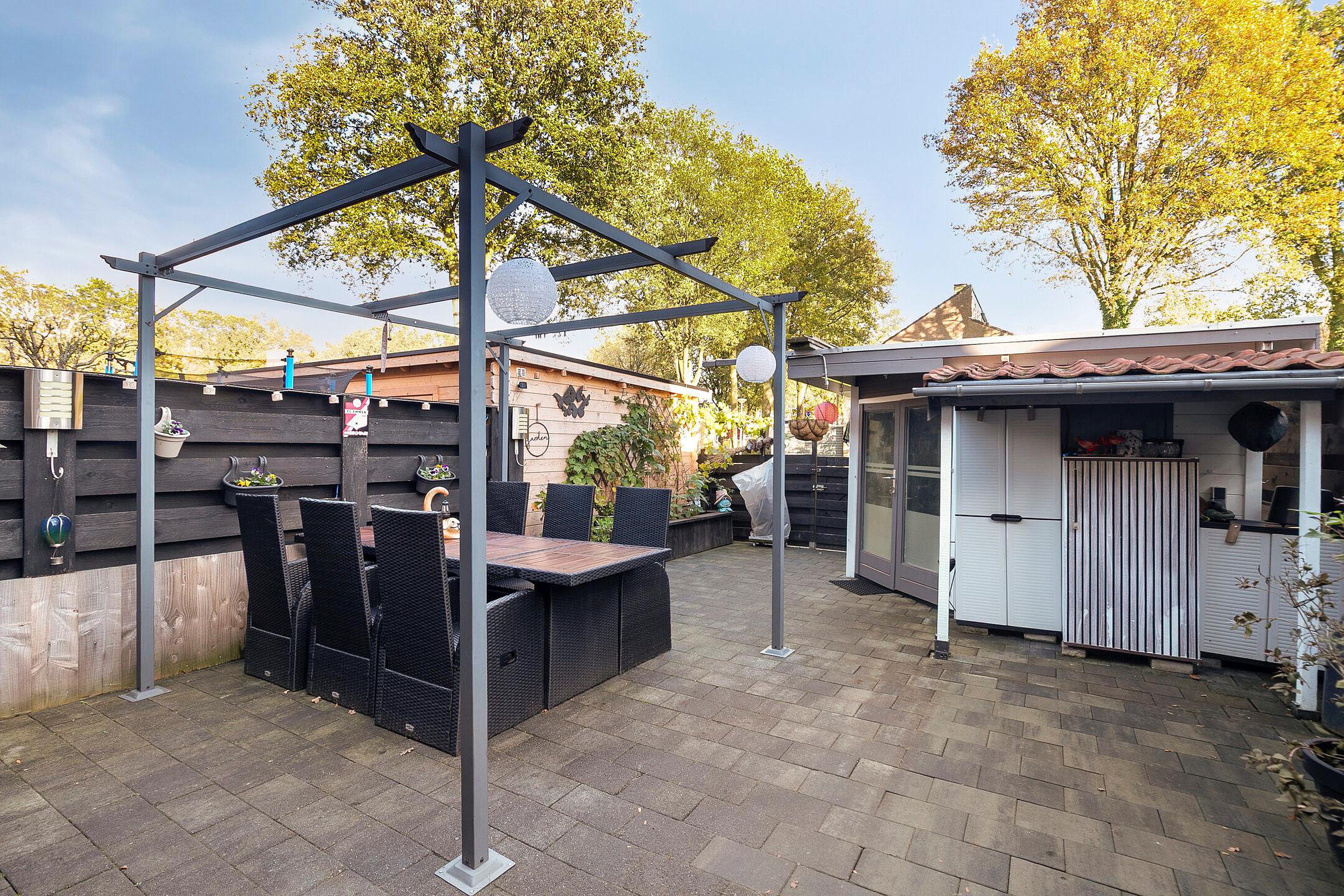 Tuin De tuin is gelegen op het oosten. In de achtertuin bevindt zich een vrijstaande geïsoleerde berging/tuinhuis. Aan de voorzijde is een berging gelegen en is een eigen oprit aanwezig. De tuin bied aan beide zijden veel privacy
