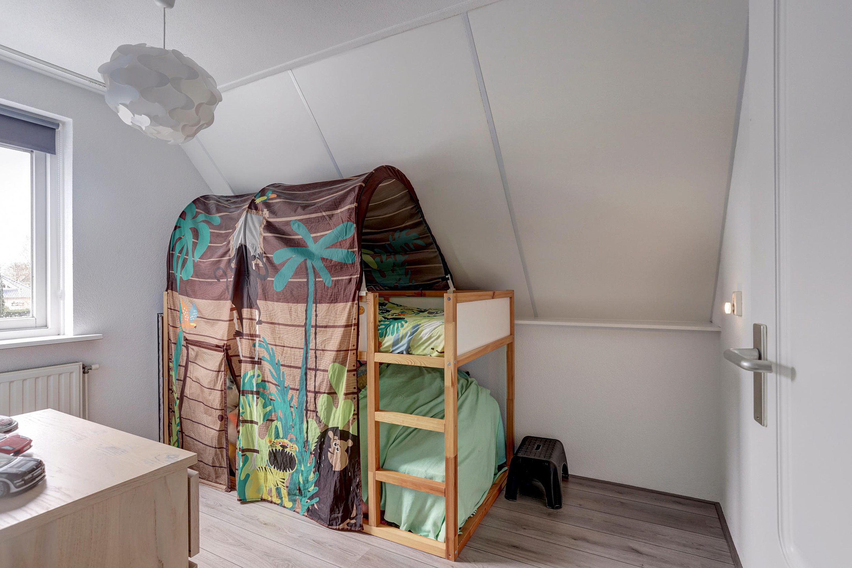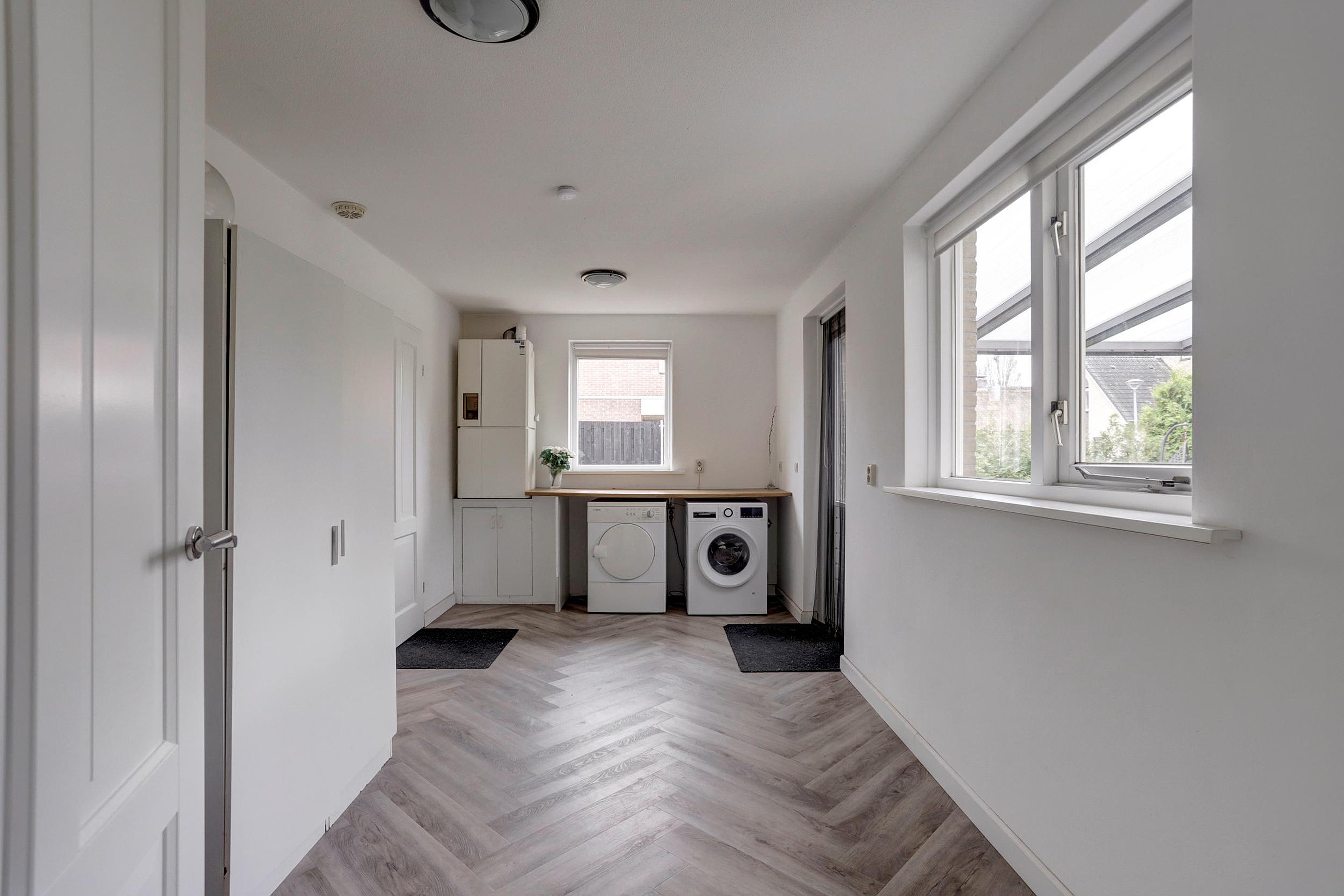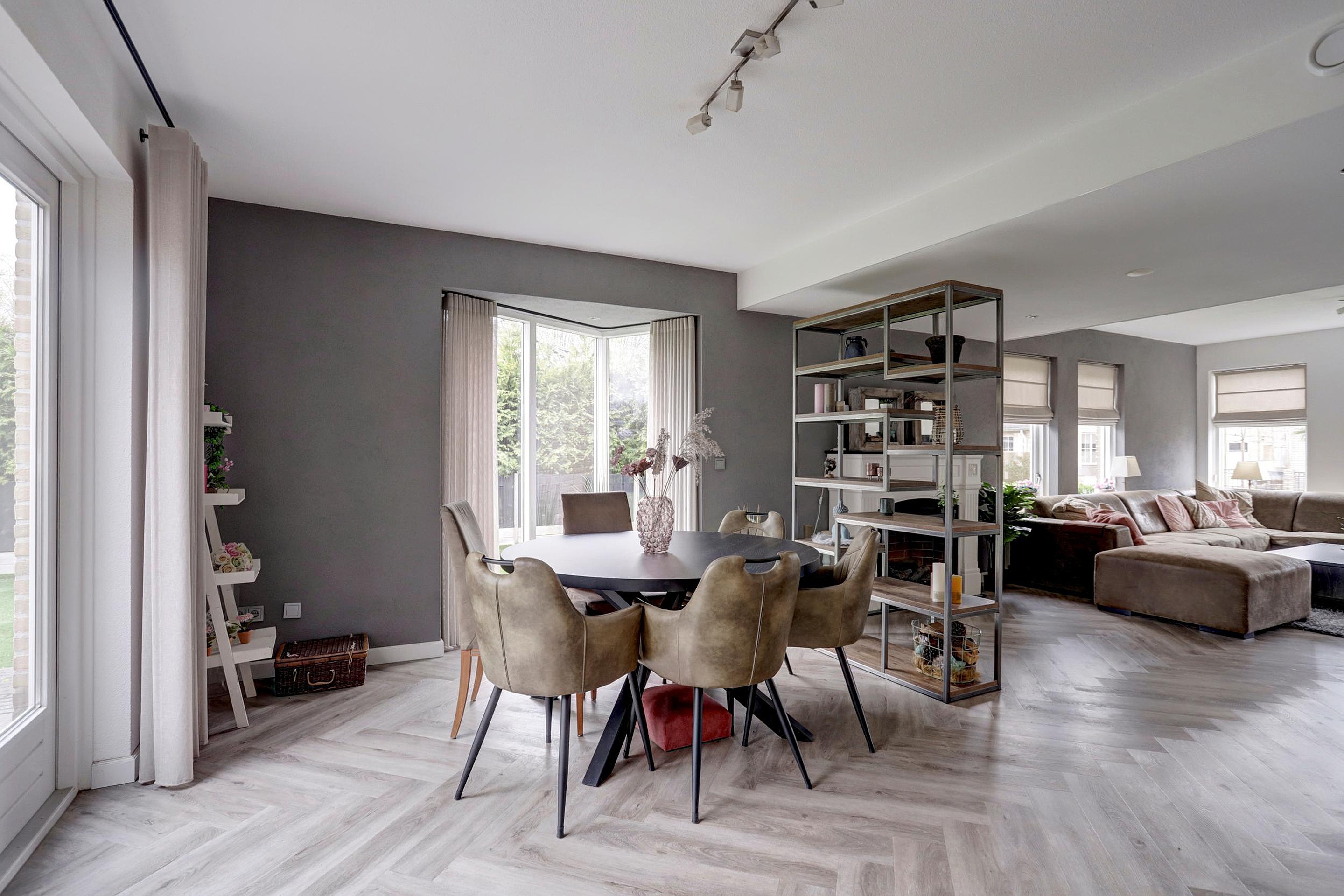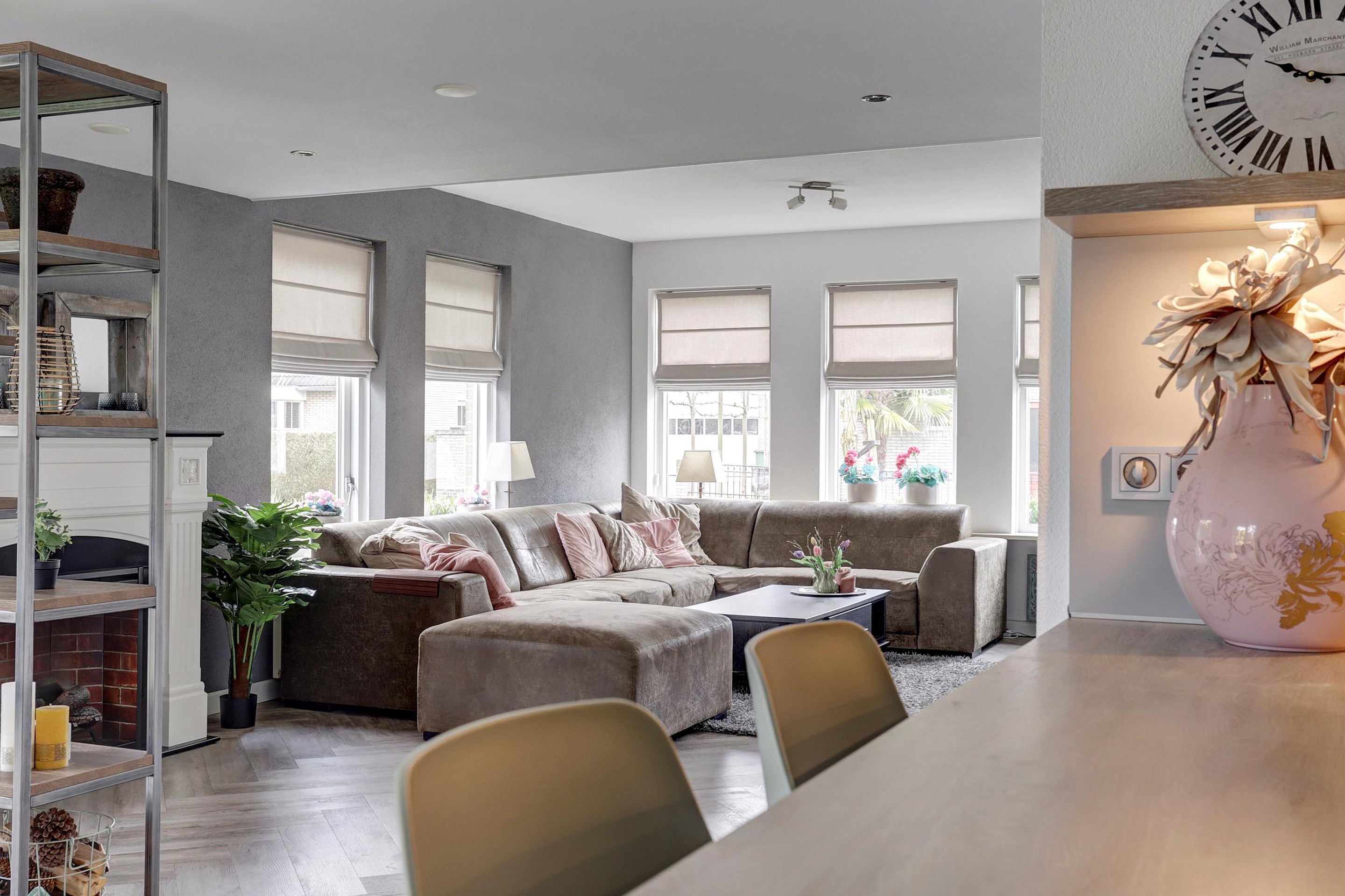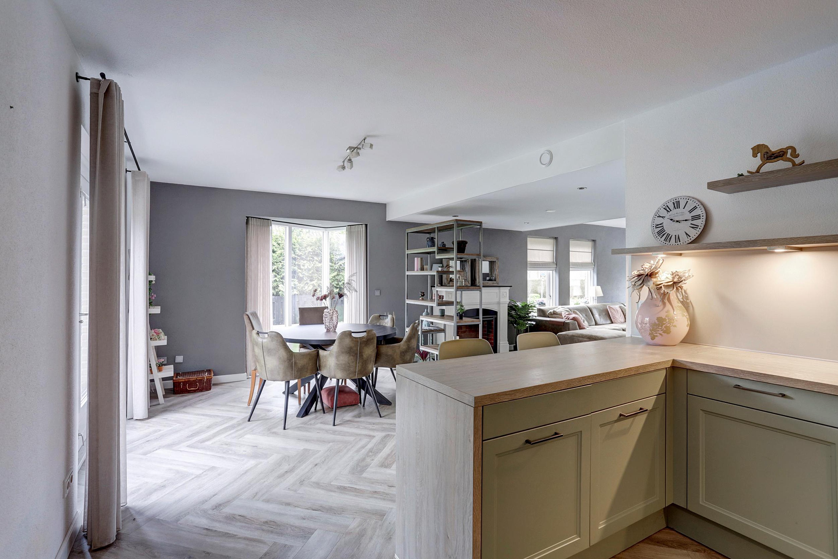 Bij binnenkomst wordt u verwelkomd in de entree met meterkast, trapopgang en toilet. De ruime en lichte woonkamer vormt het hart van de woning en is voorzien van een stijlvolle visgraat PVC-vloer. Dankzij de erker aan de westzijde valt het daglicht hier prachtig naar binnen en heeft u een fijne plek om van de middag- en avondzon te genieten. Vanuit de woonkamer is een extra kamer bereikbaar die momenteel perfect dienst kan doen als speelkamer, hobbyruimte of werkkamer. Indien gewenst kan deze ruimte ook eenvoudig bij de woonkamer worden betrokken, waardoor een nog ruimere leefruimte ontstaat. De keuken is uitgevoerd in een moderne kleurstelling en voorzien van diverse inbouwapparatuur, waaronder een inductiekookplaat, vaatwasser, afzuigkap, combimagnetron en koelkast. Aansluitend bevindt zich de praktische en ruime bijkeuken met witgoedopstelling. Vanuit hier bereikt u ook de inpandige garage. Deze garage is in spouw uitgevoerd en beschikt over water, verwarming en isolatie, waardoor deze niet alleen ideaal is voor het stallen van een auto, maar ook uitstekend geschikt is als hobbyruimte of werkplaats.