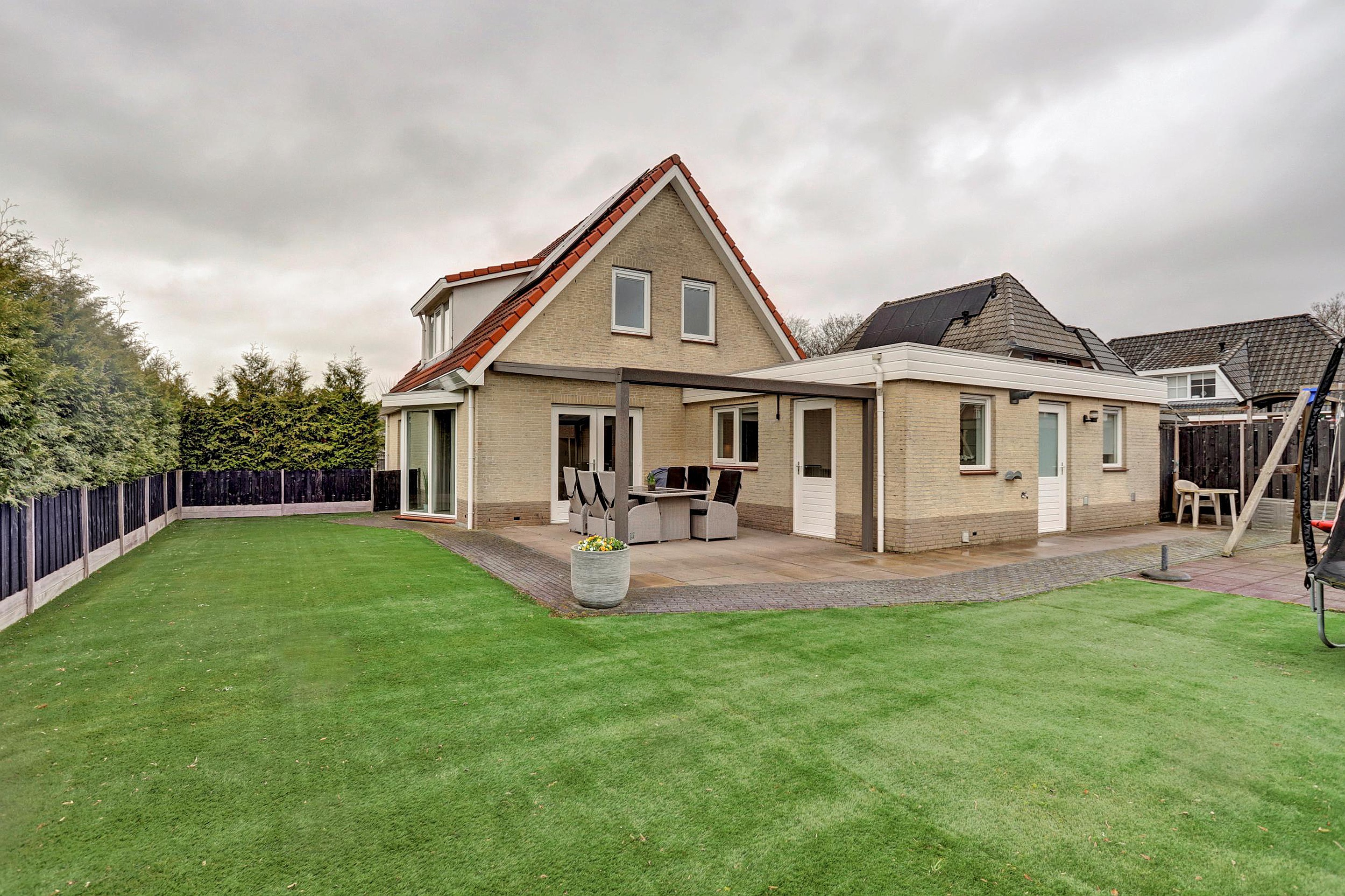 Jonge, degelijk gebouwde vrijstaande woning gelegen op een mooie ruime hoekkavel van 534 m2. Deze uitstekend onderhouden woning biedt verrassend veel leefruimte op de begane grond en is daardoor een ideale plek voor gezinnen. Ook op het gebied van duurzaamheid zit het goed: de woning is volledig geïsoleerd en beschikt over 12 zonnepanelen met micro-omvormers (geplaatst in 2023). De ligging is bovendien bijzonder prettig: in een rustige en kindvriendelijke woonomgeving, op korte afstand van de visvijver, het openluchtzwembad, een basisschool, het natuurgebied en de centrumvoorzieningen. Achter de woning is in 2024 een heerlijke veranda geplaatst. Deze is extra luxe uitgevoerd door de aanwezige inbouwspots en plissegordijnen voor schaduw.