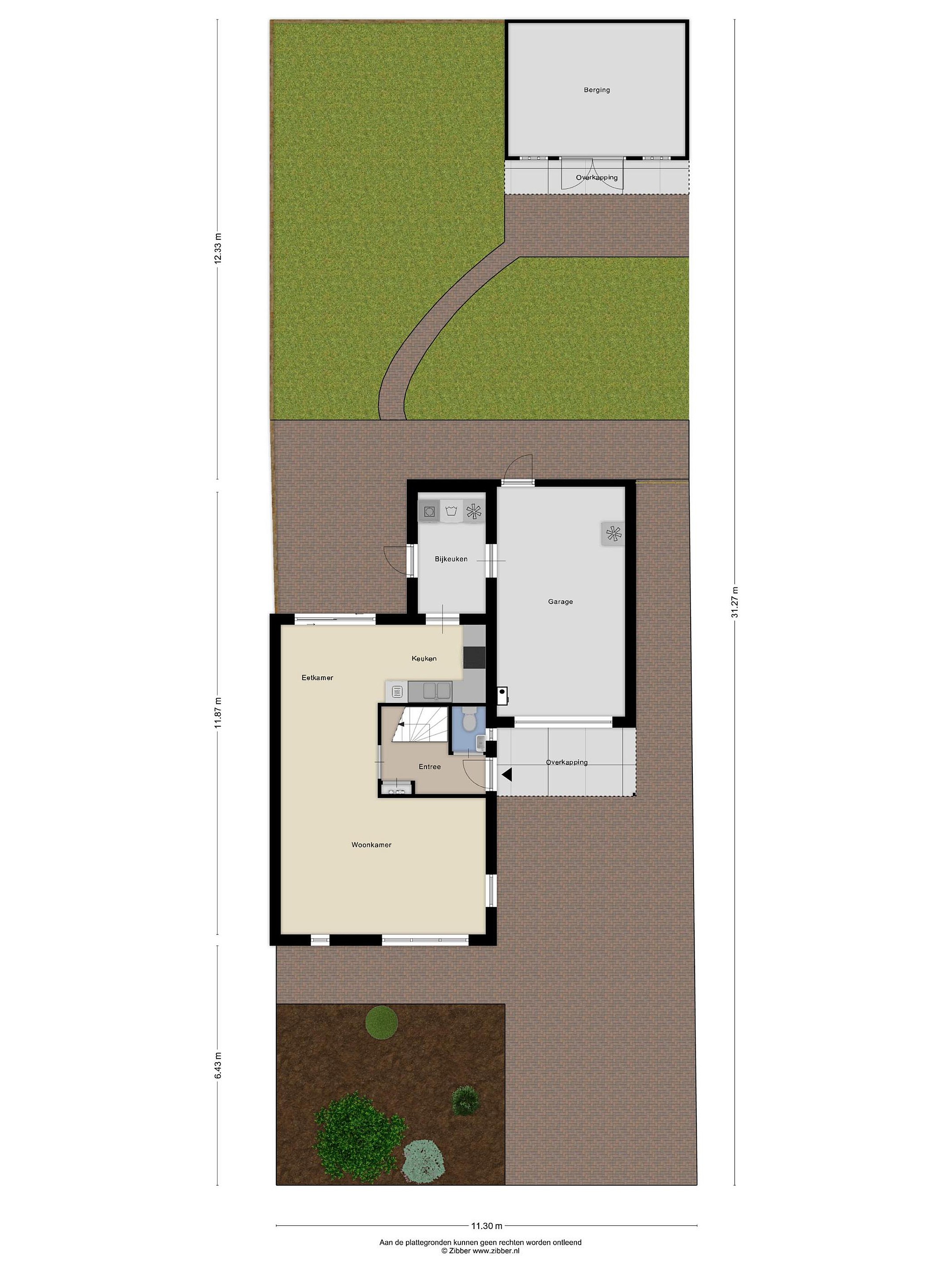 Ruime inrit en aangebouwde stenen garage.