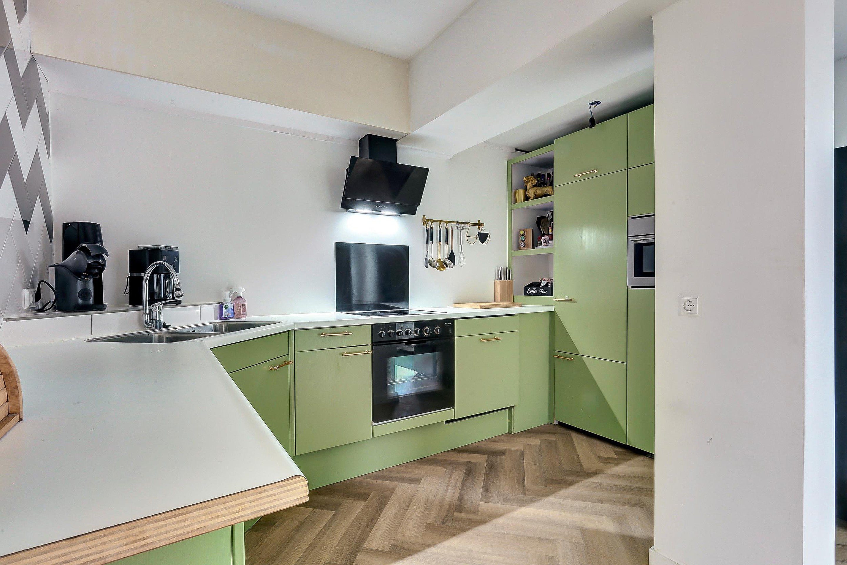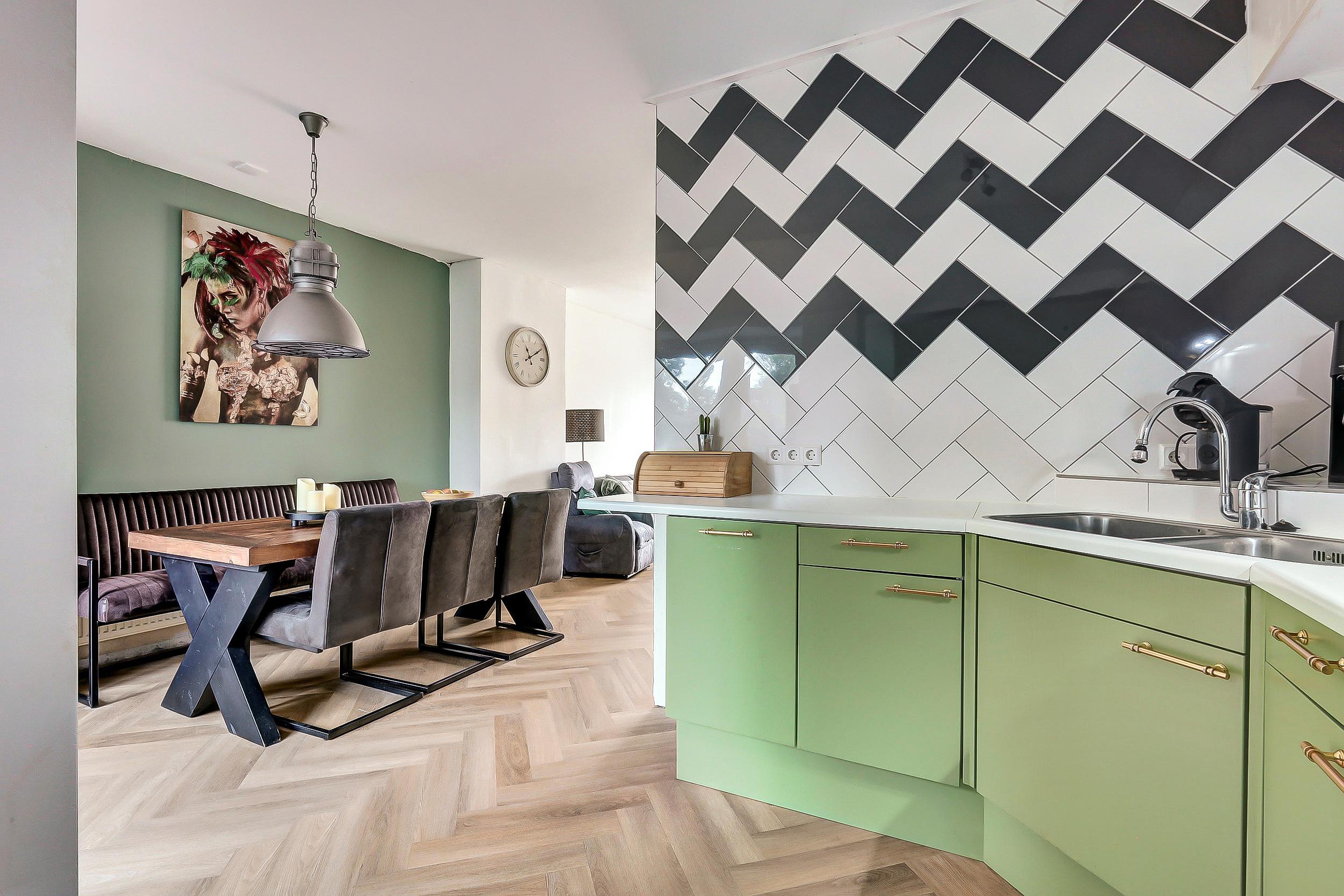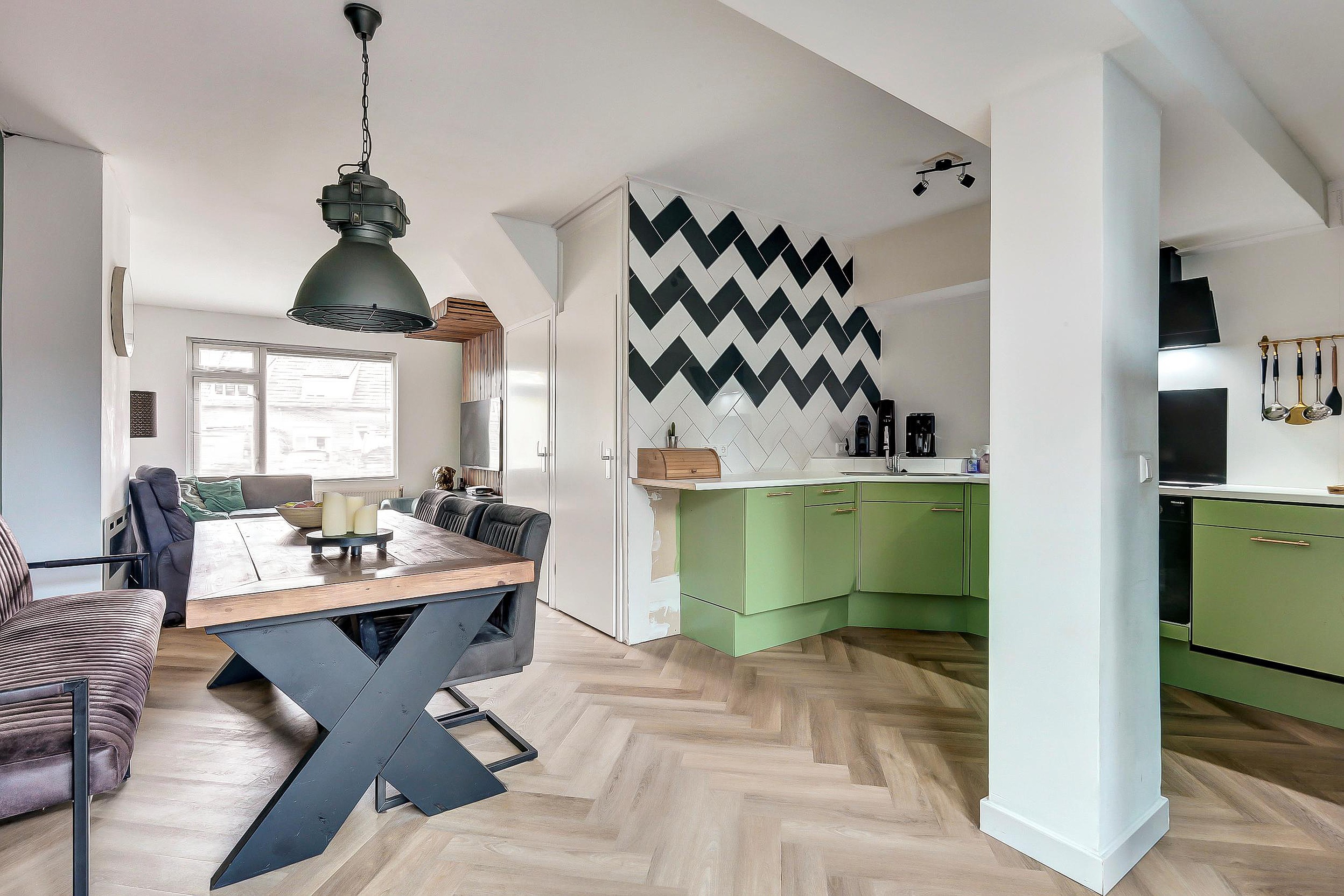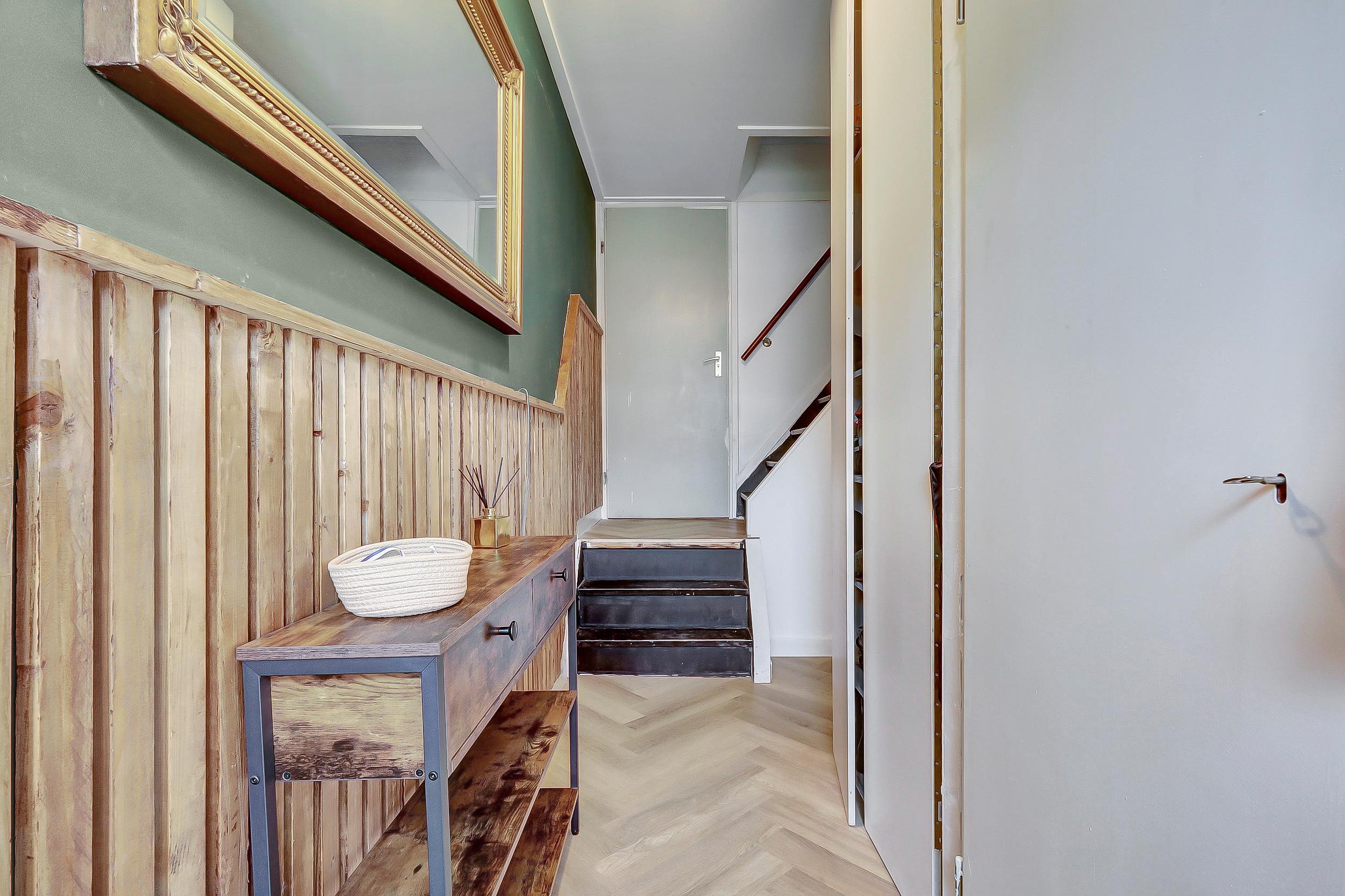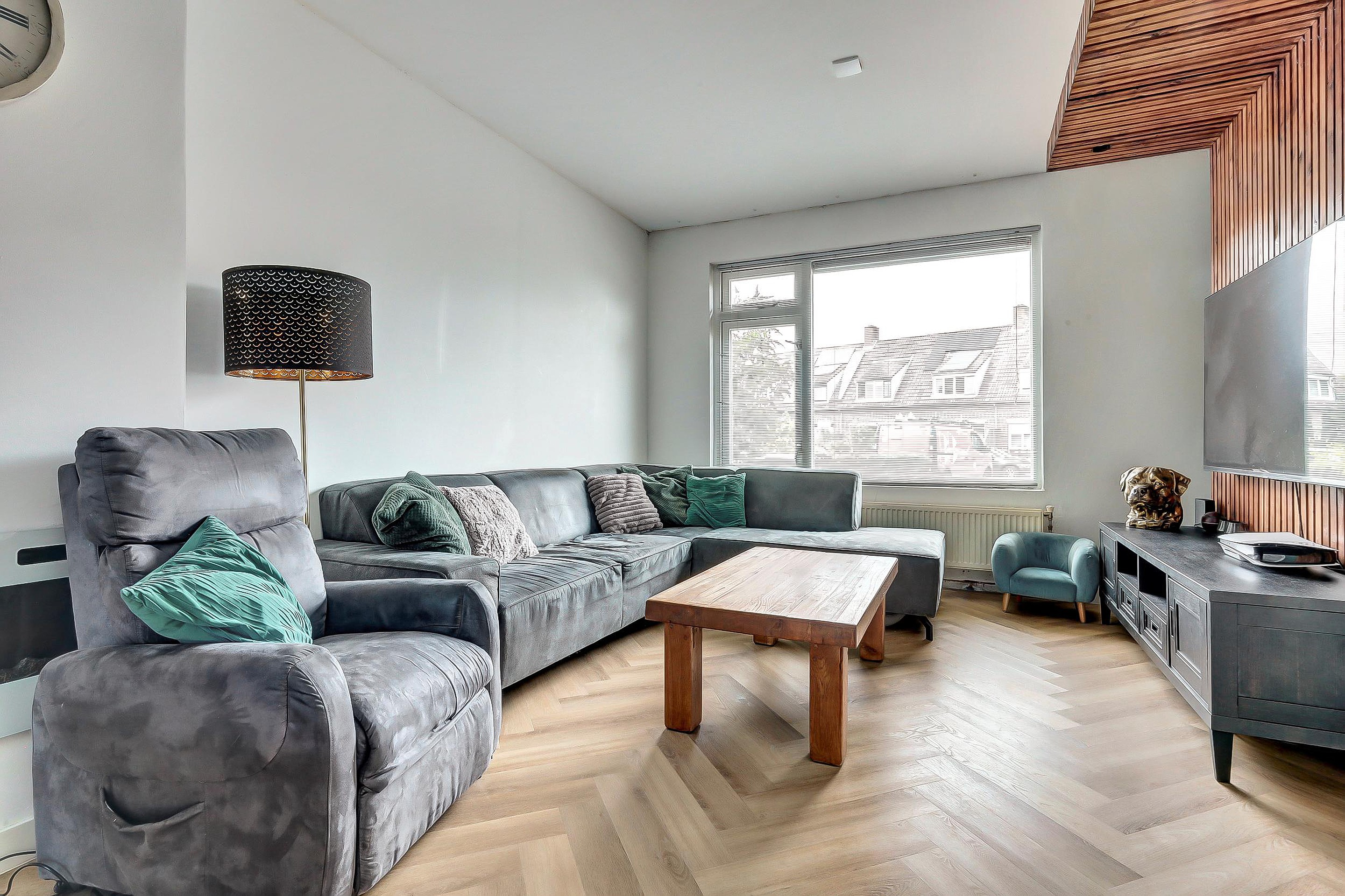 Via de entree bereikt u de hal met toilet (vernieuwd in 2025), meterkast en trapopgang. Vanuit hier loopt u door naar de open, lichte woonkamer en moderne keuken (2e hands geplaatst in 2023). Deze is van alle gemakken voorzien: oven, keramische kookplaat, afzuigkap en vaatwasser. Dankzij de openslaande deuren naar de tuin is er een mooi contact tussen binnen en buiten.