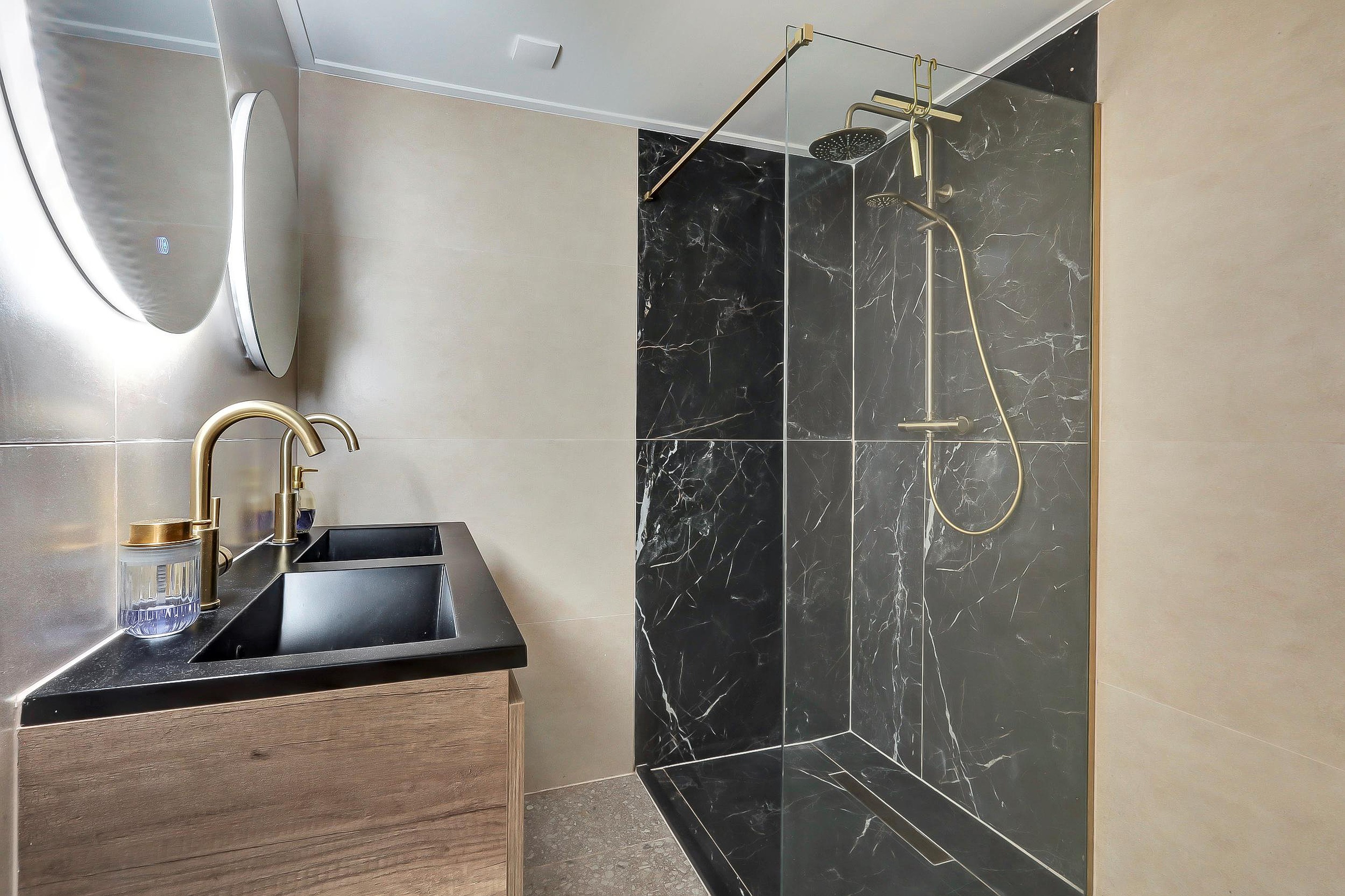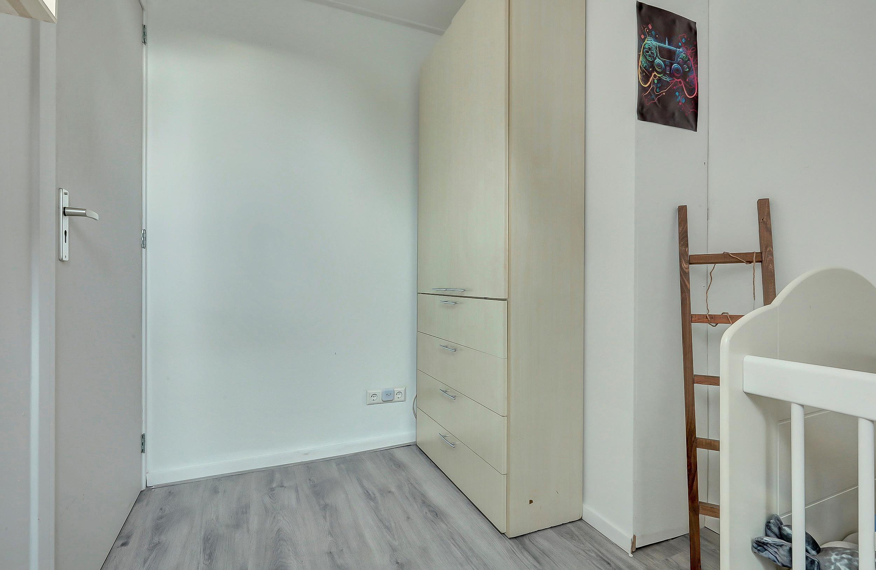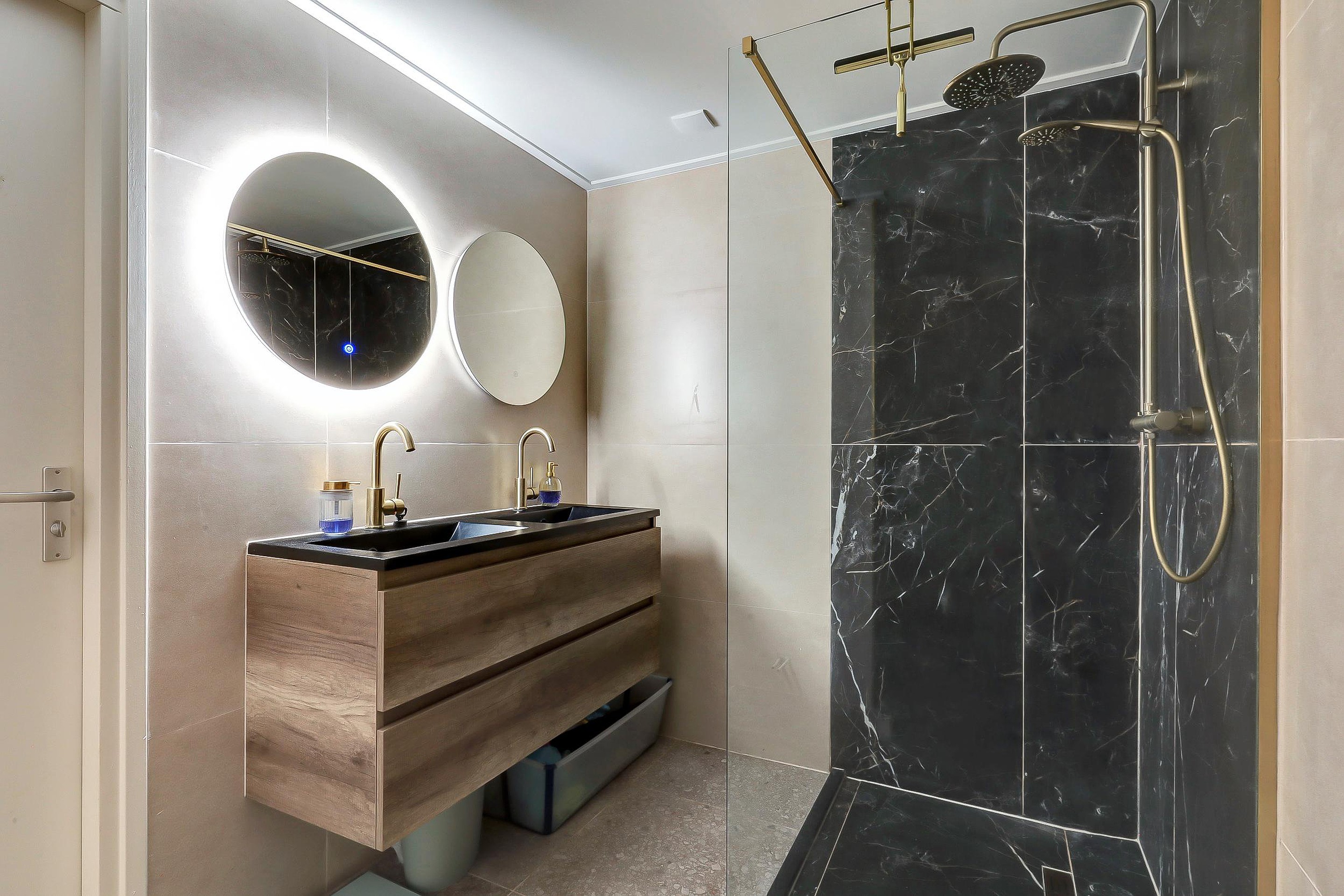 Op de eerste verdieping bevinden zich 2 slaapkamers en een derde slaapkamer bereikbaar via de kinderkamer. Desgewenst kan dit ook terug gebracht worden naar 1 master bedroom. Dan de eyecatcher van deze woning: een luxe badkamer (2024) met modern sanitair en eigentijdse afwerking. Voorzien van dubbele wastafel, inloopdouche en toilet.