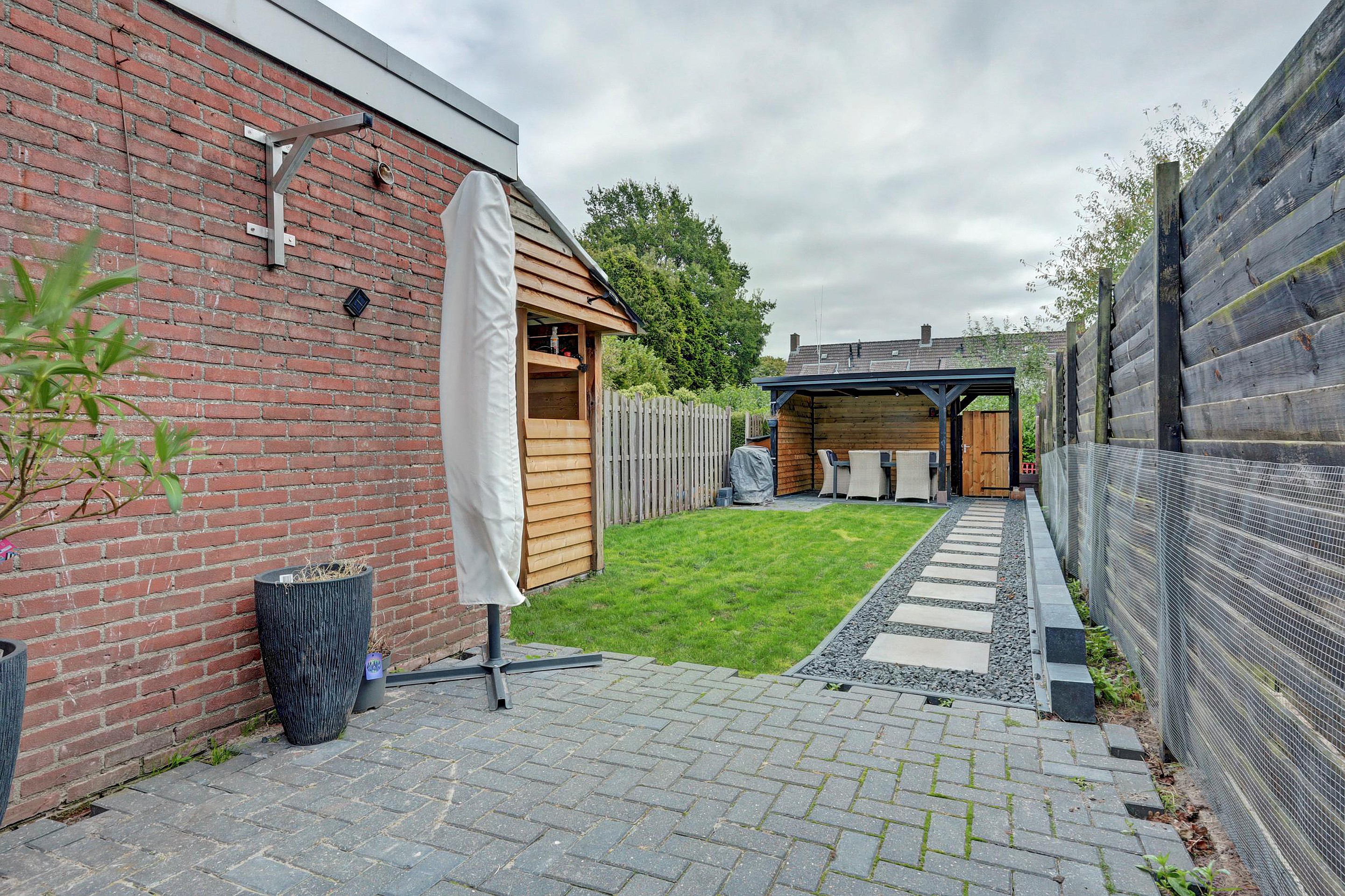 Voor en achtertuin. Achtertuin met achterom.