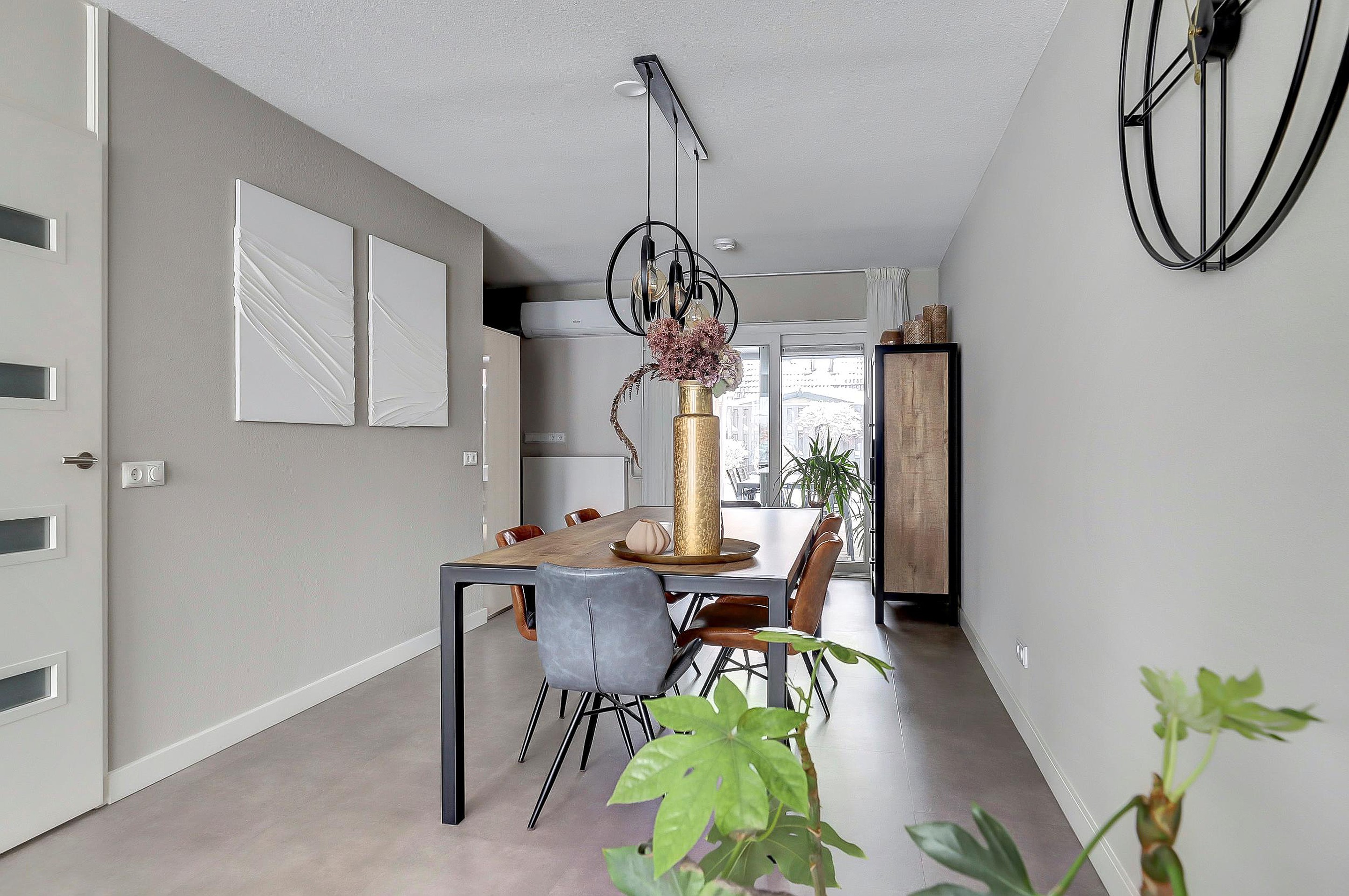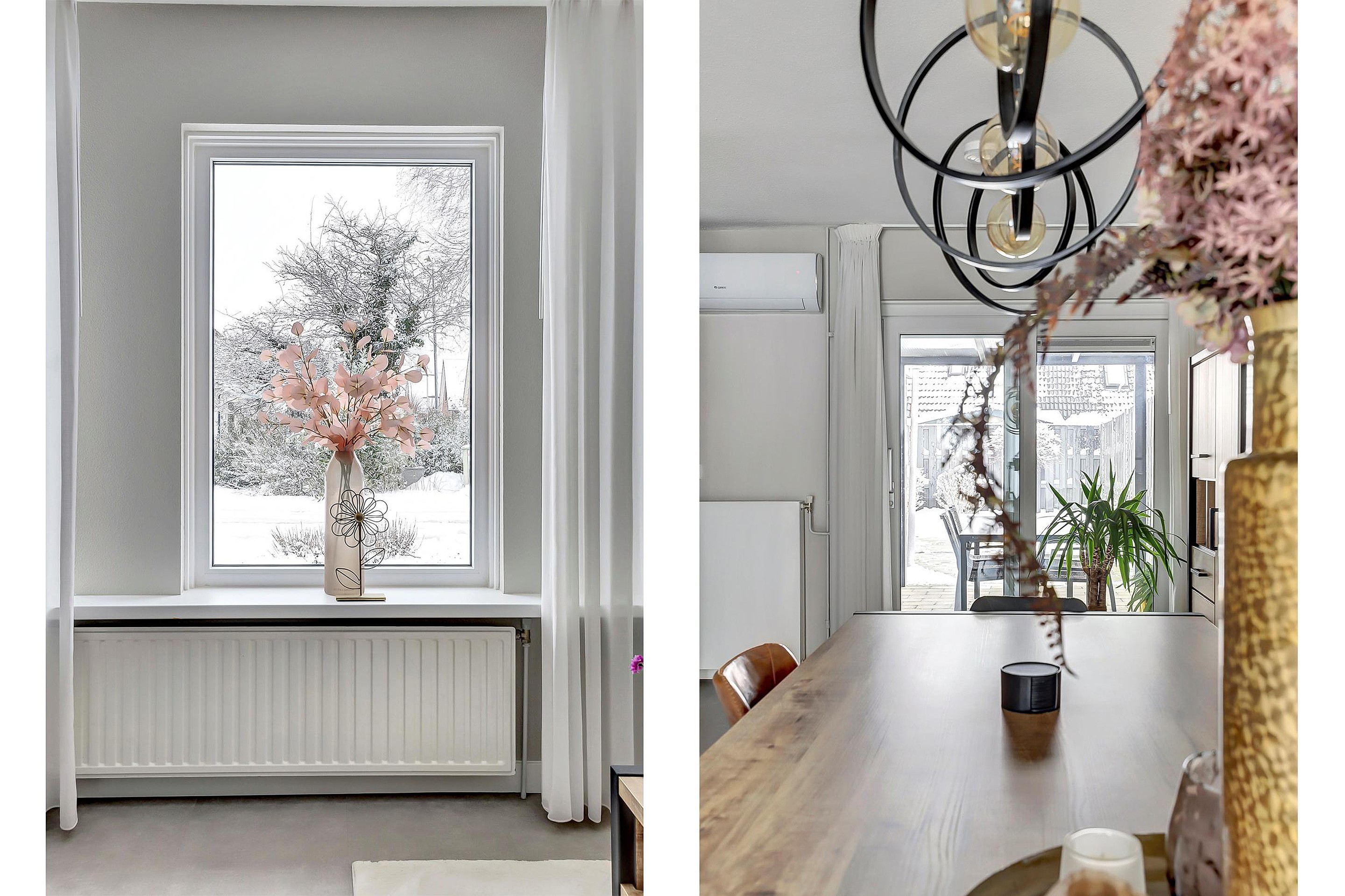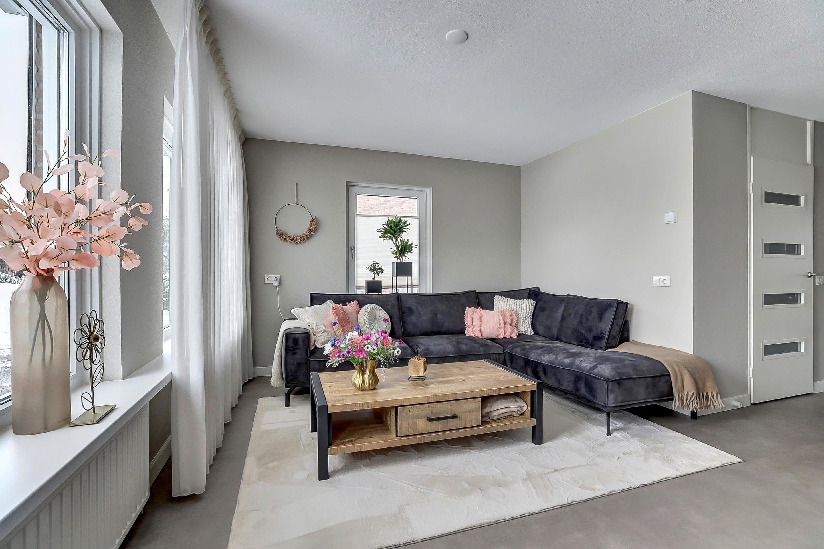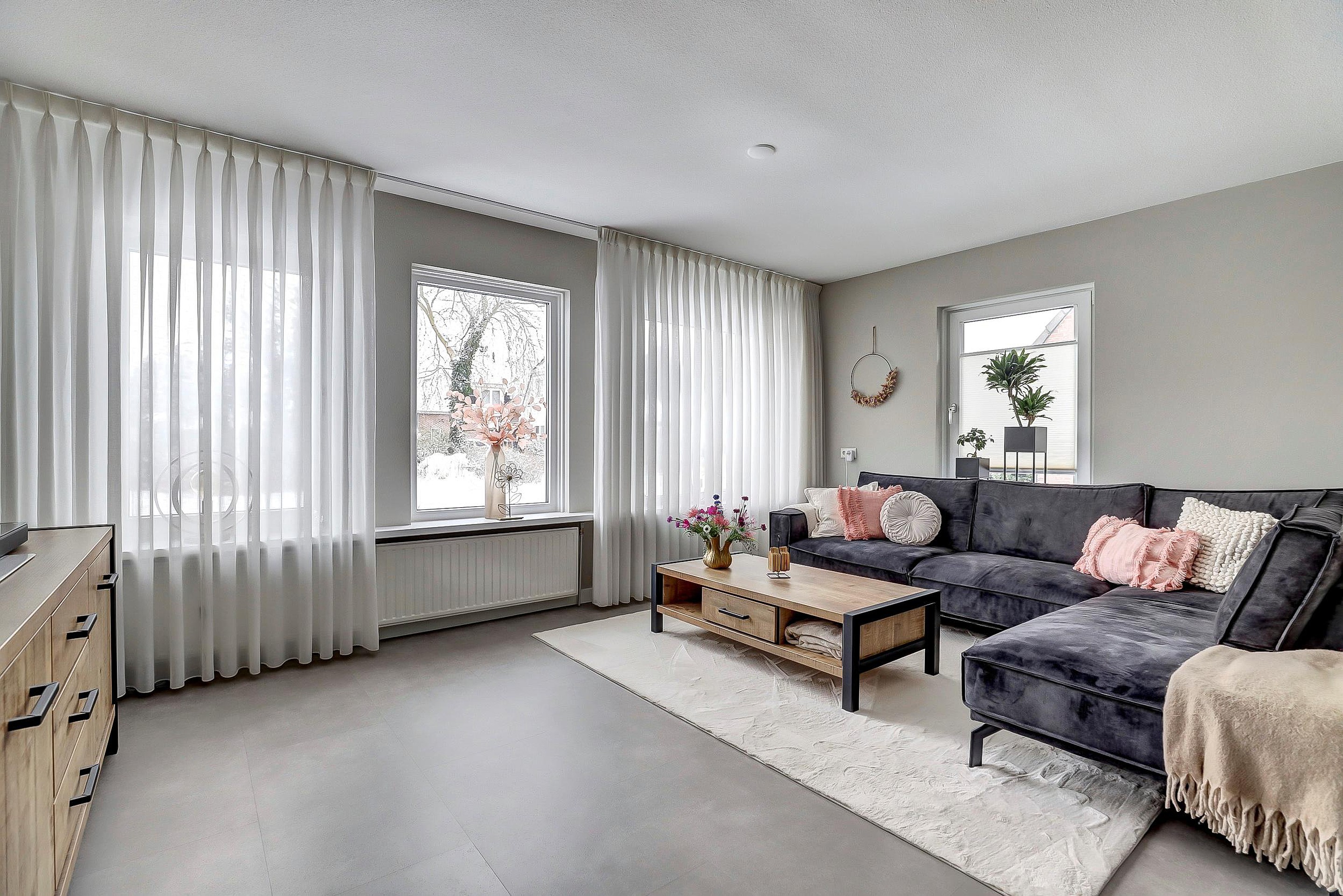 U komt binnen in de entree met moderne toiletruimte en meterkast. Vanuit hier bereikt u de L-vormige woonkamer, uitgevoerd in een moderne kleurstelling en voorzien van een prachtige PVC-vloer en een uitzonderlijk strakke afwerking. De moderne keuken is compleet uitgerust met een combimagnetron, oven, vaatwasser (2023), inductiekookplaat (2023) en afzuigkap. Via de schuifpui is het heerlijk overdekte terras te bereiken. Aansluitend bevindt zich de praktische bijkeuken met vaste kastruimte en opstelling van de cv-ketel.