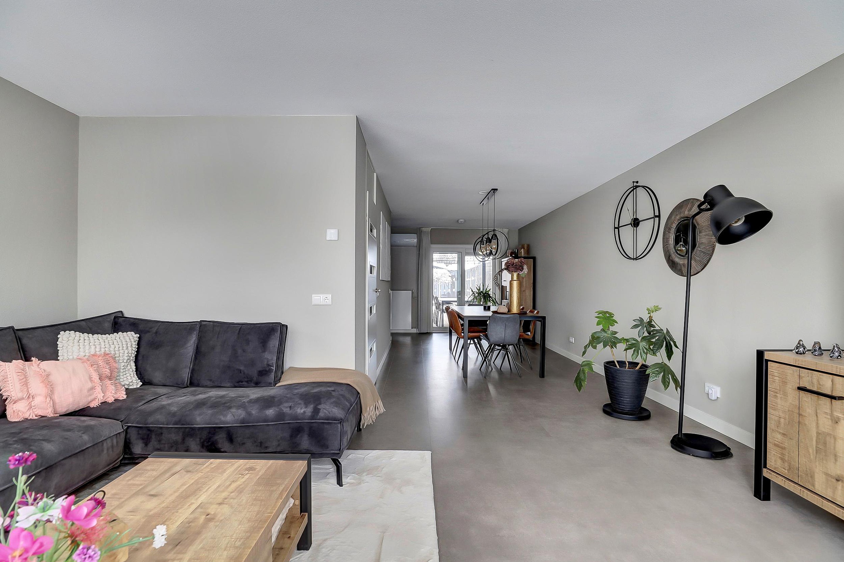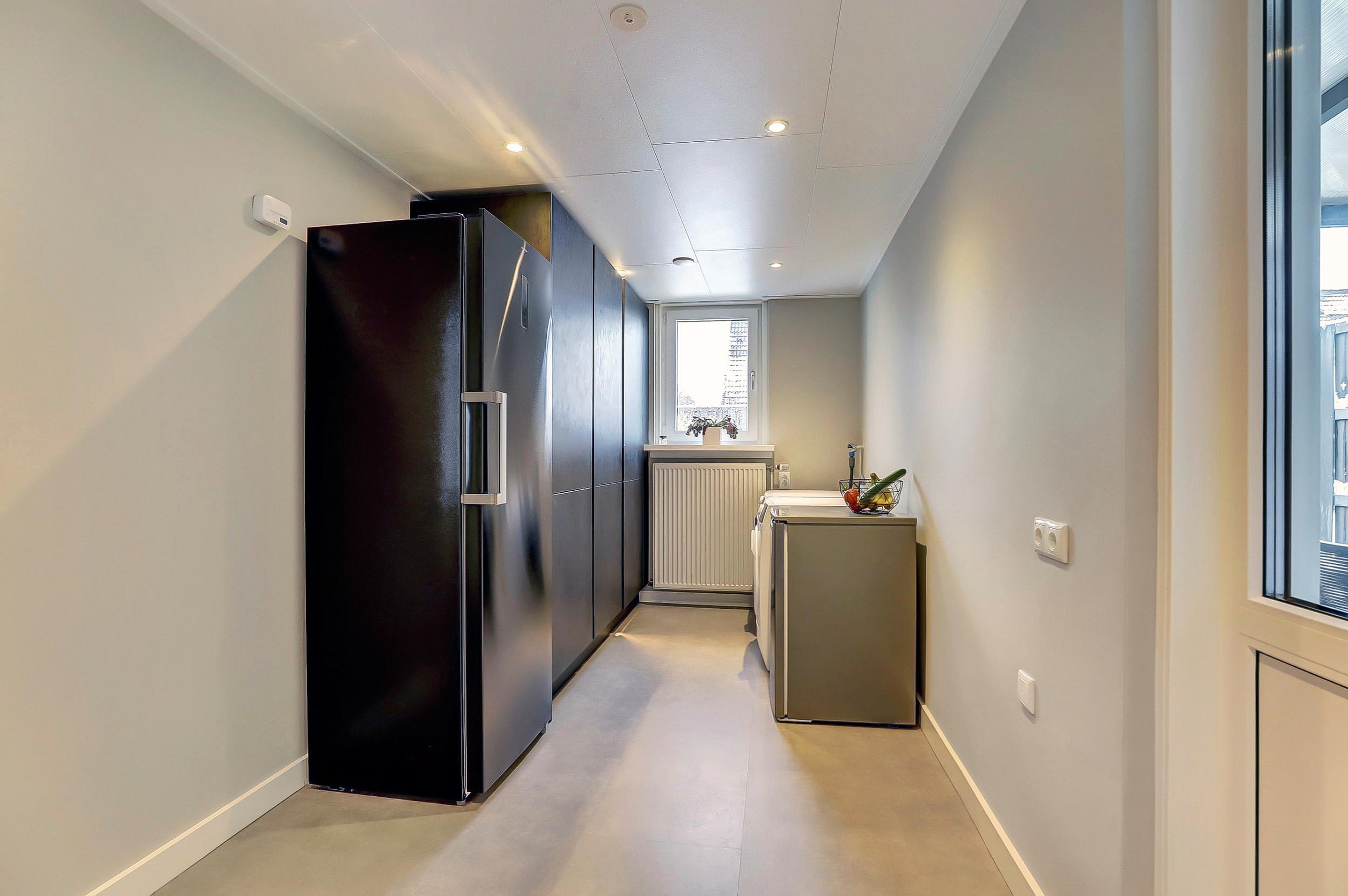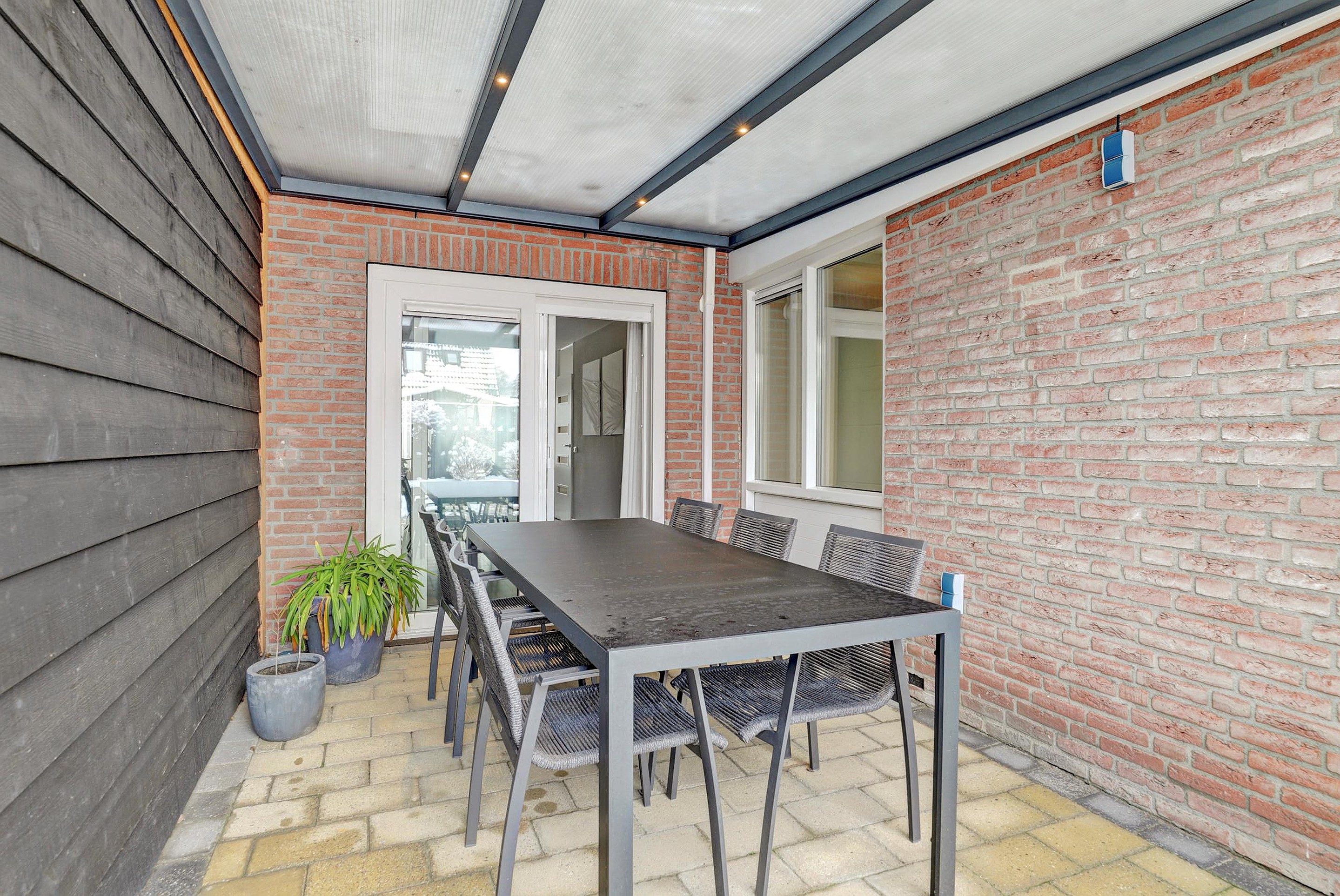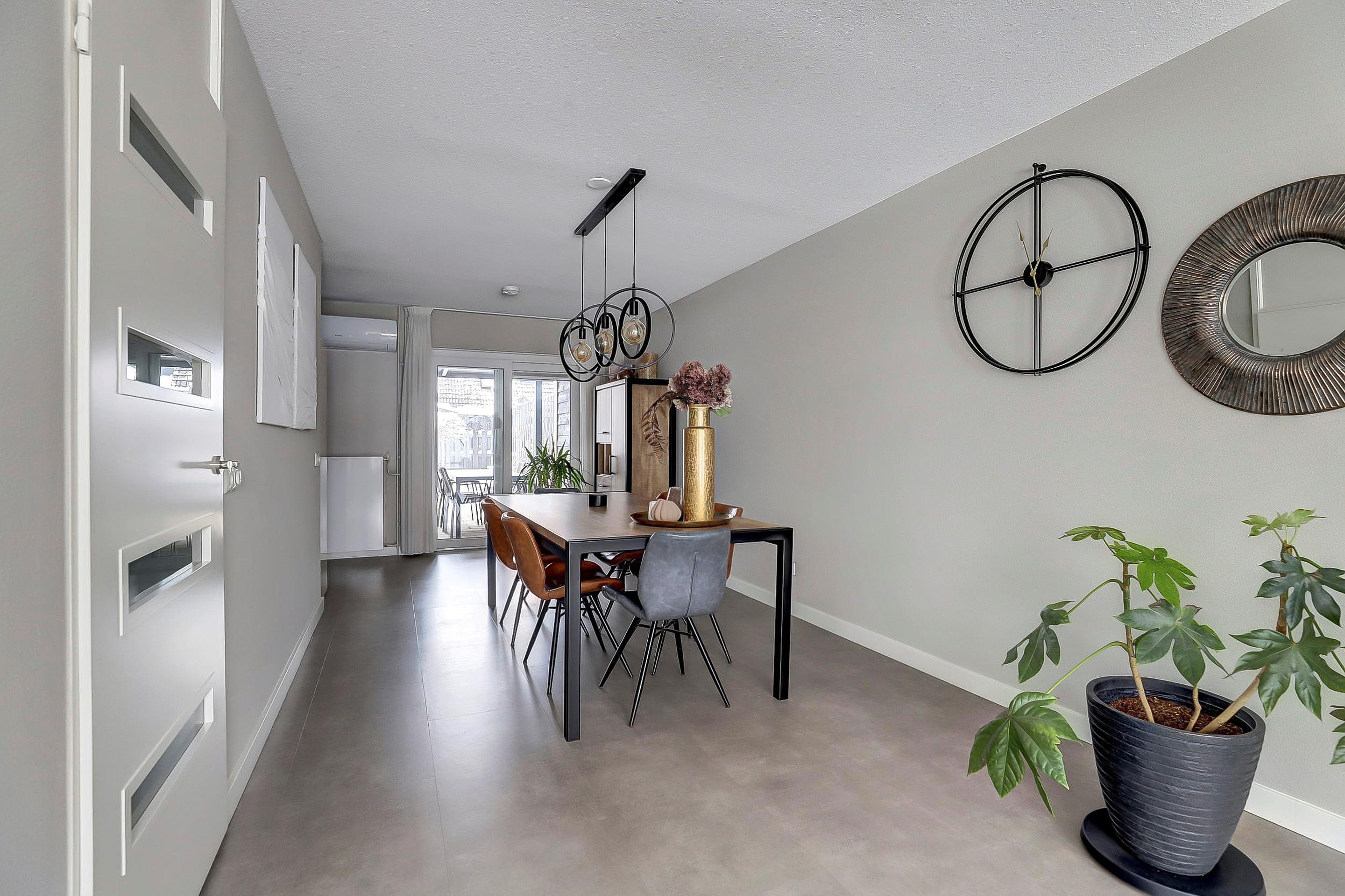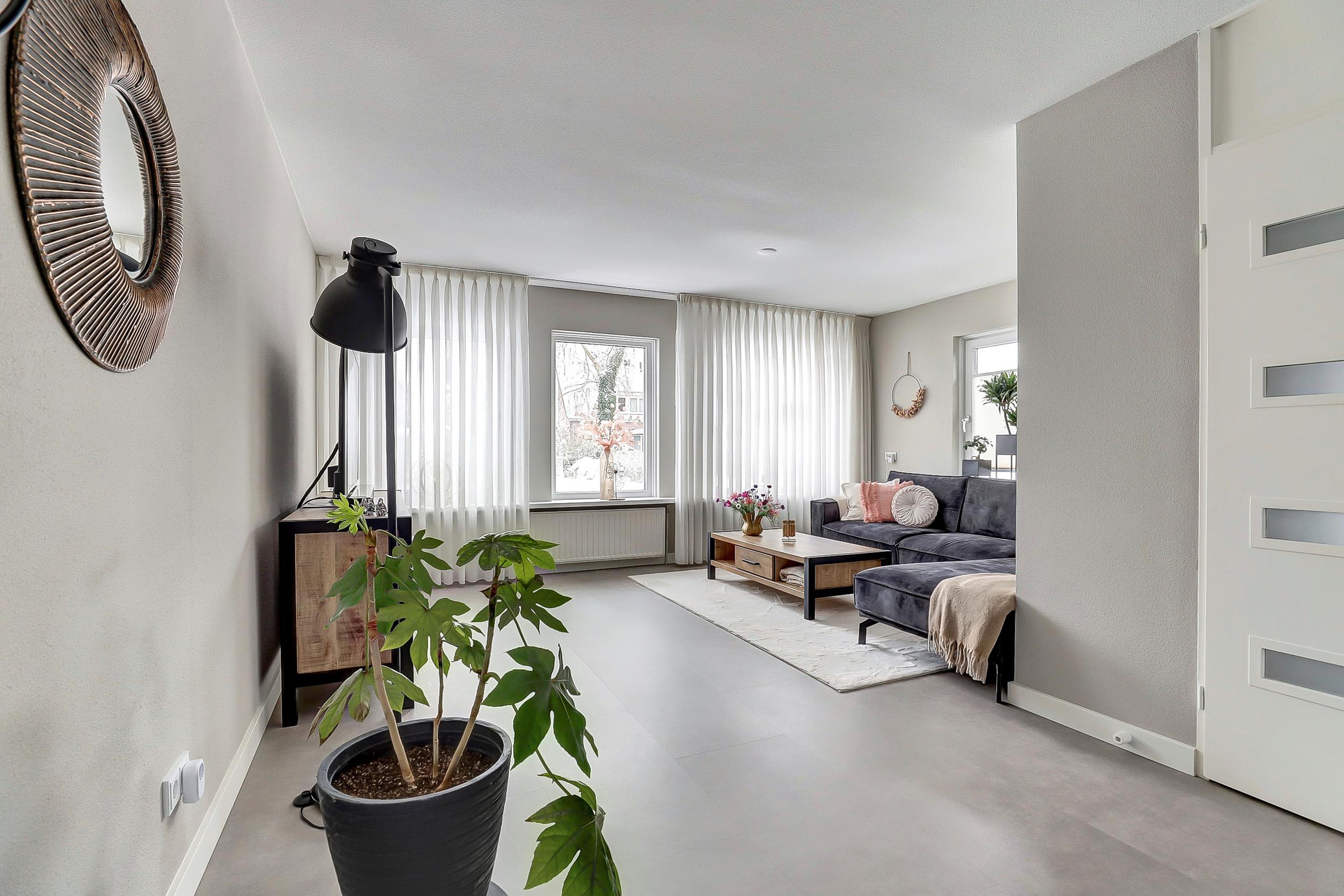 U komt binnen in de entree met moderne toiletruimte en meterkast. Vanuit hier bereikt u de L-vormige woonkamer, uitgevoerd in een moderne kleurstelling en voorzien van een prachtige PVC-vloer en een uitzonderlijk strakke afwerking. De moderne keuken is compleet uitgerust met een combimagnetron, oven, vaatwasser (2023), inductiekookplaat (2023) en afzuigkap. Via de schuifpui is het heerlijk overdekte terras te bereiken. Aansluitend bevindt zich de praktische bijkeuken met vaste kastruimte en opstelling van de cv-ketel.