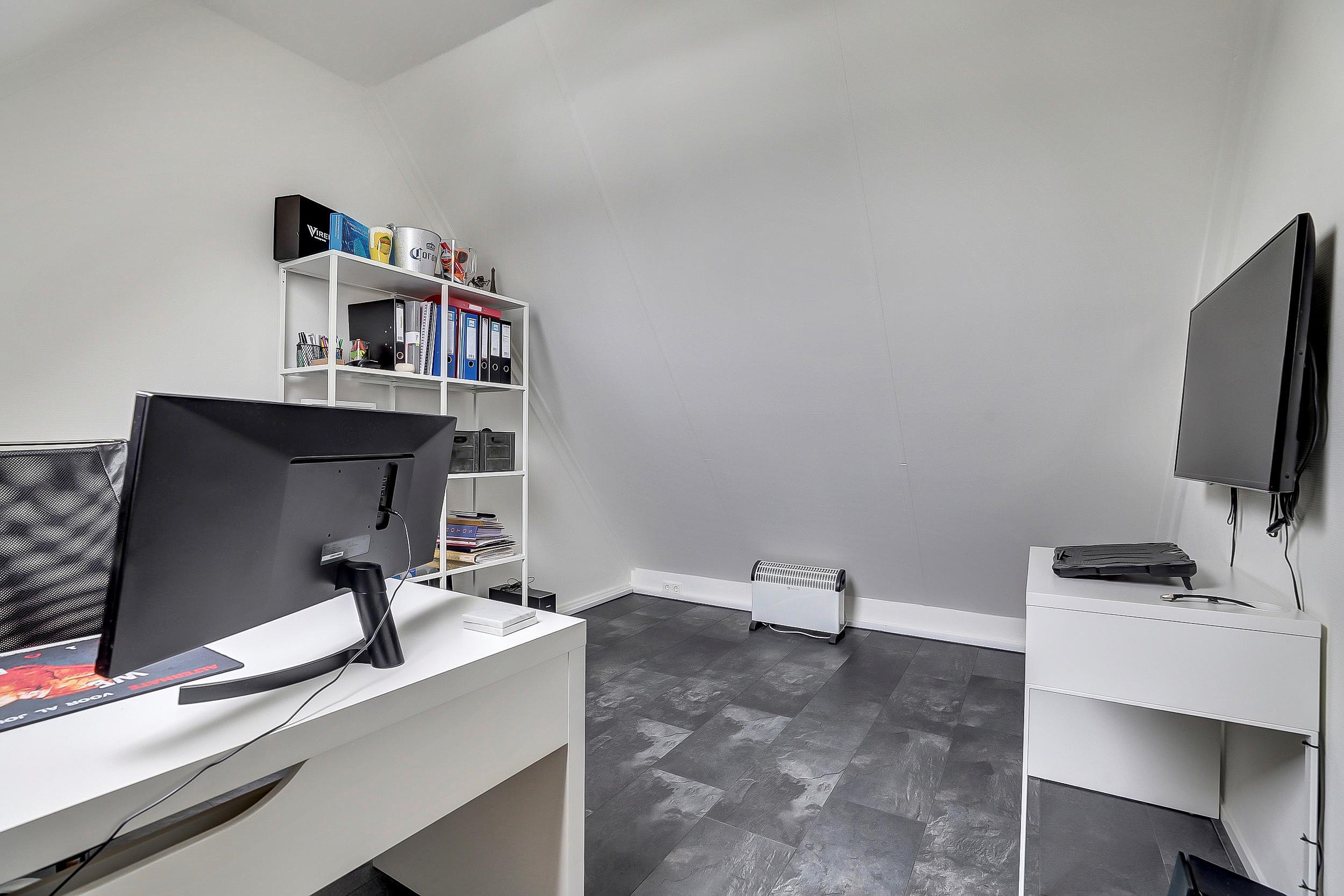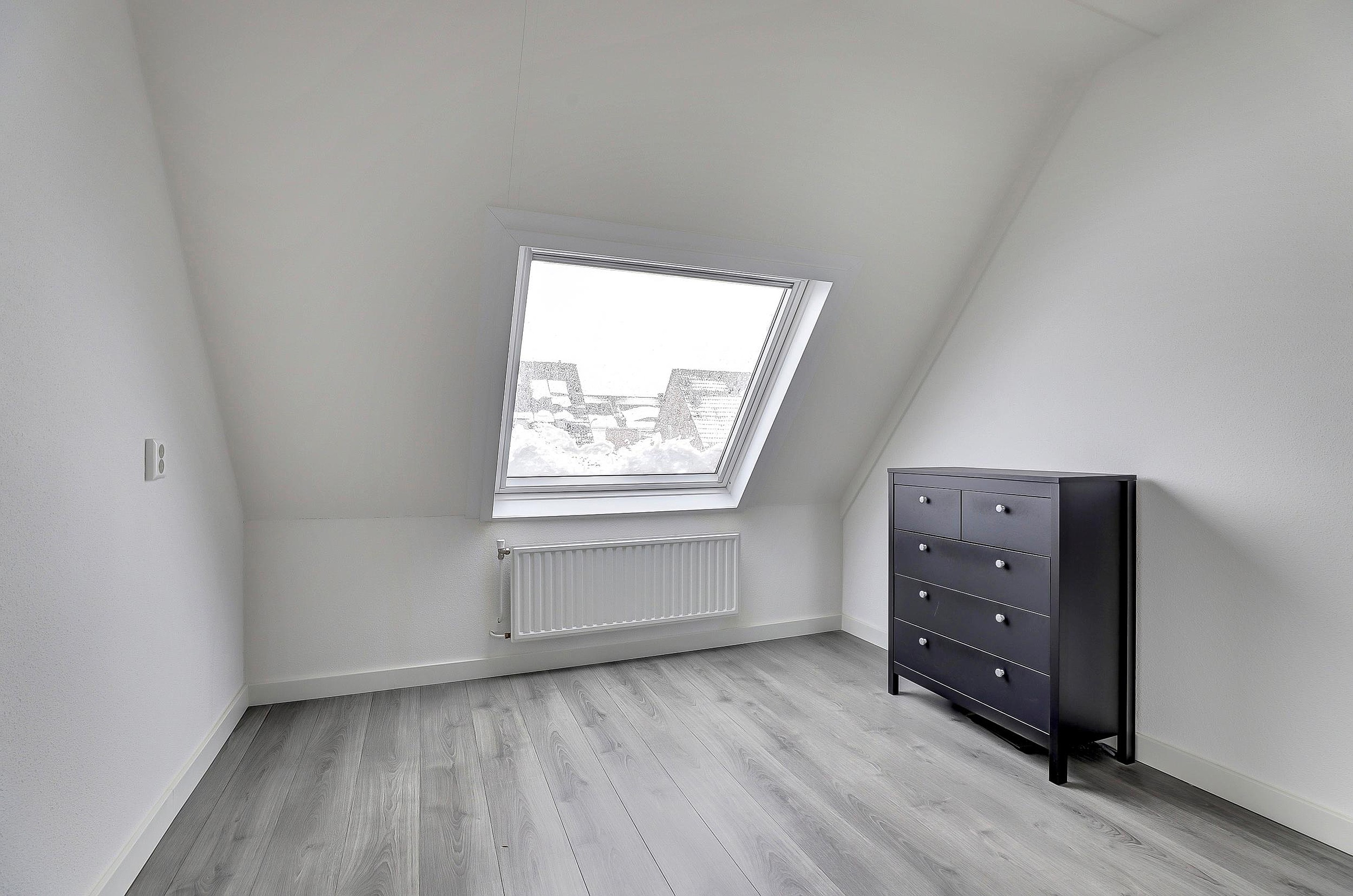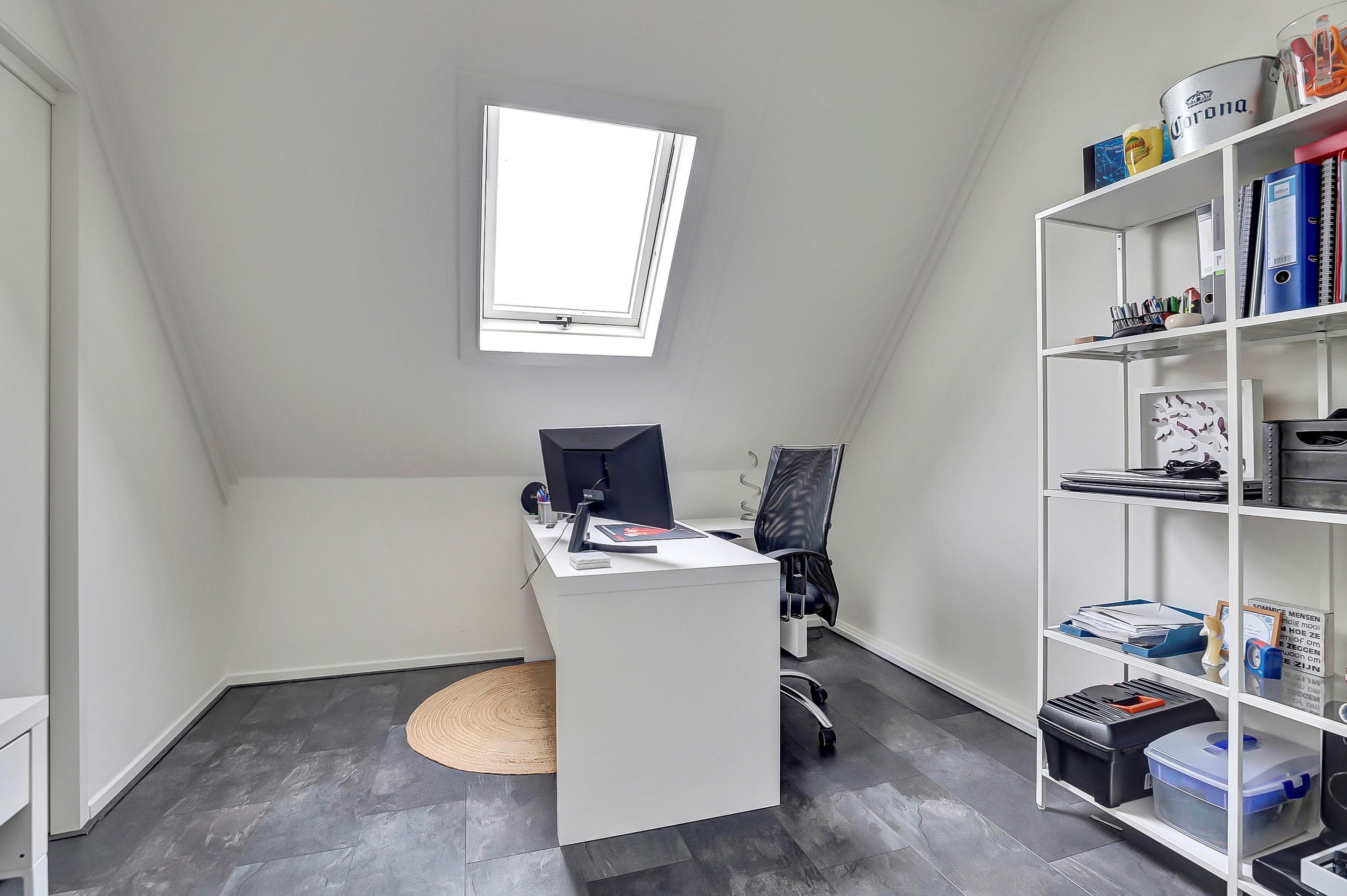 Via een vaste trap bereikt u de tweede verdieping. Hier bevindt zich de vierde slaapkamer, voorzien van een groot dakraam voor volop daglicht. Zelfs deze verdieping is tot in detail strak afgewerkt en ook uitstekend te gebruiken als kantoor of hobbyruimte.