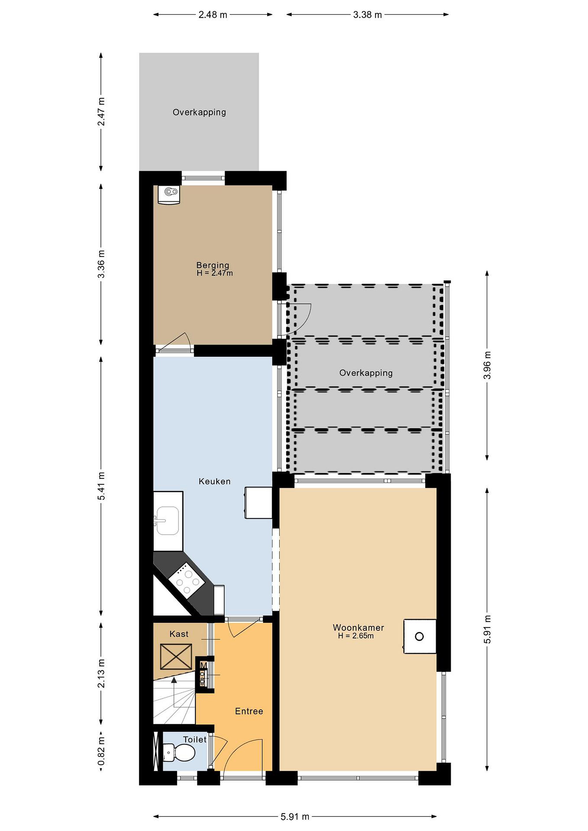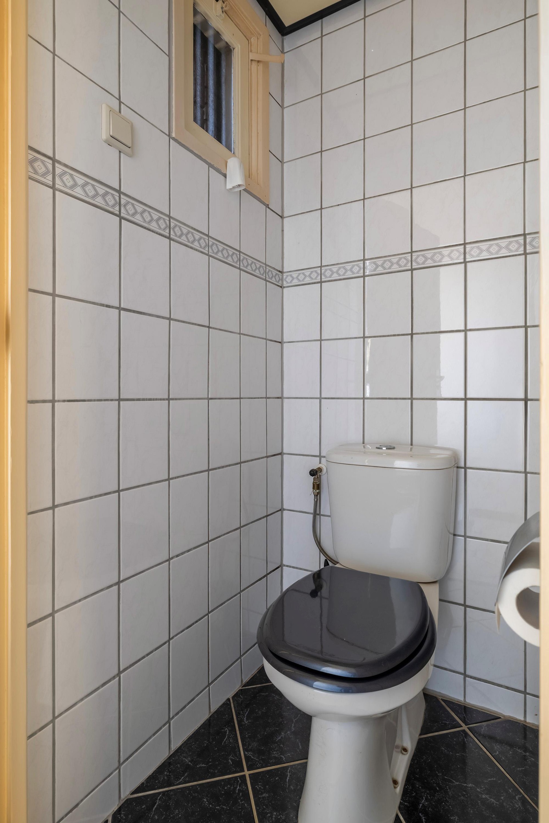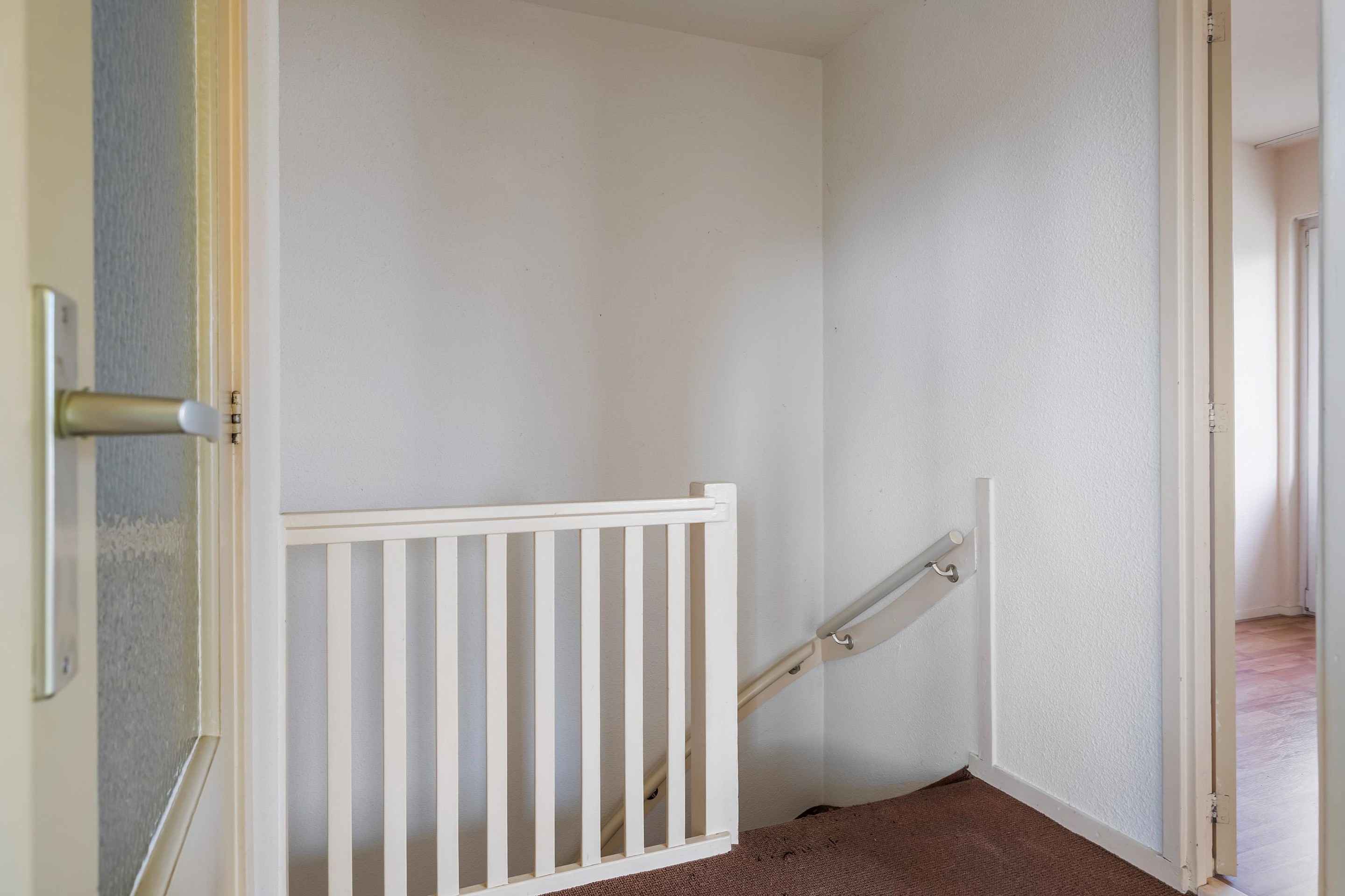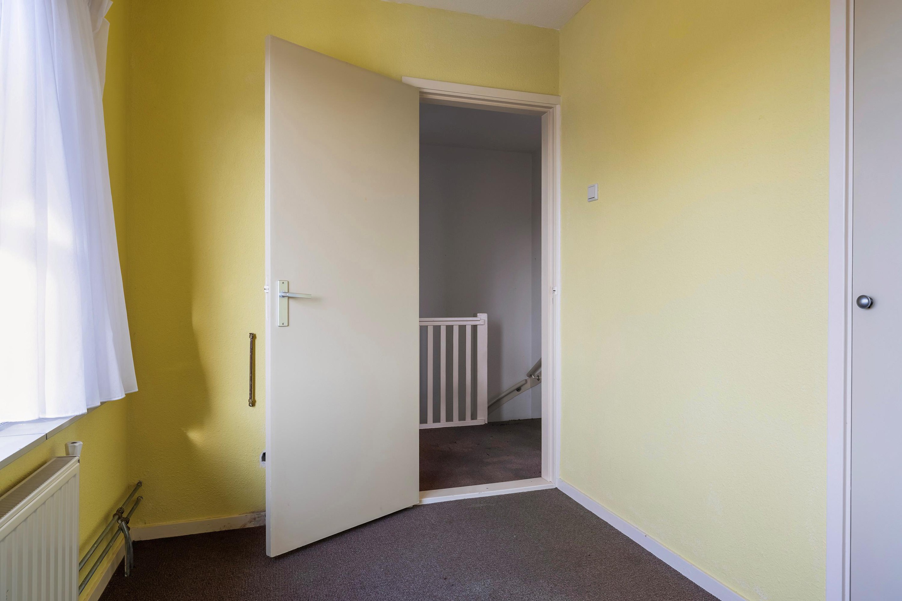 Begane grond Hal met toilet, meterkast en trapopgang. Woonkamer met houtkachel, gesloten keuken, bijkeuken met cv-opstelling.