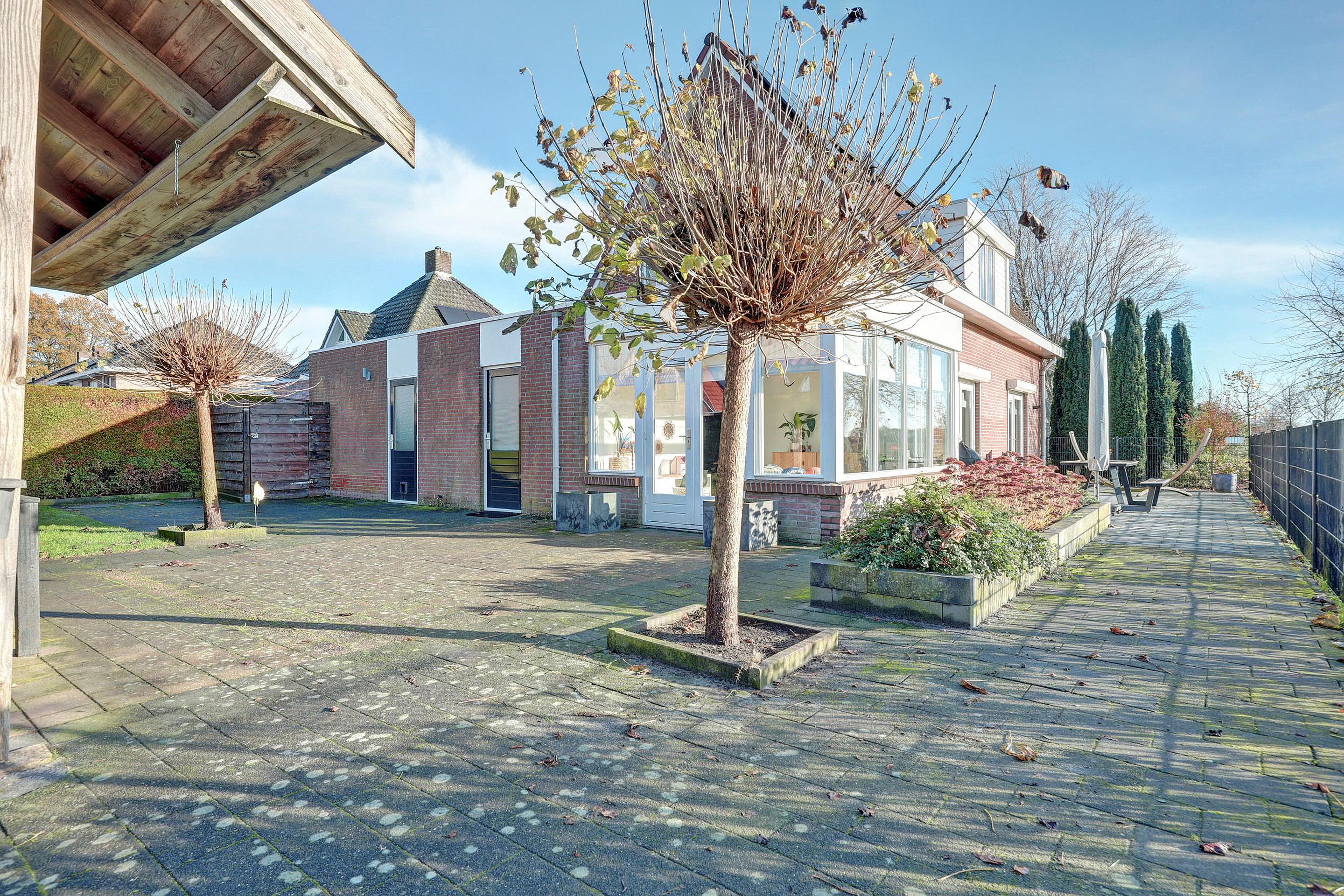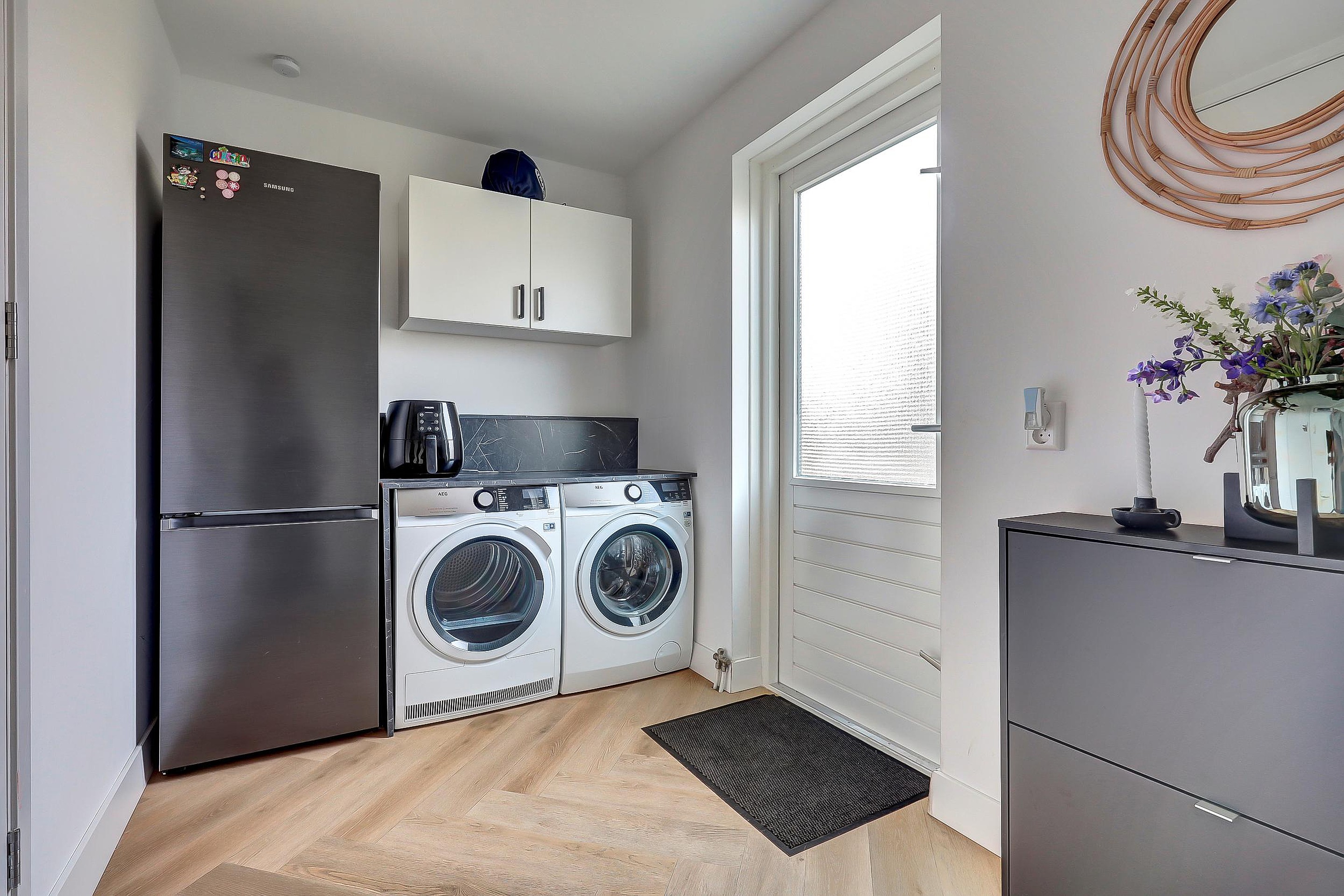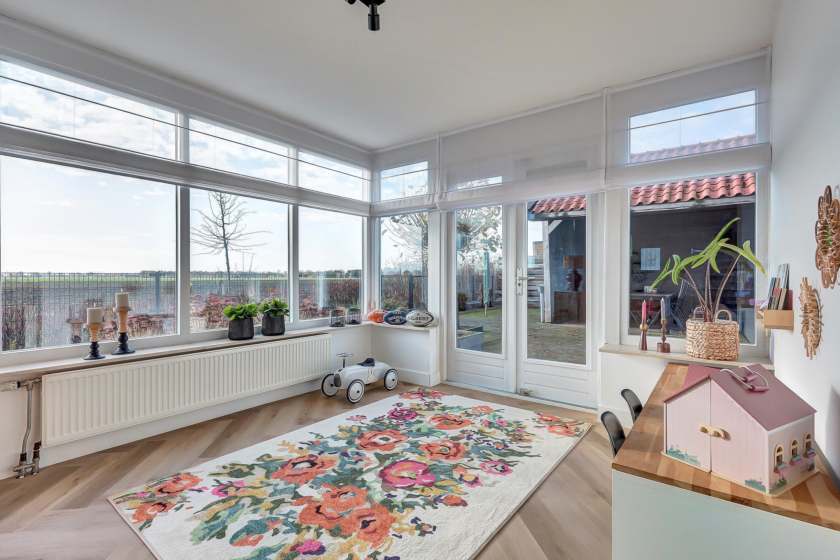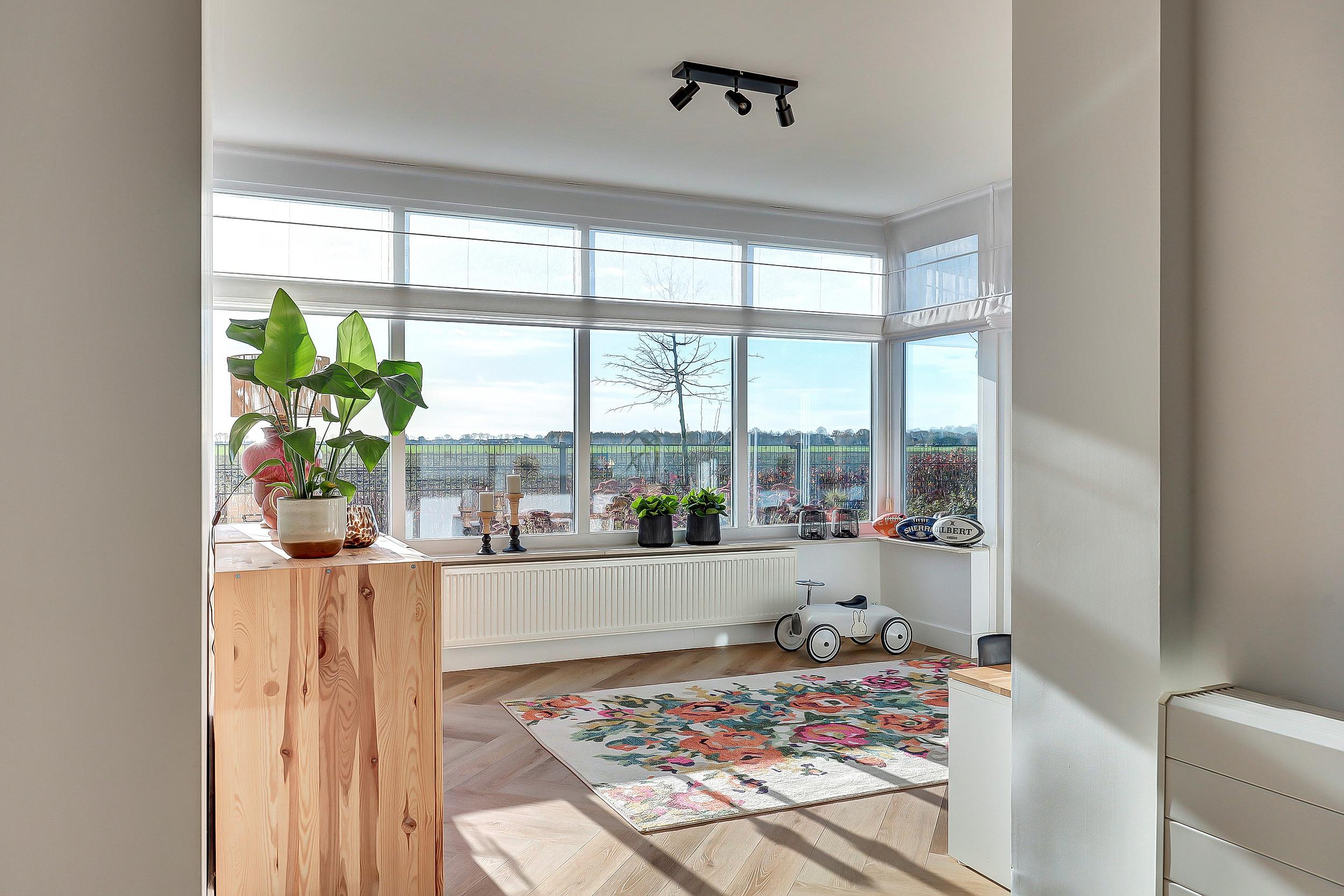 Begane grond De begane grond is speels en bijzonder leuk ingedeeld. Bij binnenkomst valt direct de lichtinval op door de grote raampartijen en de erker aan de voorzijde. De woonkamer is een echte eyecatcher met zijn unieke indeling, gezellige palletkachel en dubbele openslaande deuren die toegang bieden tot de zijtuin. Het is een ruimte die uitnodigt tot ontspannen, samenkomen en genieten van het uitzicht. De half open keuken, geplaatst in 2022, is van alle gemakken voorzien: koelkast, combimagnetron, inductiekookplaat, afzuigkap, vaatwasser en cooker. Aansluitend ligt de royale serre, ideaal als speelkamer, werkkamer of extra eetkamer. Vanaf hier heeft u een prachtig zicht op de tuin en de uitgestrekte landerijen, perfect voor wie houdt van licht en ruimte. De bijkeuken met witgoedinstallatie en de inpandige garage met elektrische deur en muurisolatie maken het wooncomfort compleet. Praktisch, comfortabel en stijlvol!