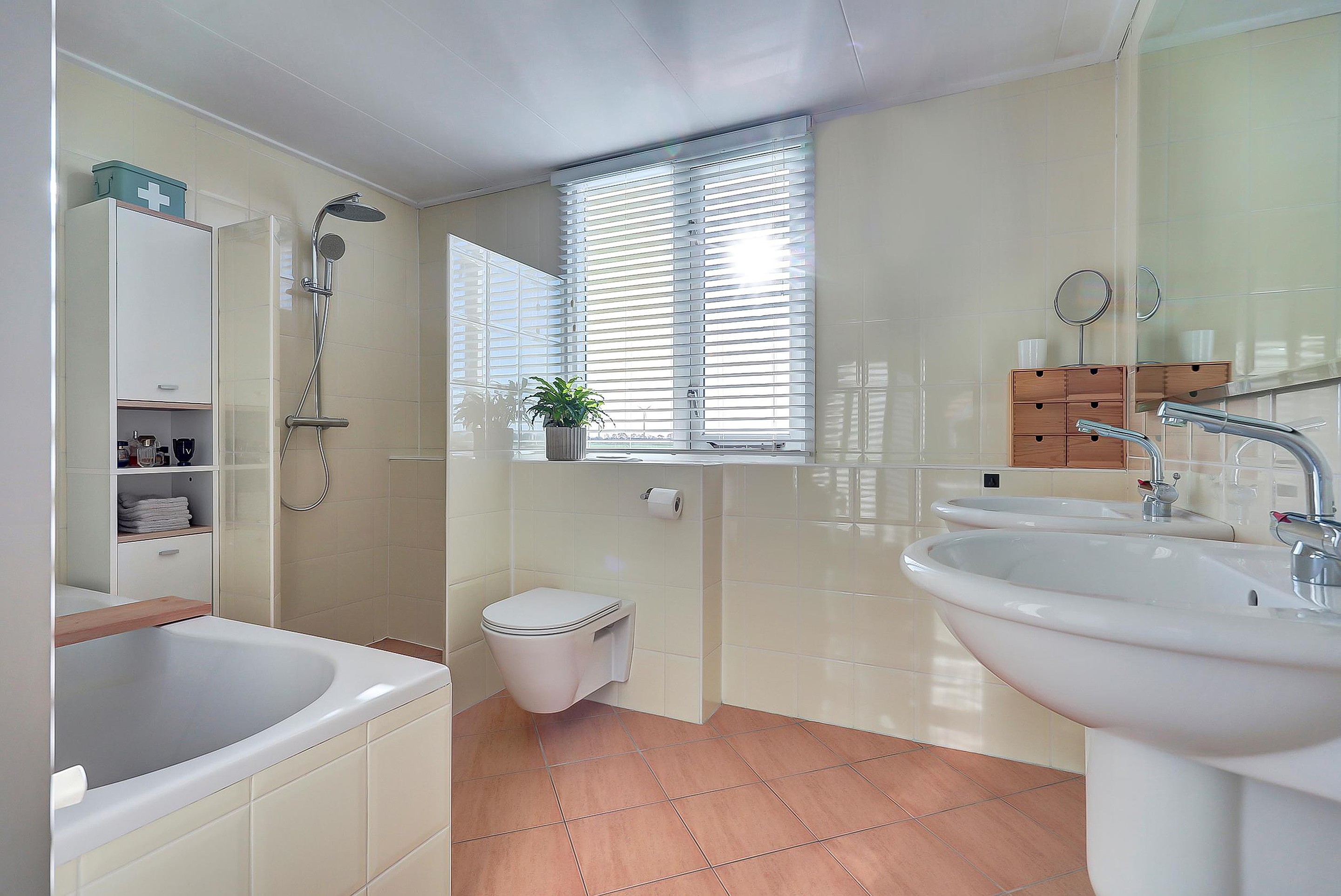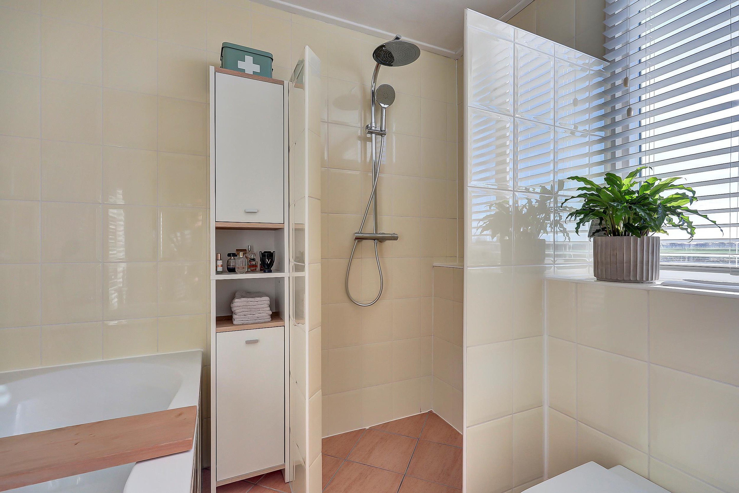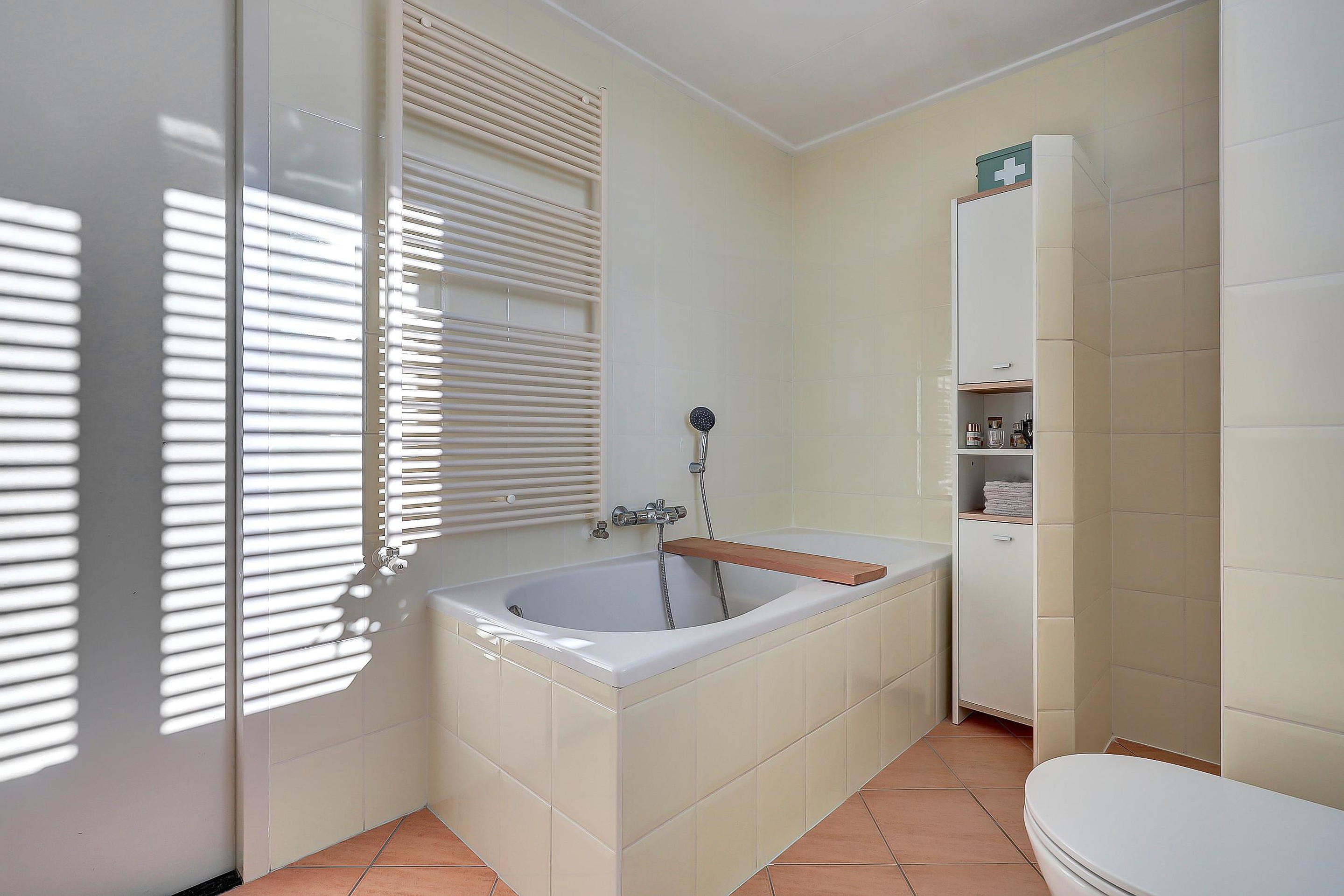Eerste verdieping Op de eerste verdieping bevinden zich drie ruime slaapkamers, waaronder de master bedroom met een praktische vaste kast. De badkamer, gesitueerd in de dakkapel, is volledig uitgerust met een dubbele wastafel, ligbad, toilet en douche, ideaal voor het hele gezin. Kast met Cv-ketel, bouwjaar 2019.