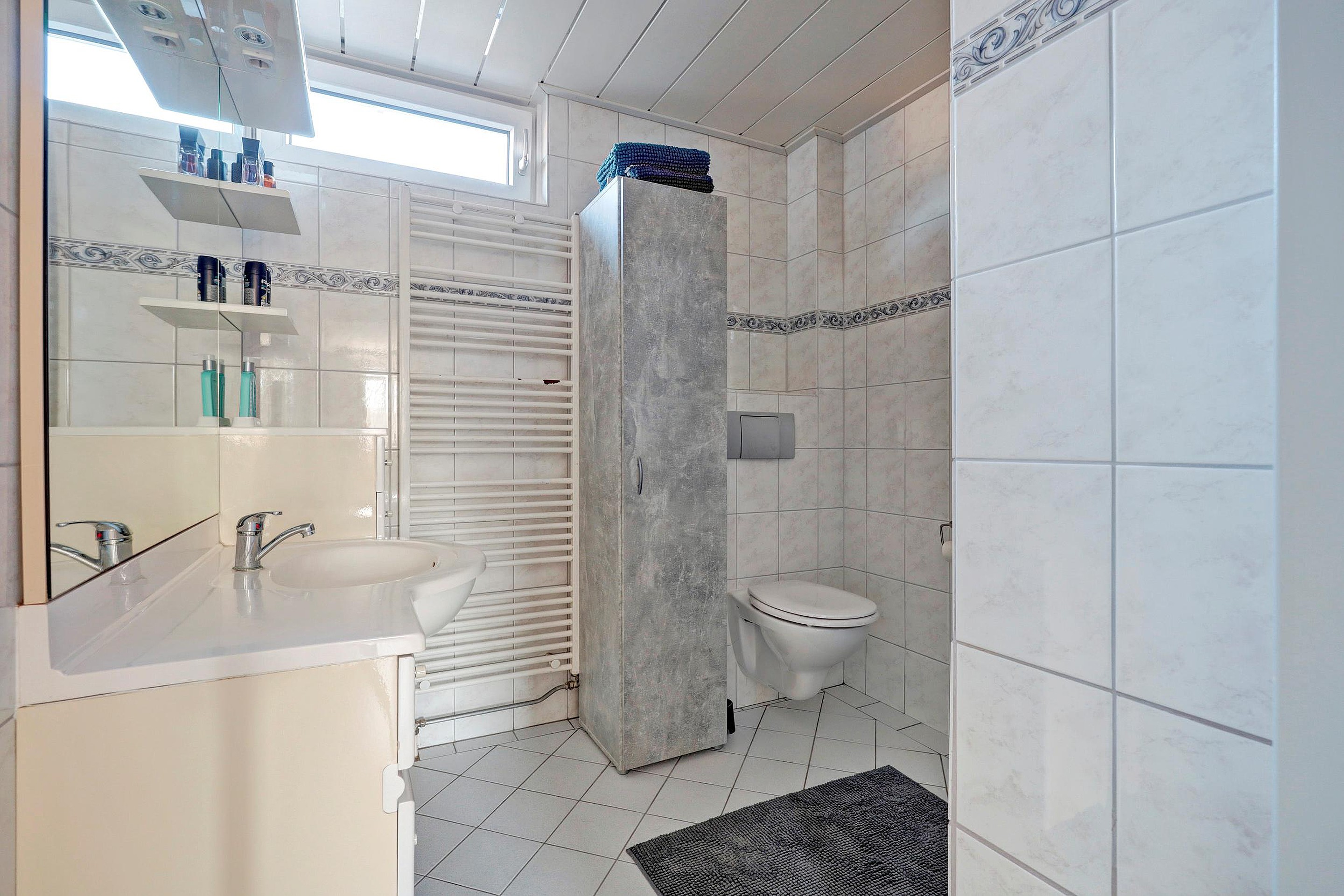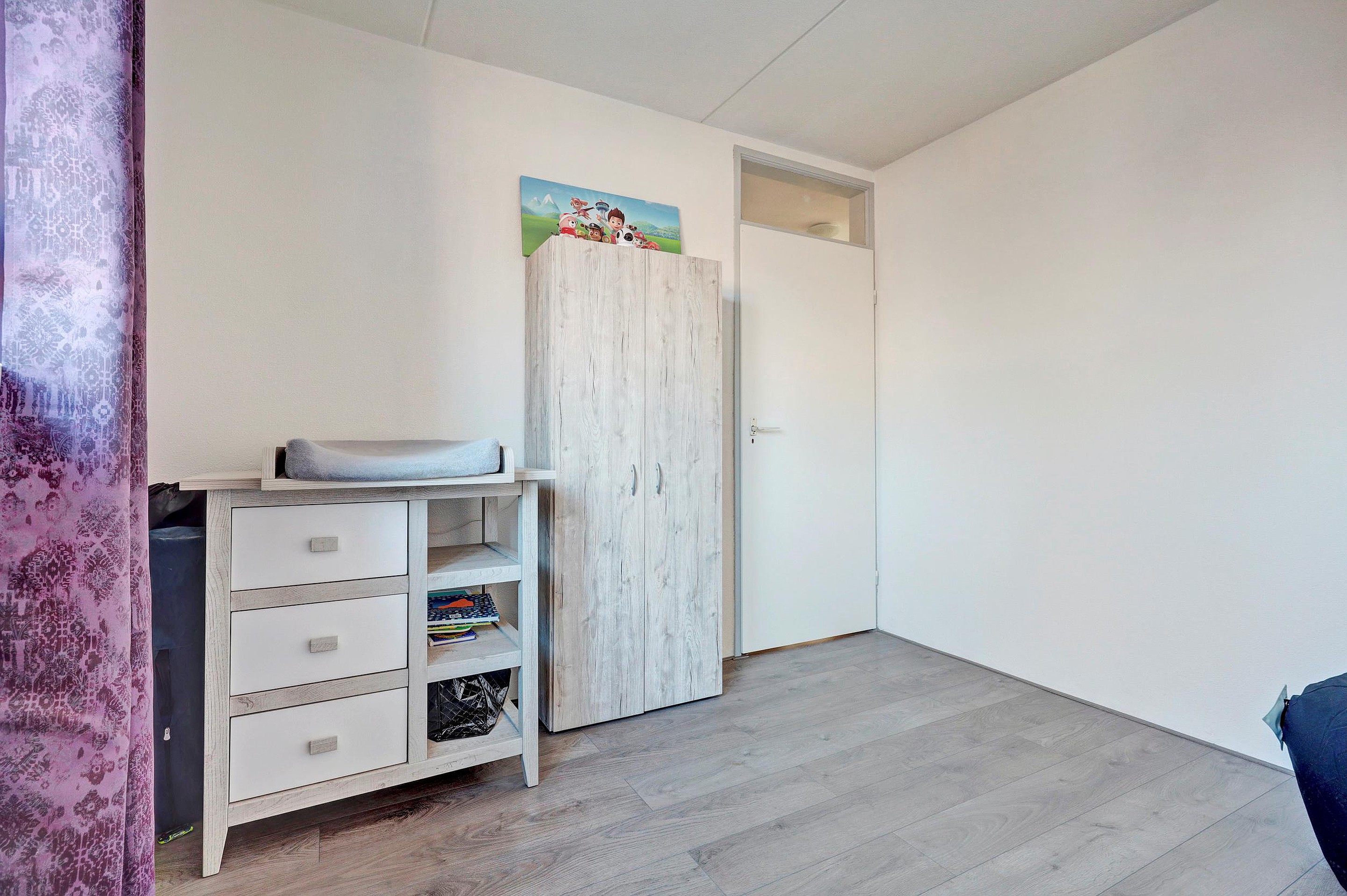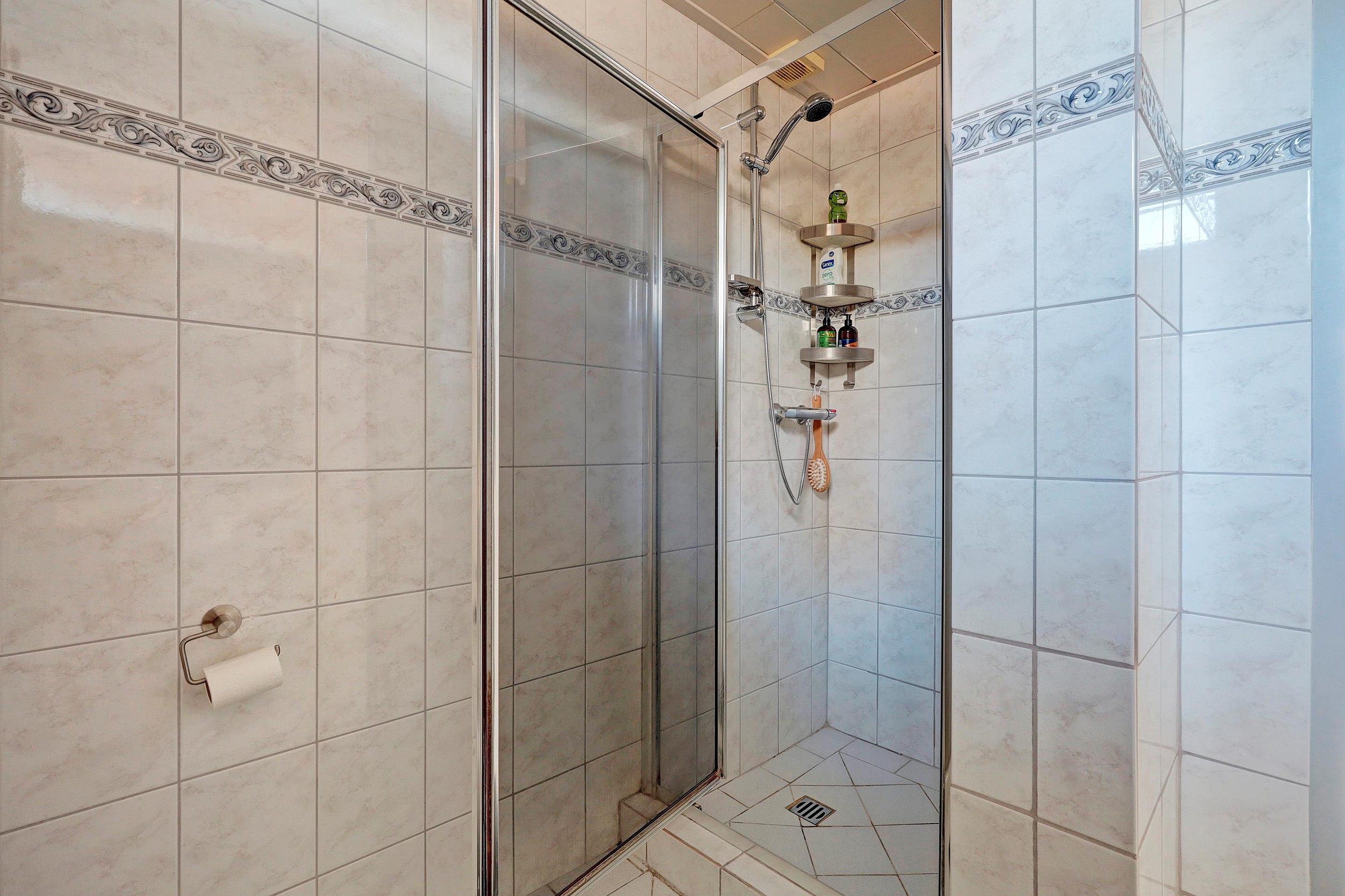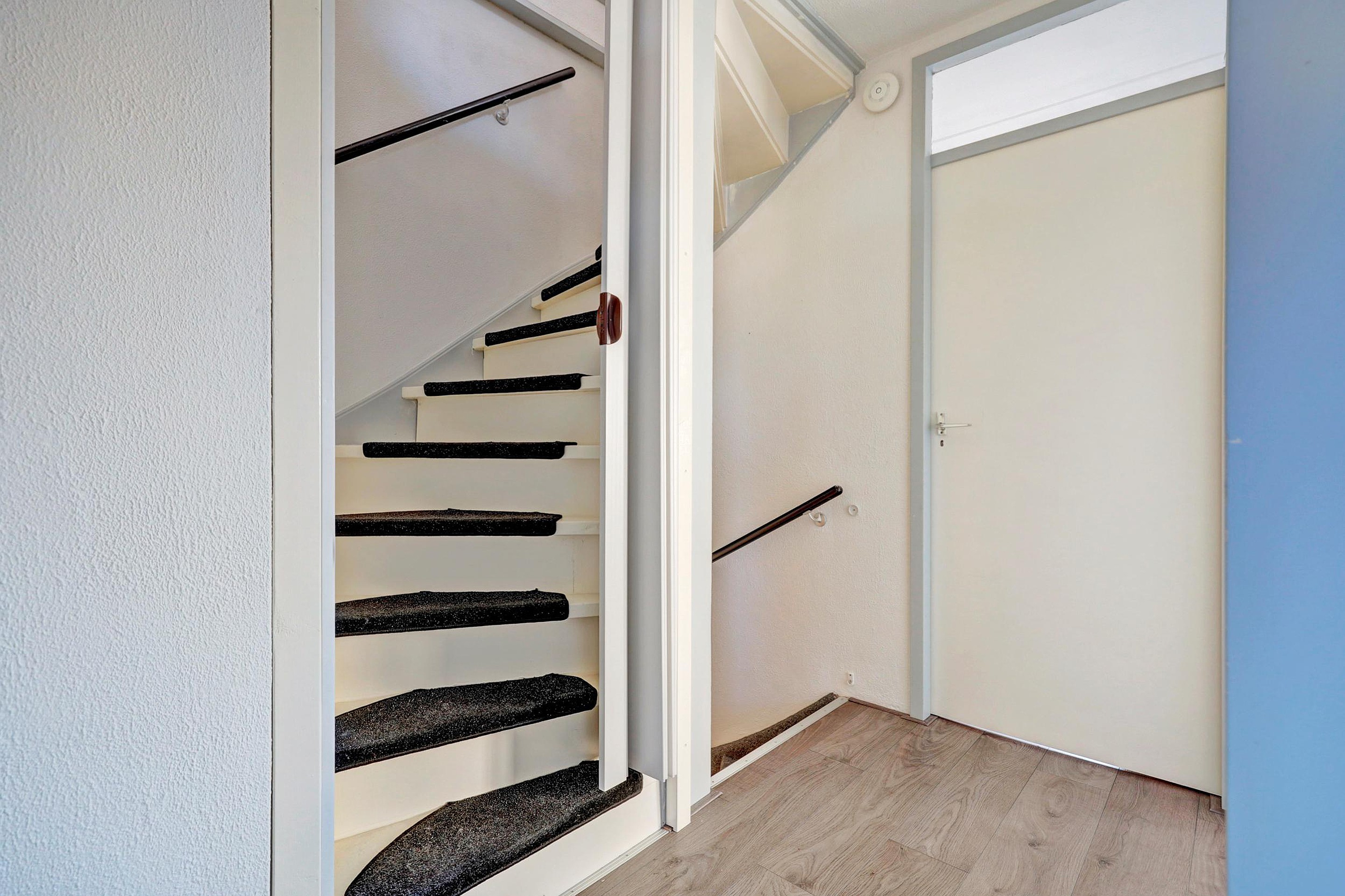 Op de eerste verdieping geeft de overloop toegang tot drie slaapkamers, allemaal voorzien van kunststof kozijnen met horren. De badkamer is ingericht met een toilet, douche en wastafel.