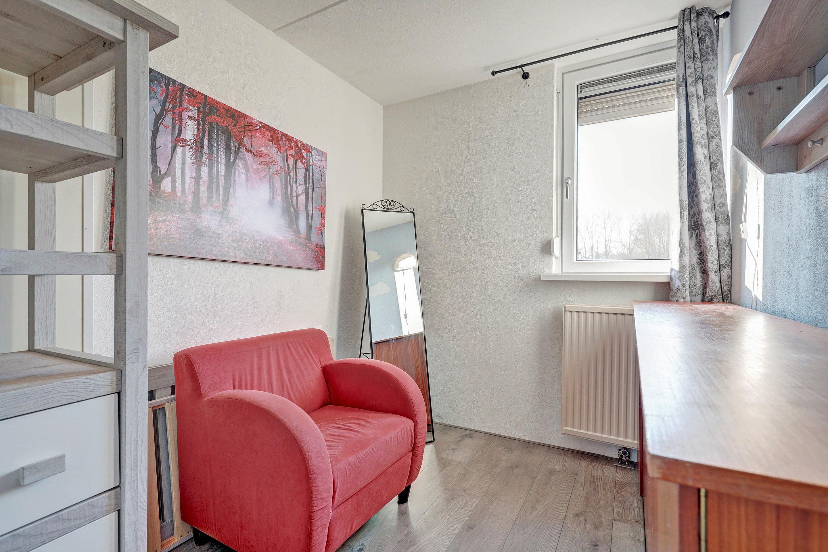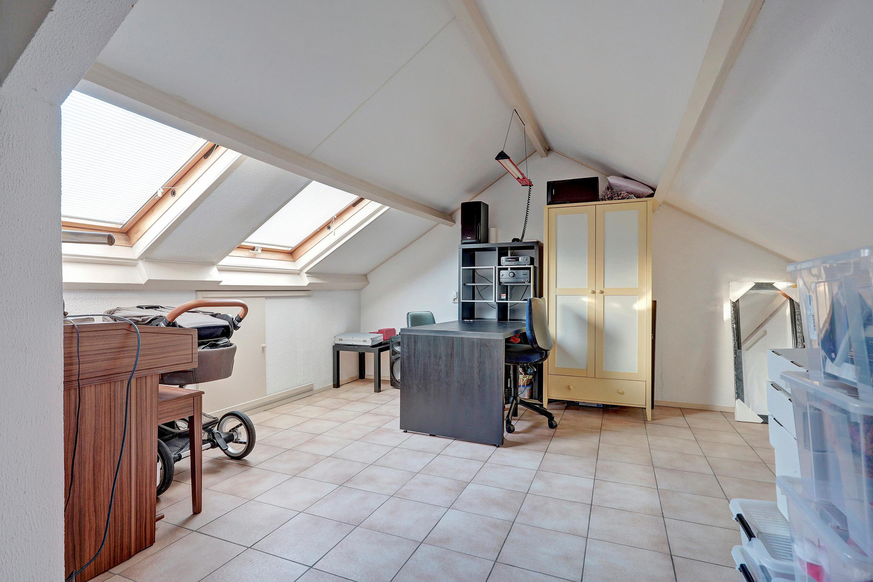Via een vaste trap bereikt u de tweede verdieping. Hier vindt u de overloop met de cv-ketel en een ruime vierde slaapkamer. Deze kamer is aangenaam licht dankzij de twee dakramen en daardoor uitstekend geschikt als slaapkamer, werkkamer of hobbyruimte.