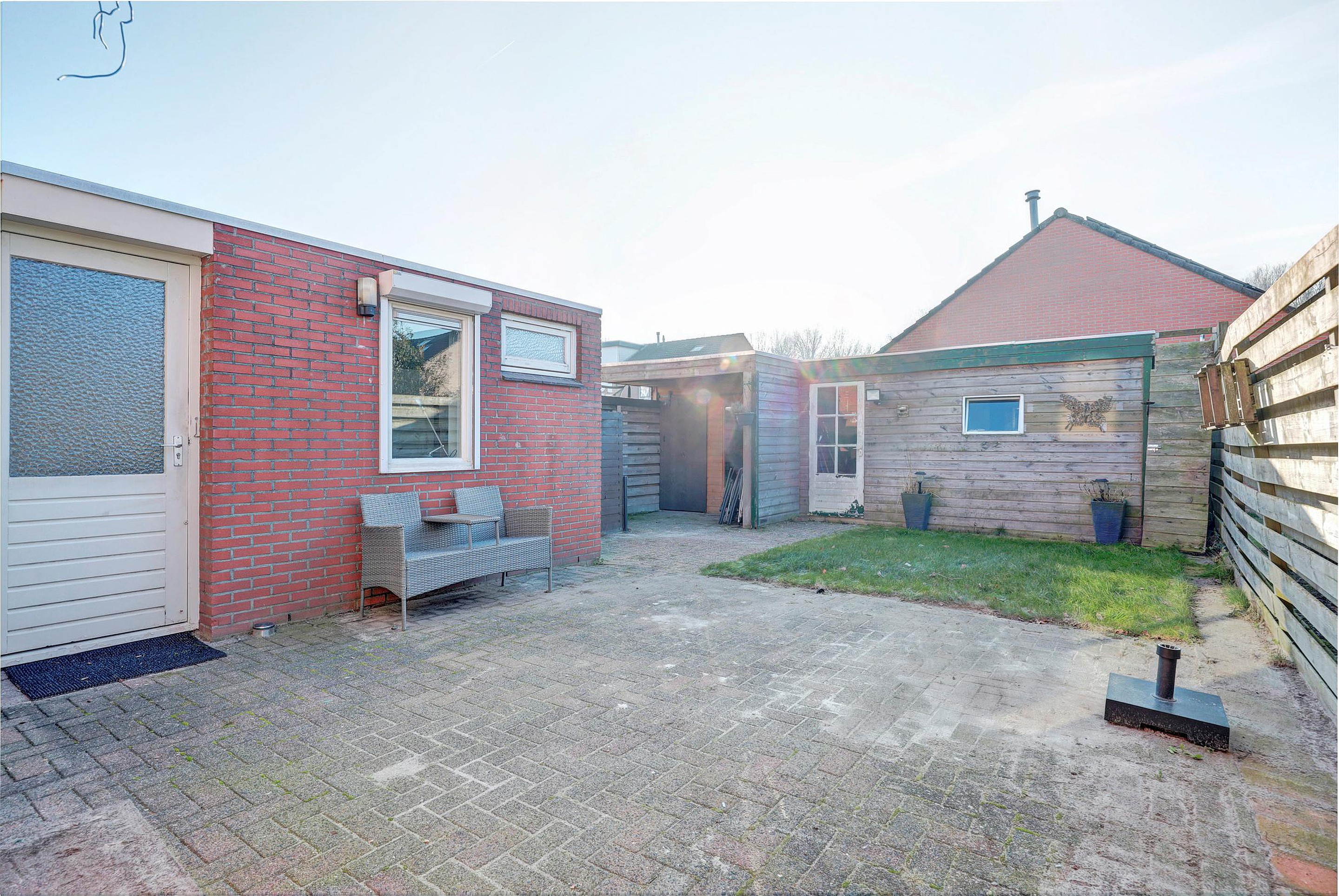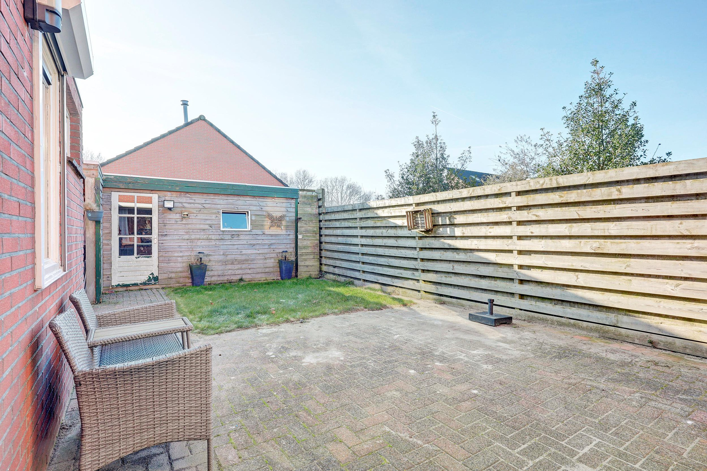 Voor, zij en achtertuin. Achtertuin op het Zuiden met achterom.