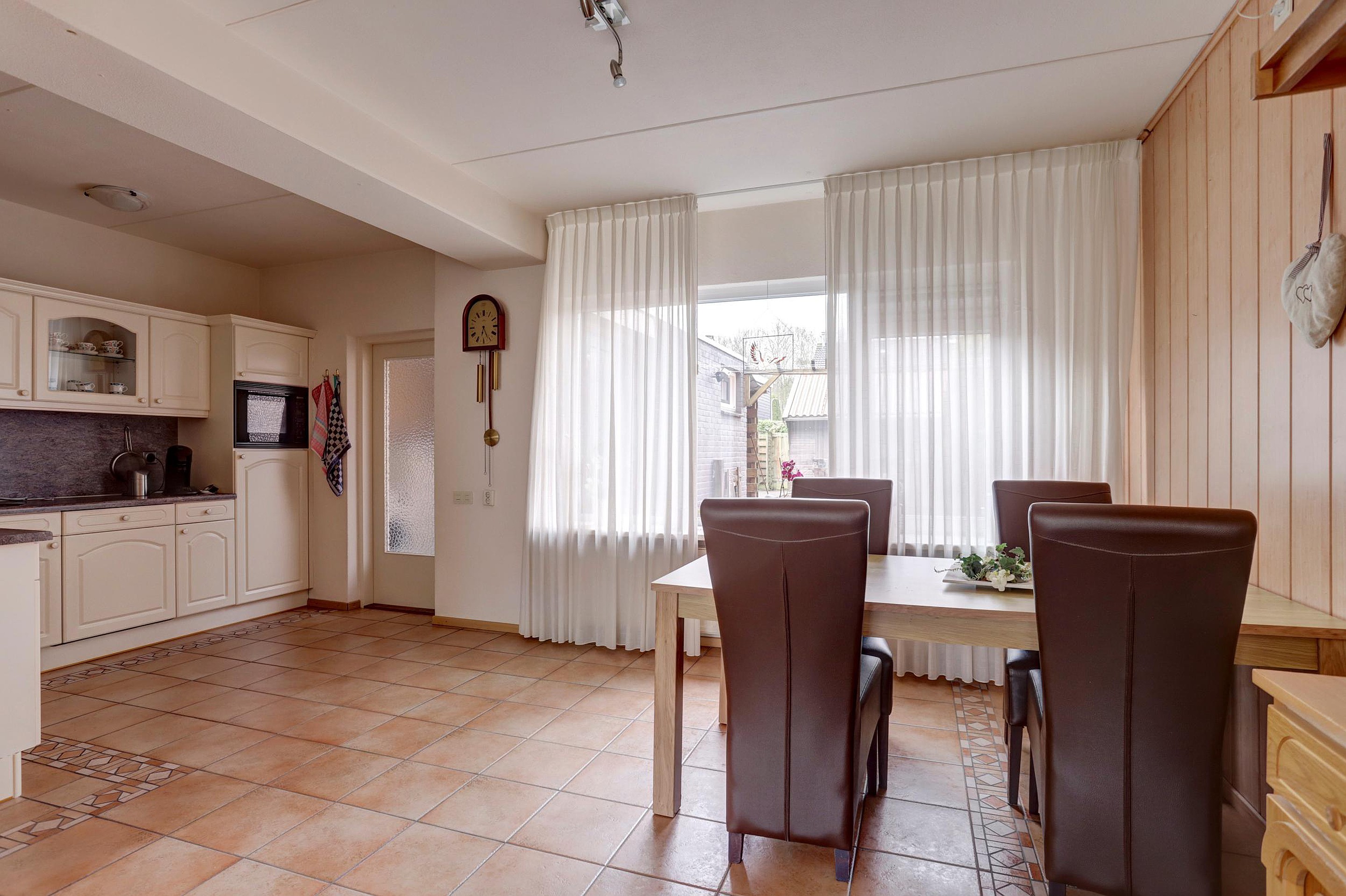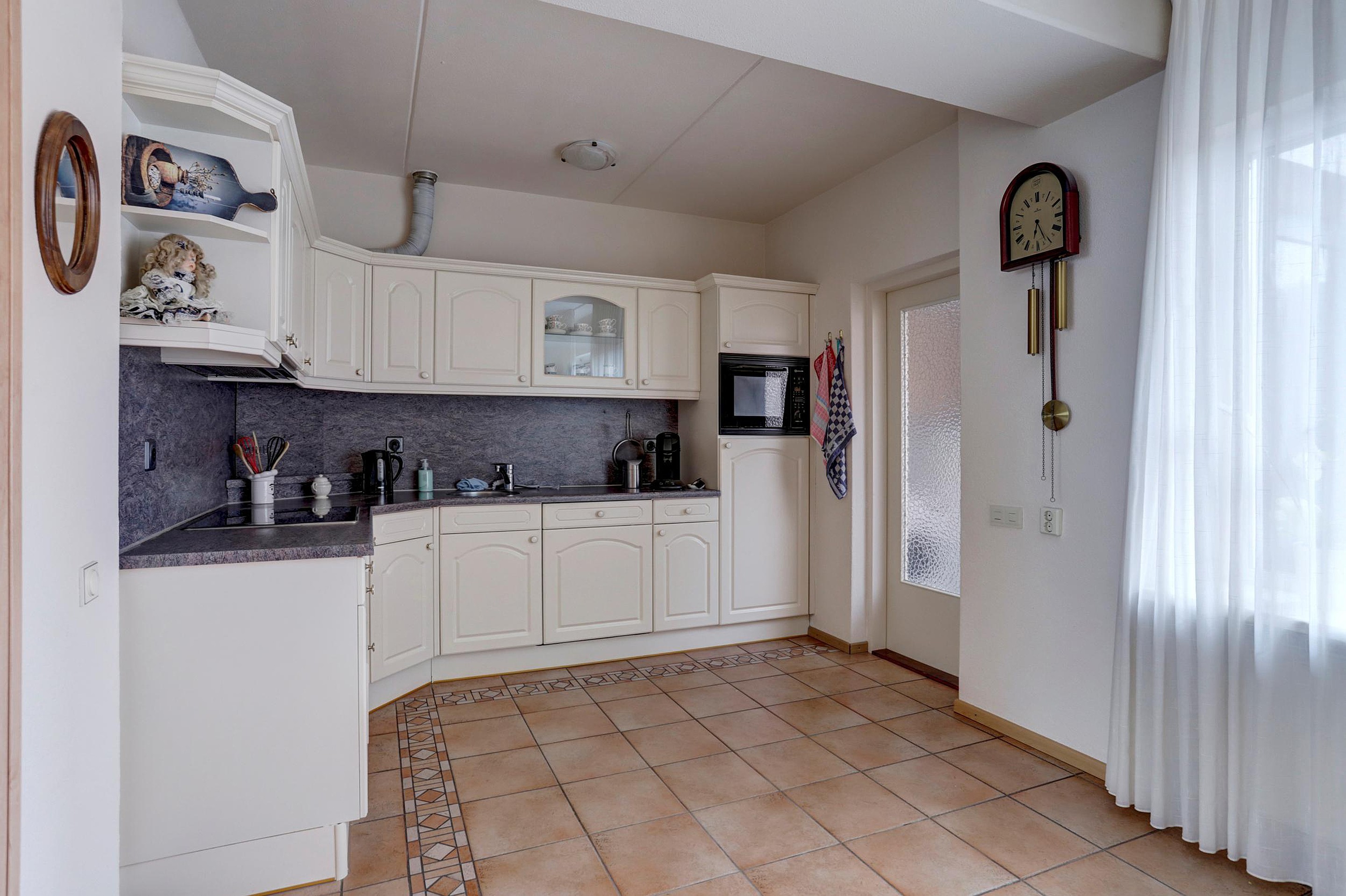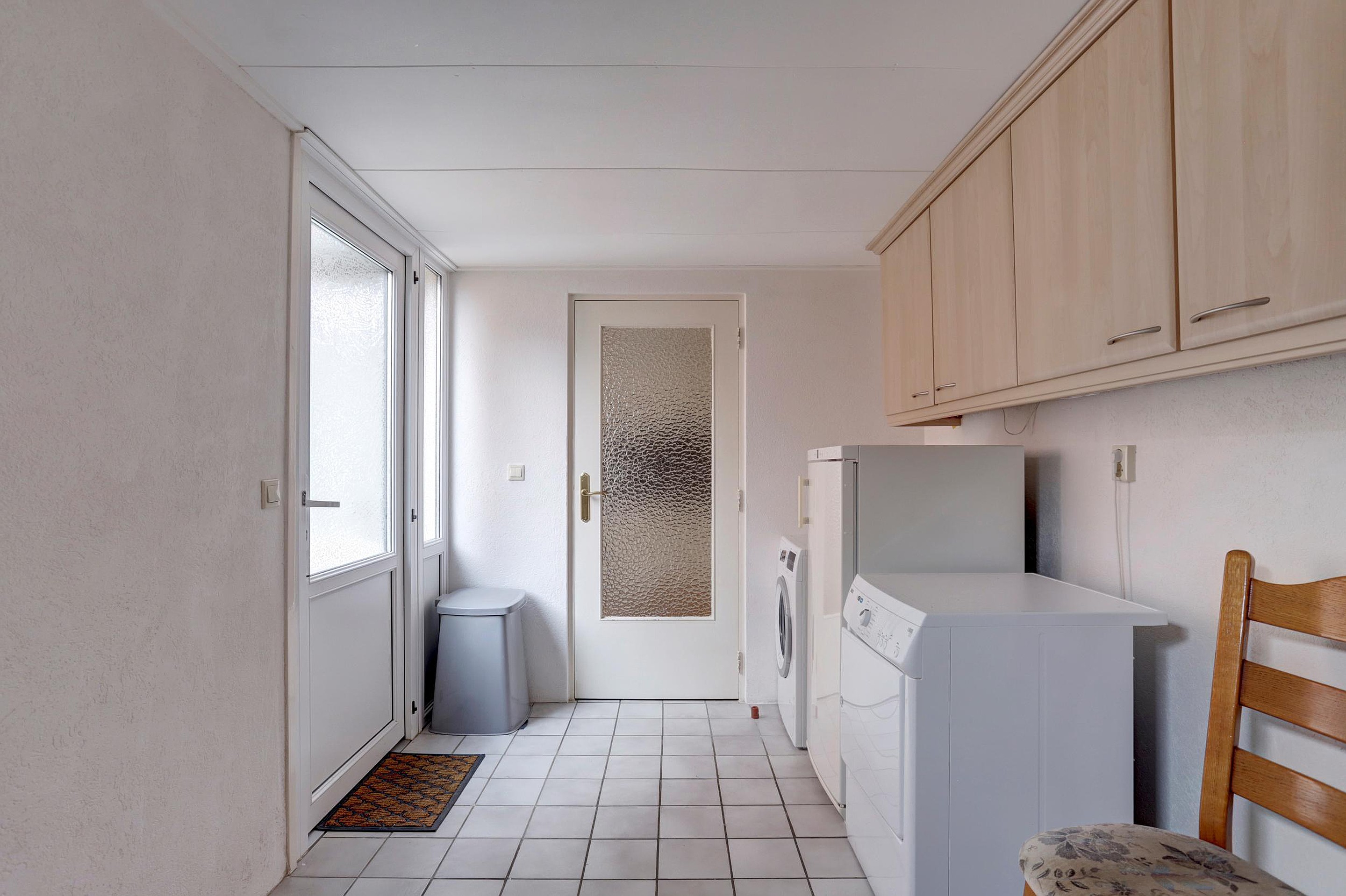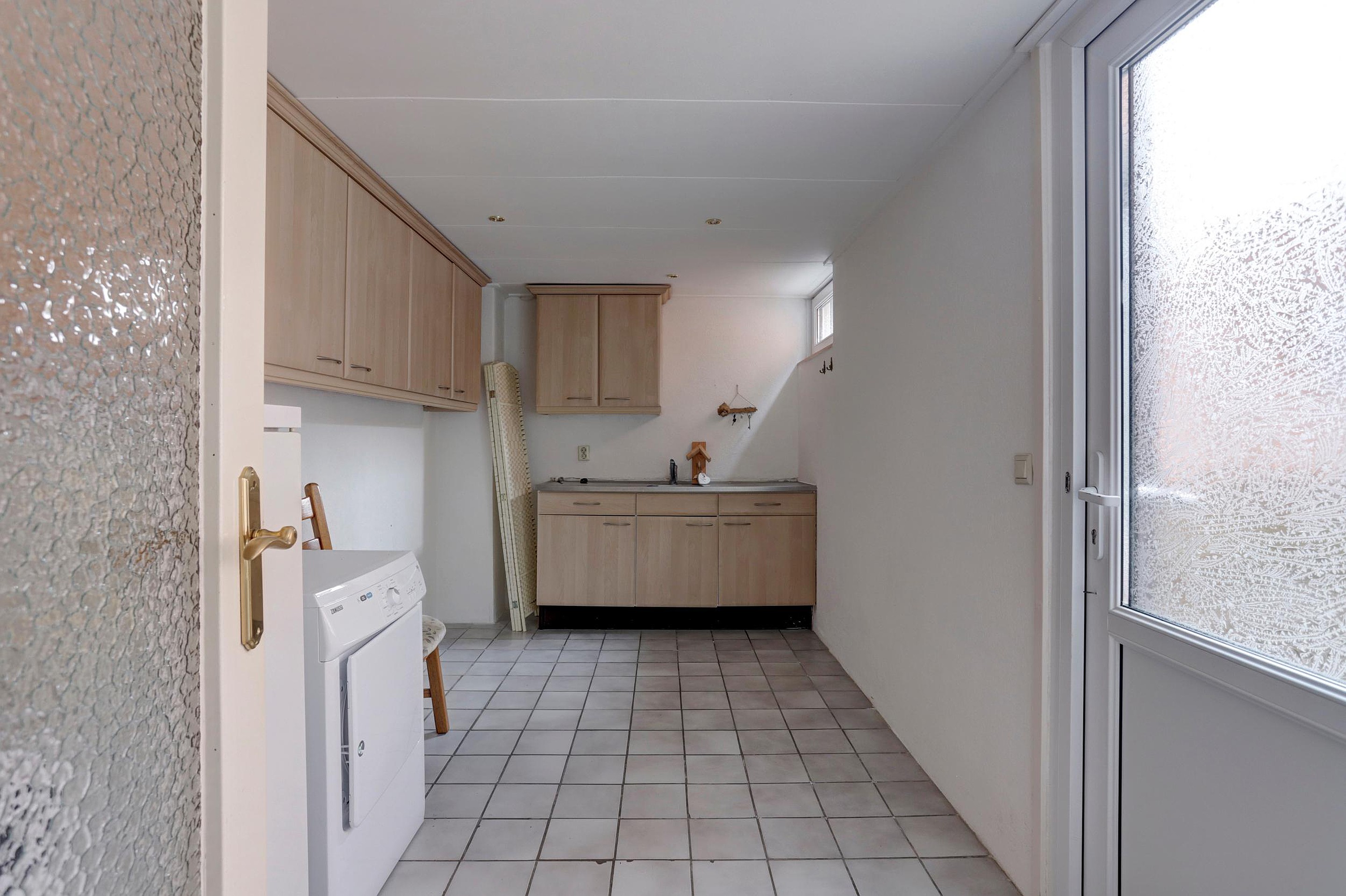 Via de entree kom je binnen in de hal met meterkast, toilet en een praktische vaste kast. De ruime doorzon woonkamer is heerlijk licht dankzij de grote raampartijen aan zowel de voor- als achterzijde. Met bijvoorbeeld openslaande deuren is de tuin eenvoudig nog meer bij de woonkamer te betrekken, wat zorgt voor extra wooncomfort. De open keuken is voorzien van een koelkast, combimagnetron, vaatwasser, afzuigkap en een keramische kookplaat. Aansluitend bevindt zich een ruime bijkeuken met witgoedopstelling en achterdeur naar de tuin.