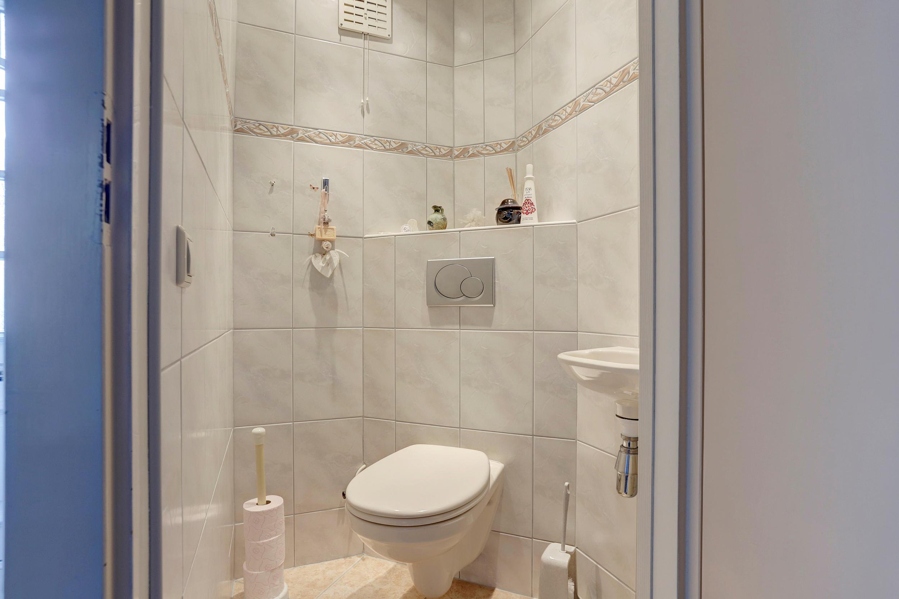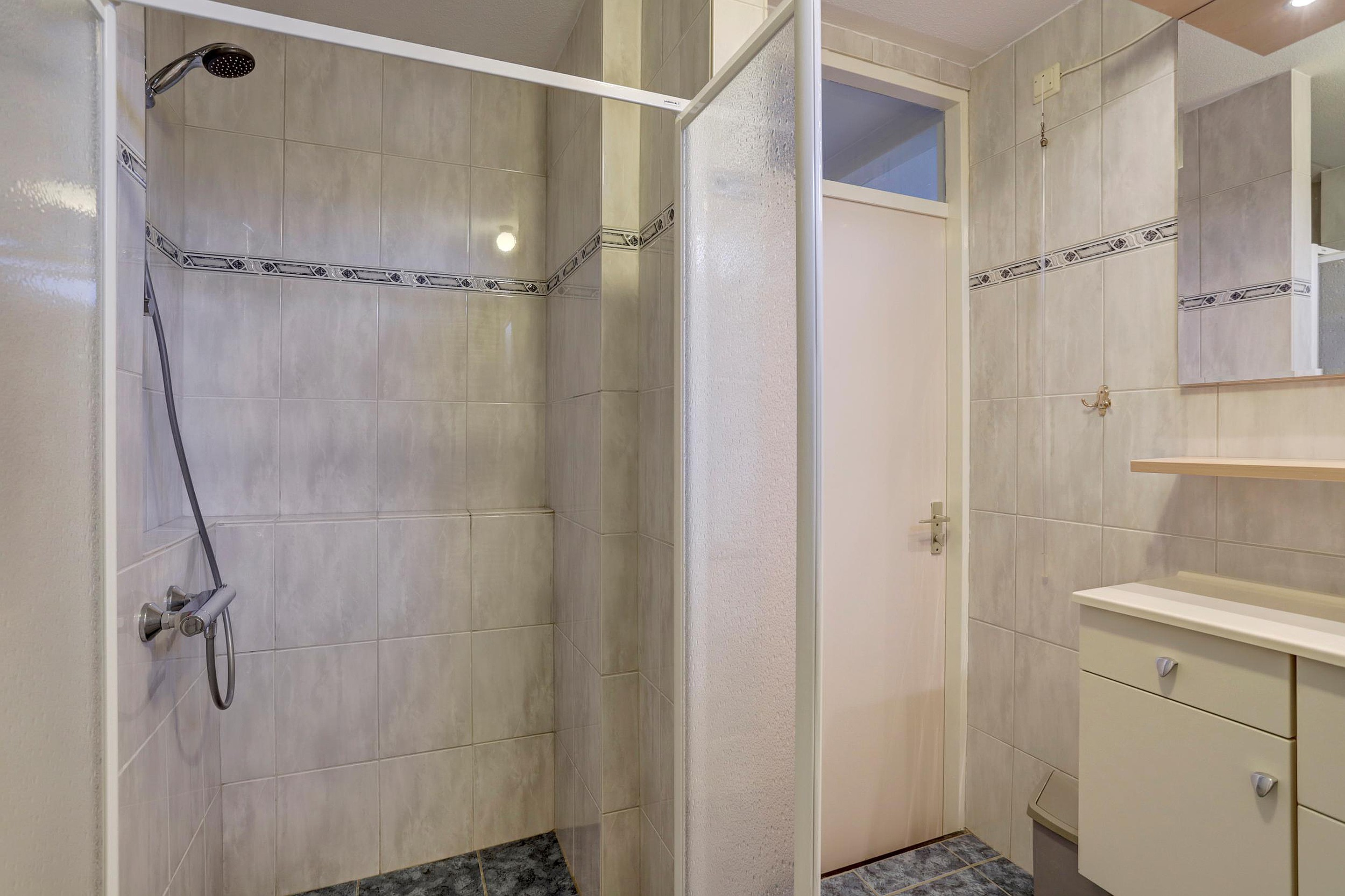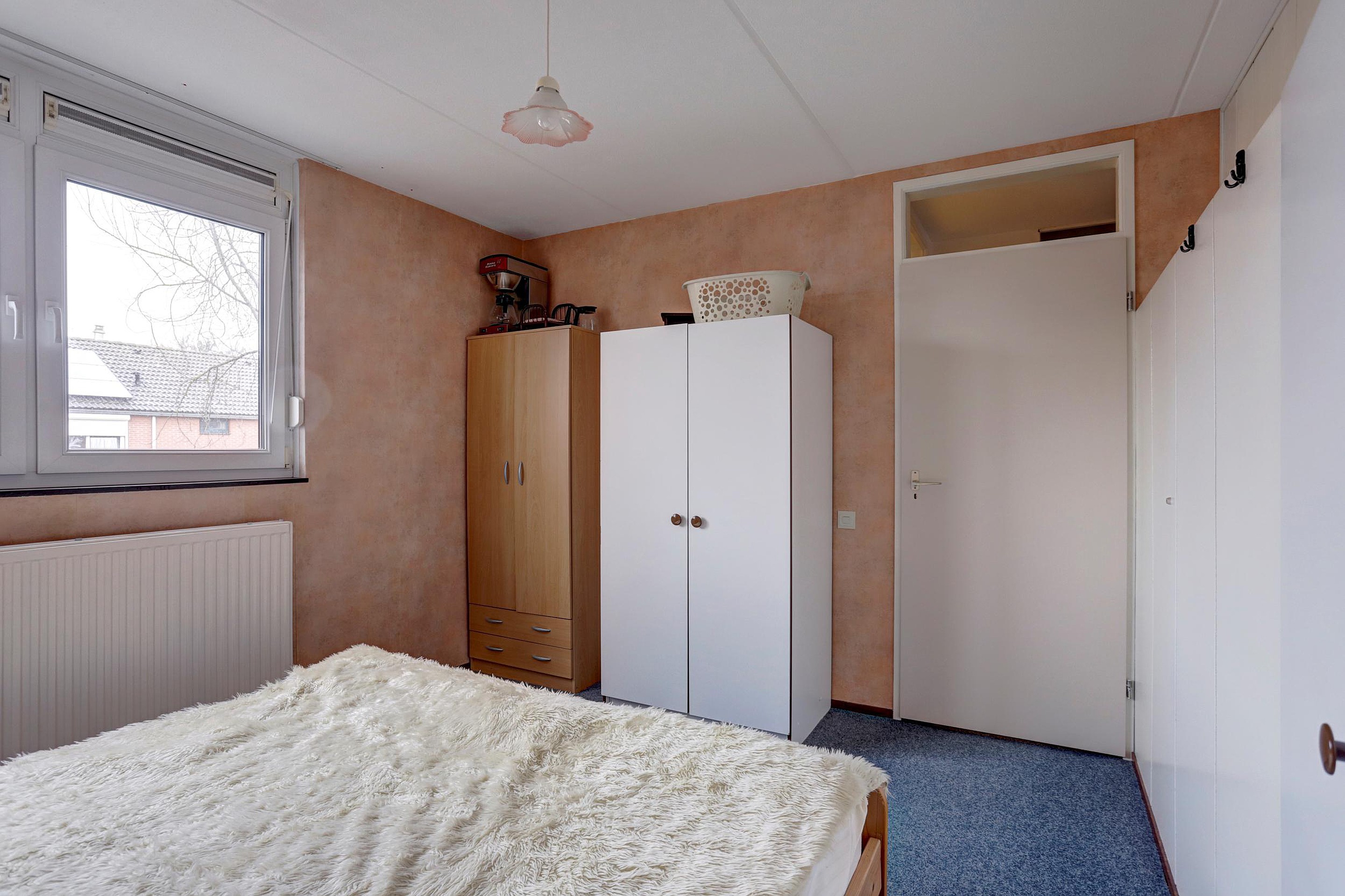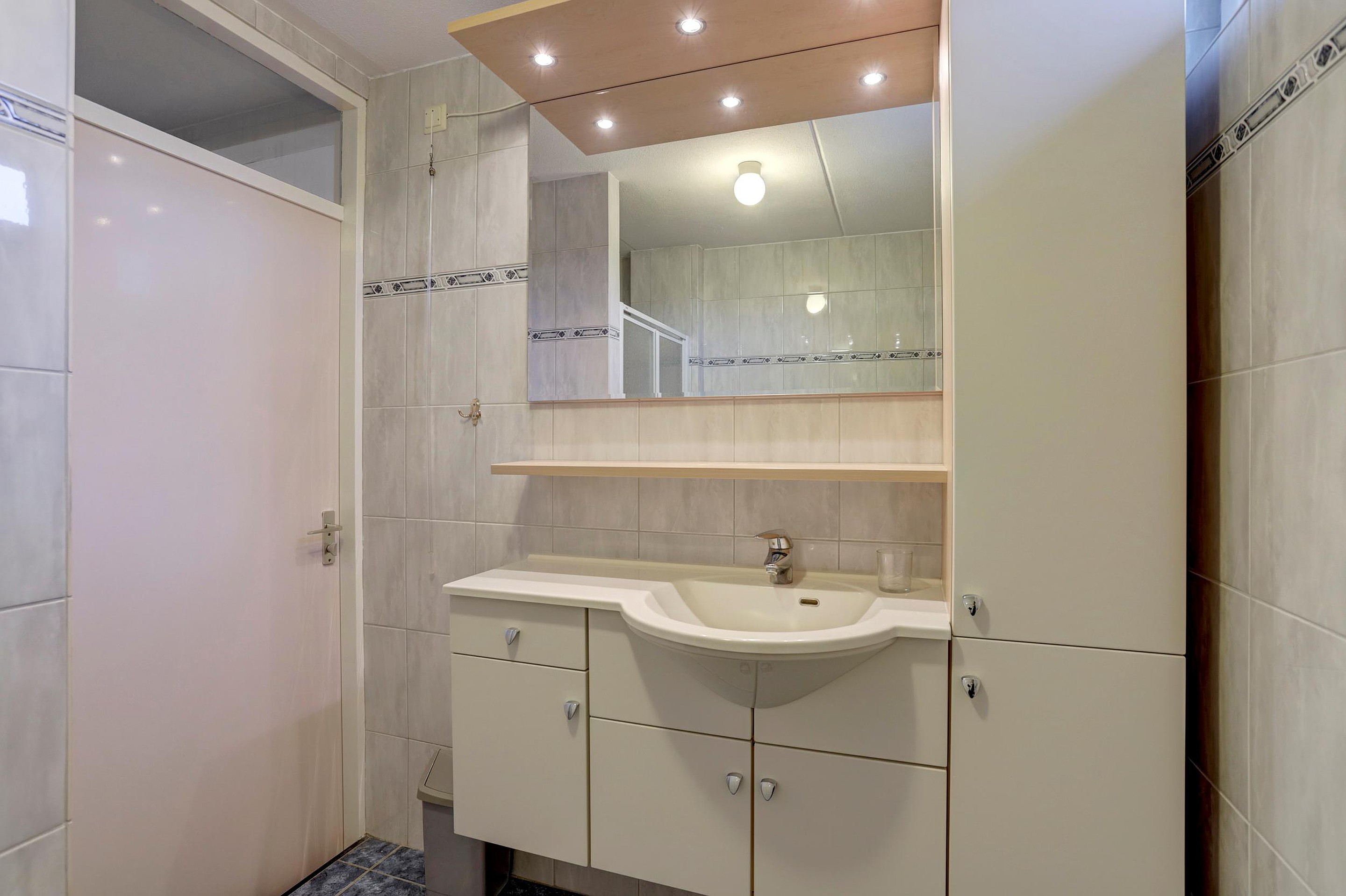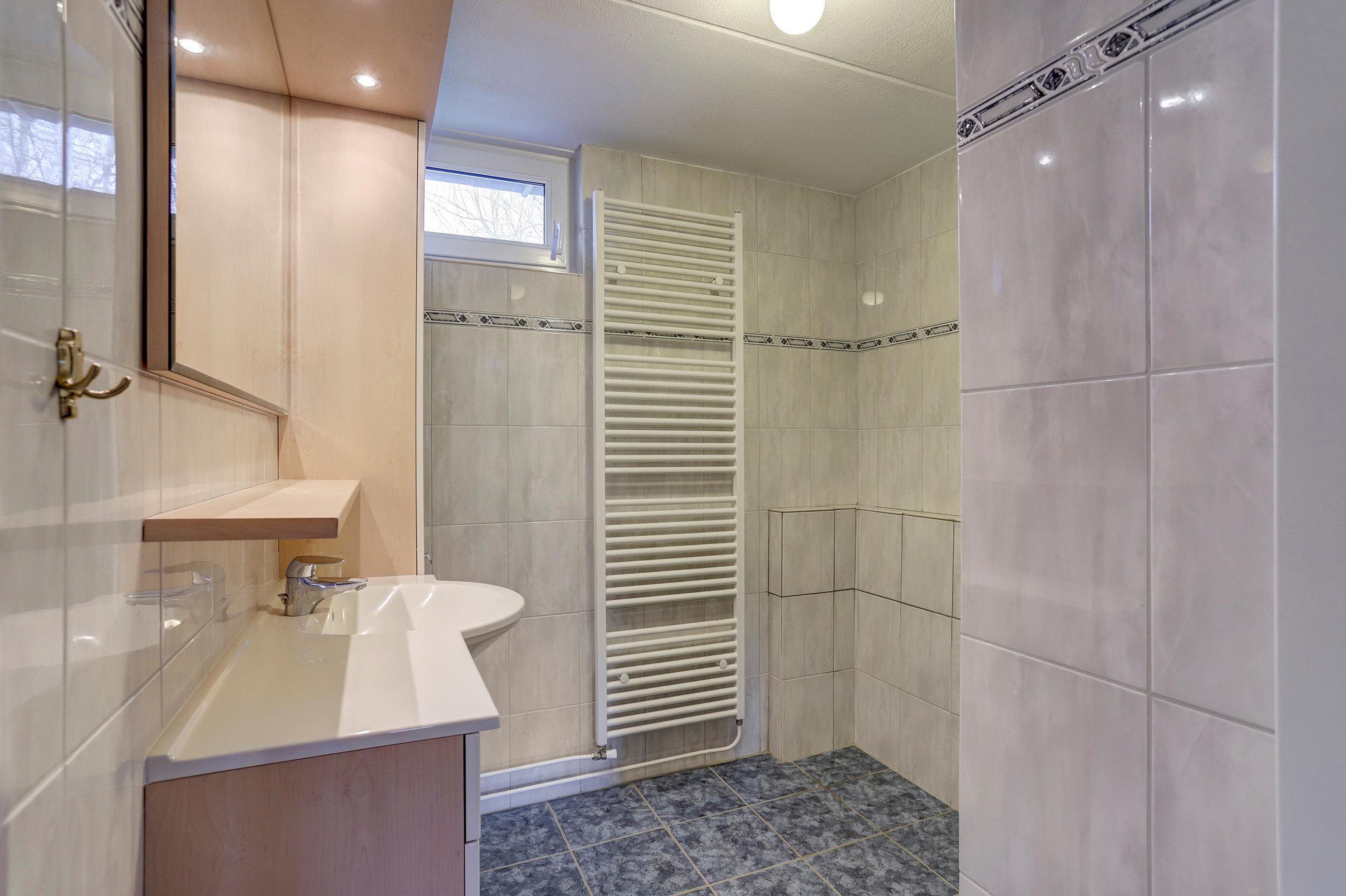 Op de eerste verdieping vind je de overloop en drie slaapkamers, allen voorzien van rolluiken. De 2 grote slaapkamers zijn beide voorzien van praktische vaste kasten. Eventueel kunnen deze ook verwijderd worden om een eigen kast te kunnen plaatsen. De badkamer is uitgerust met een inloopdouche en een wastafelmeubel.