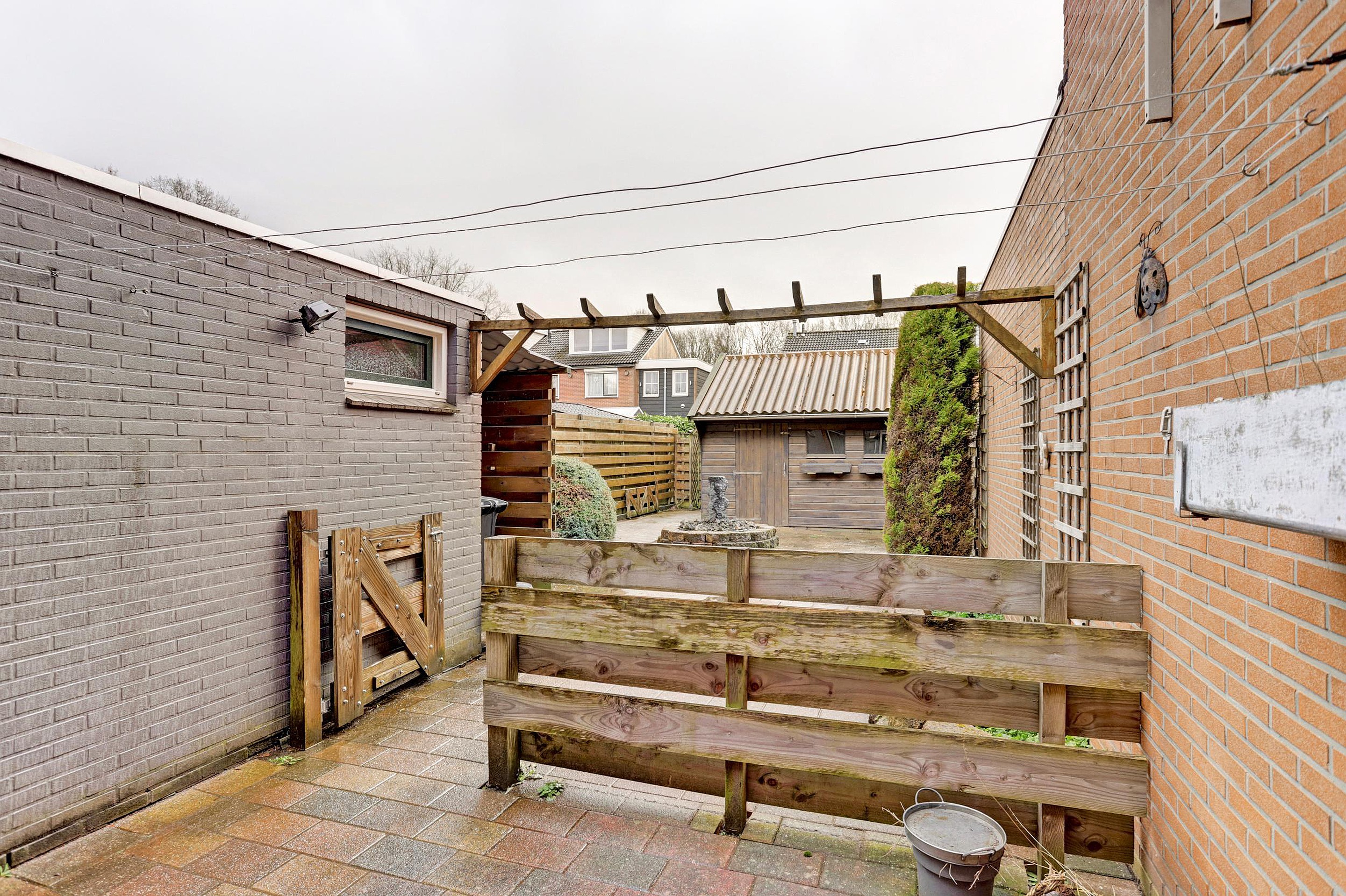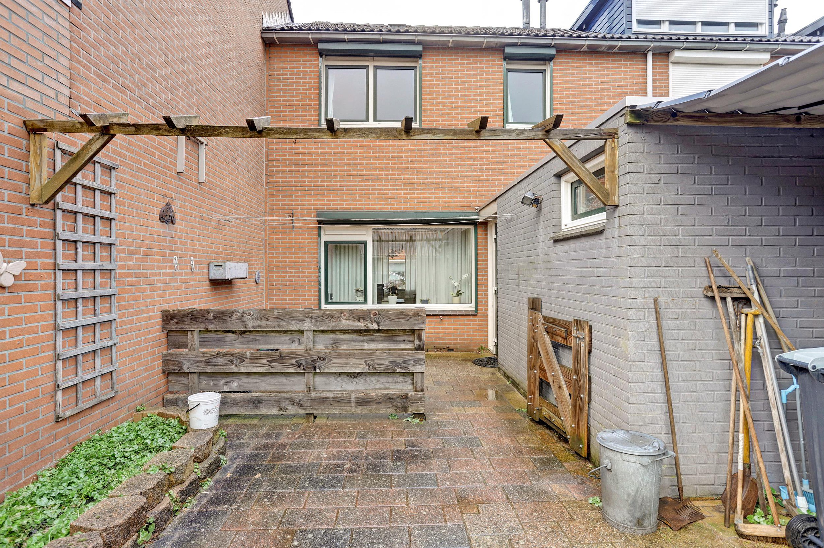 -Achtergelegen voetpad met achterom.