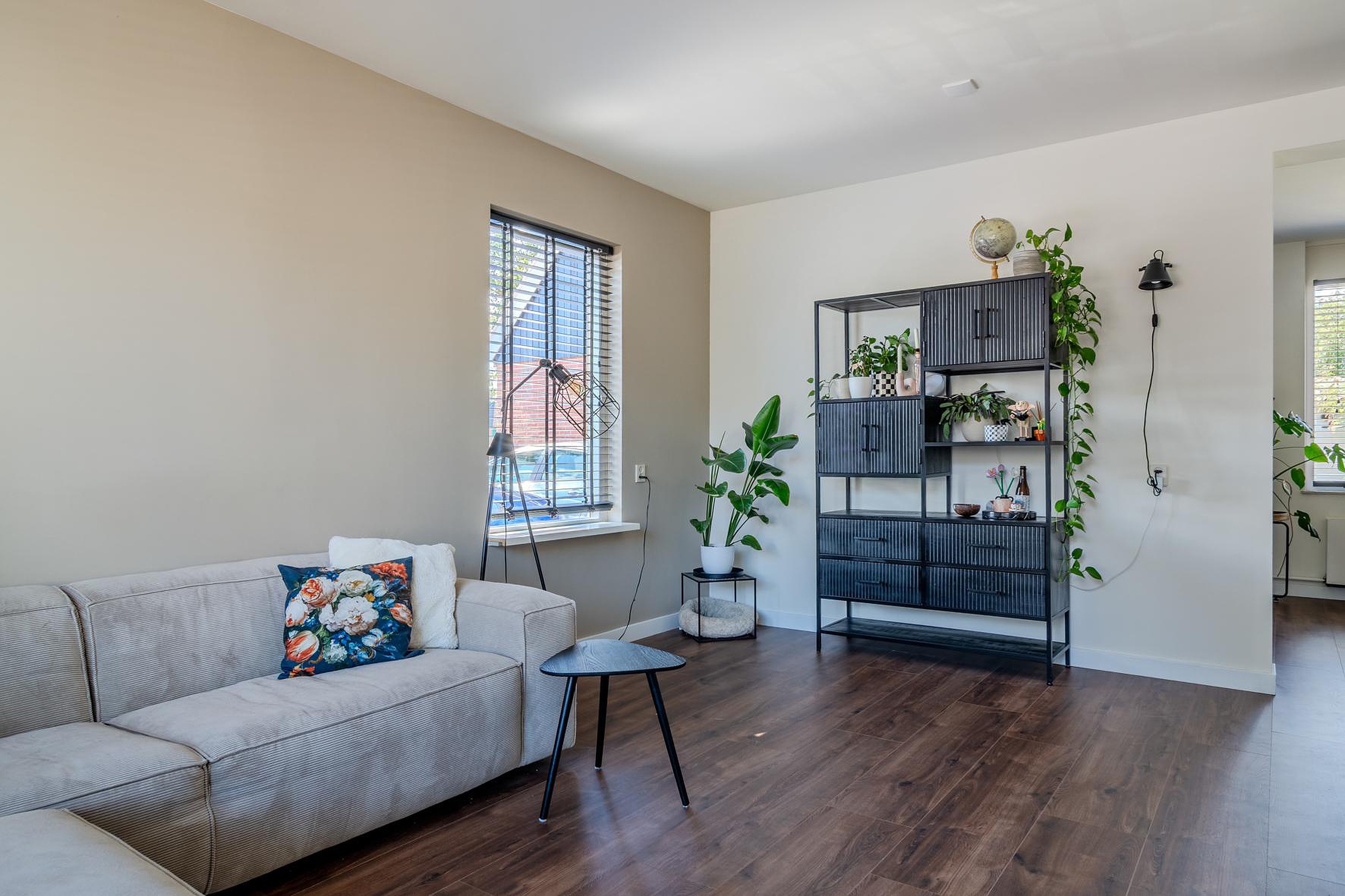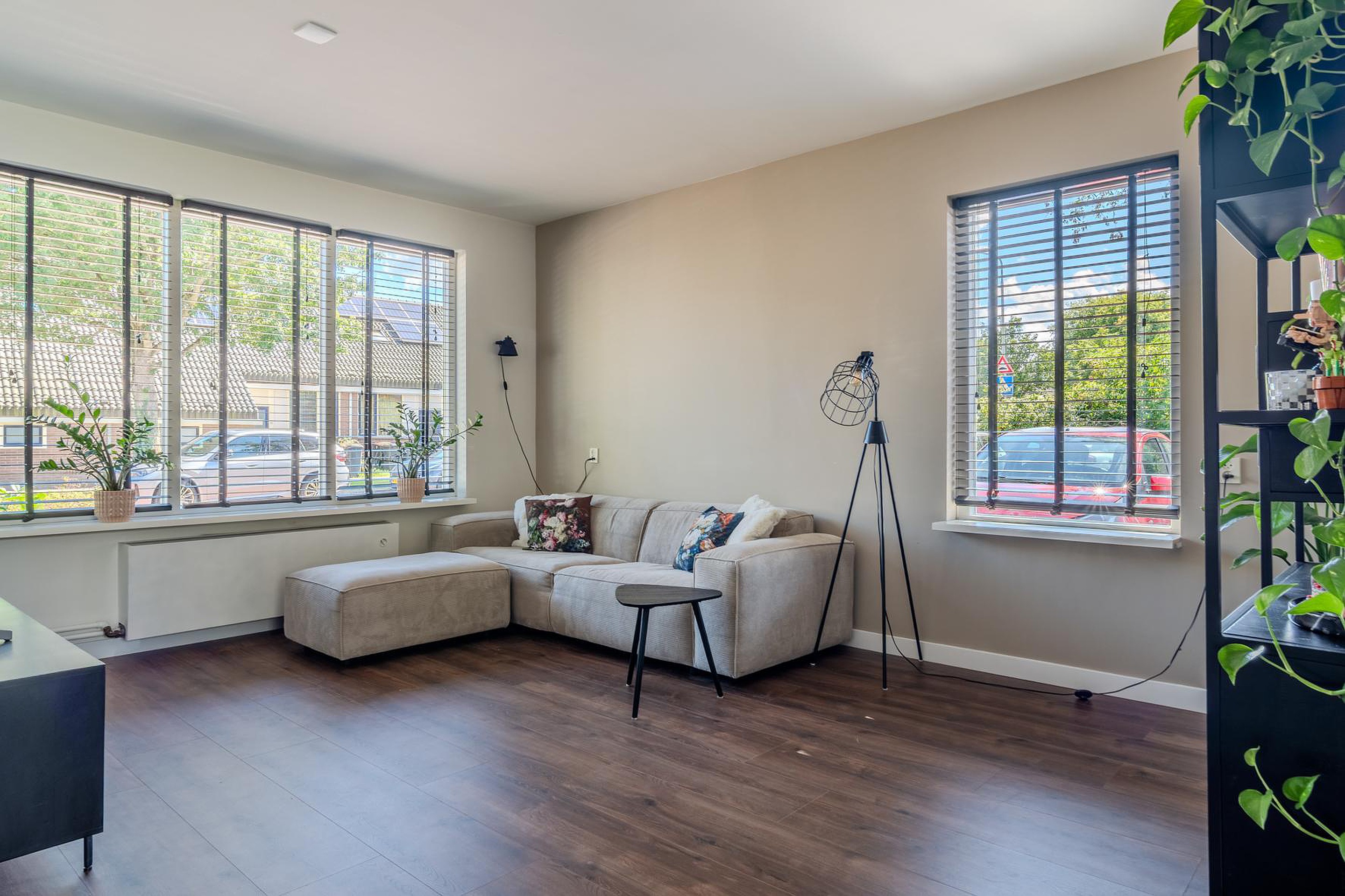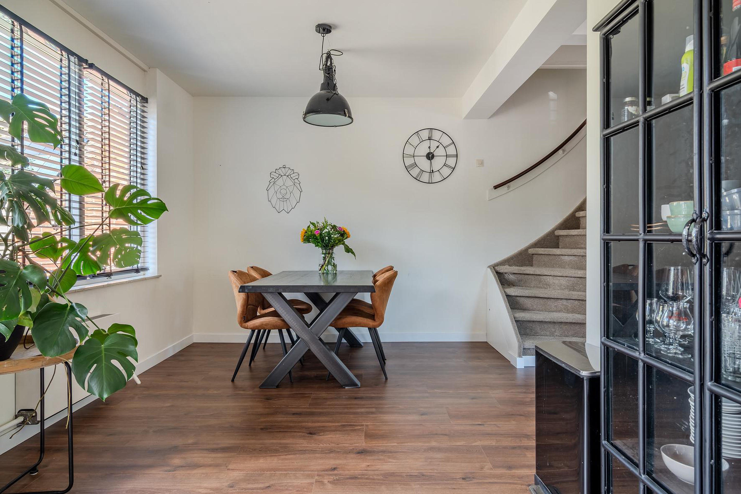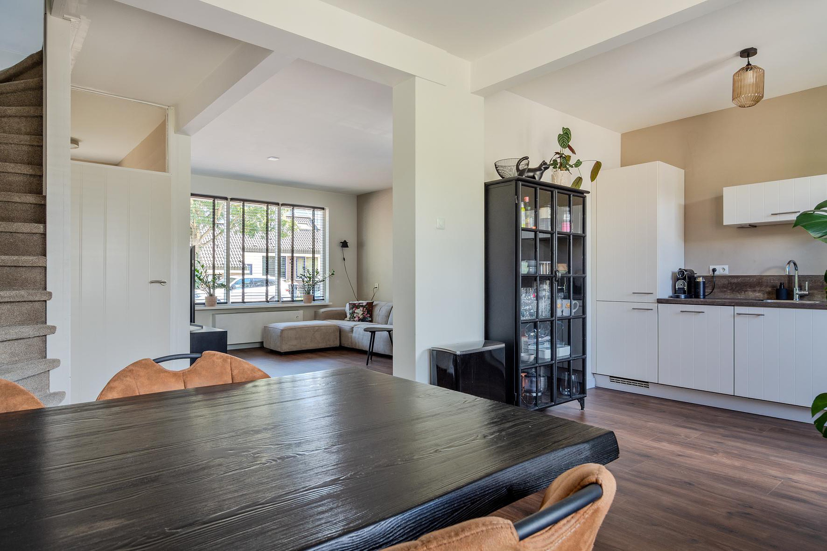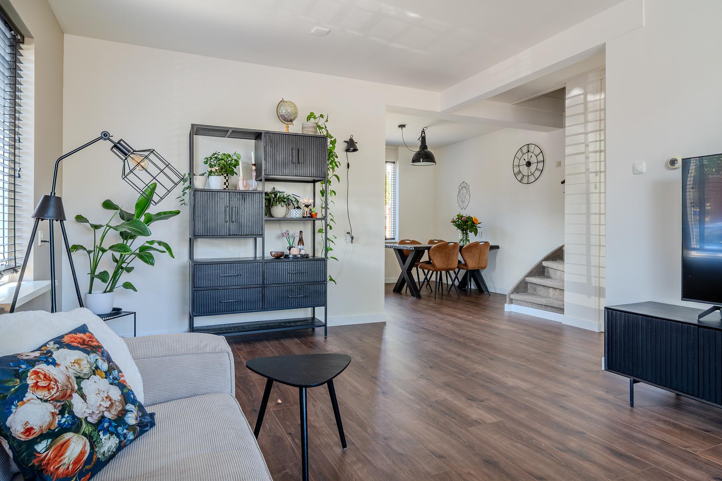 Je komt binnen in de hal met toilet en meterkast. Vanuit hier stap je de sfeervolle woonkamer binnen, die dankzij het grote zijraam heerlijk licht is. De ruimte is praktisch ingedeeld met een gezellige zithoek aan de straatzijde en een eetgedeelte met open keuken aan de tuinzijde.