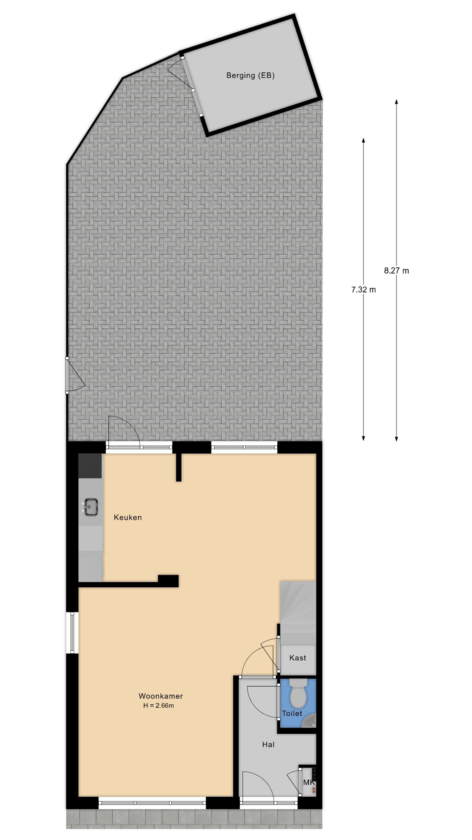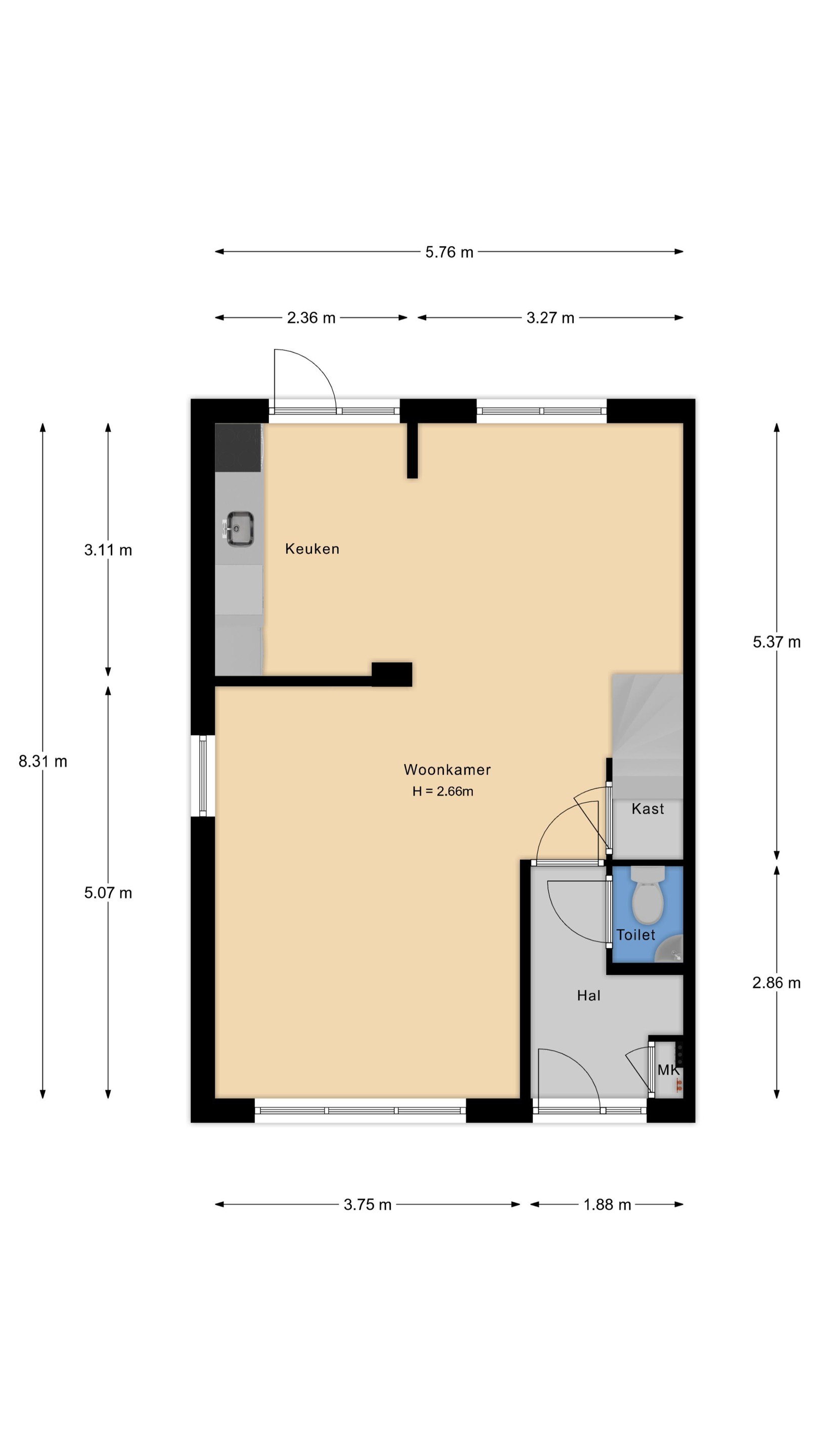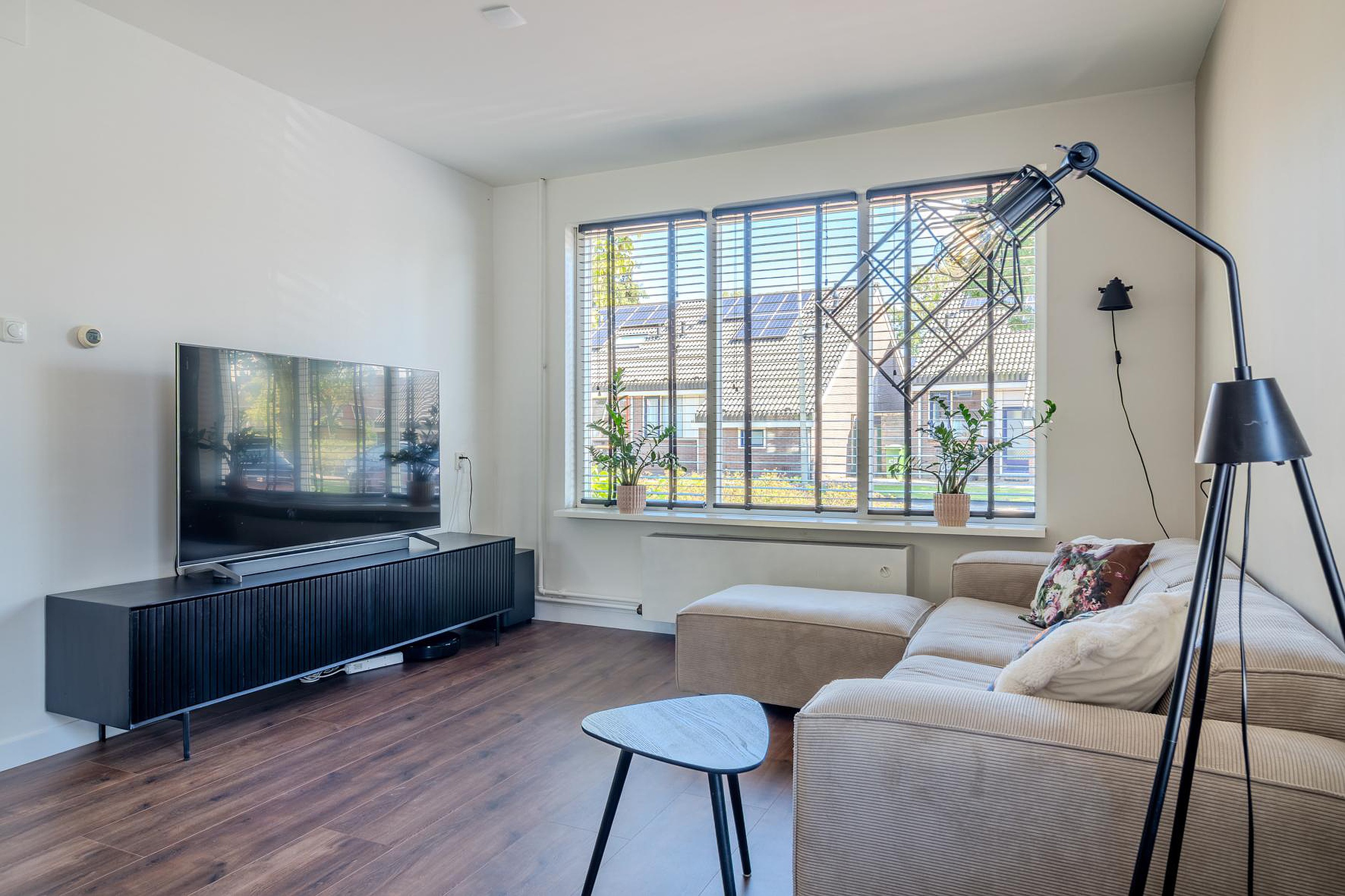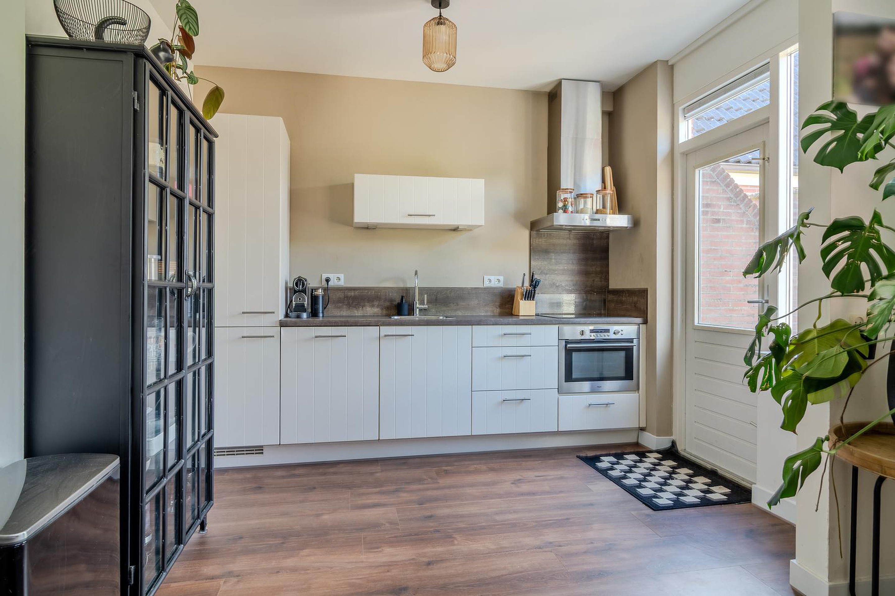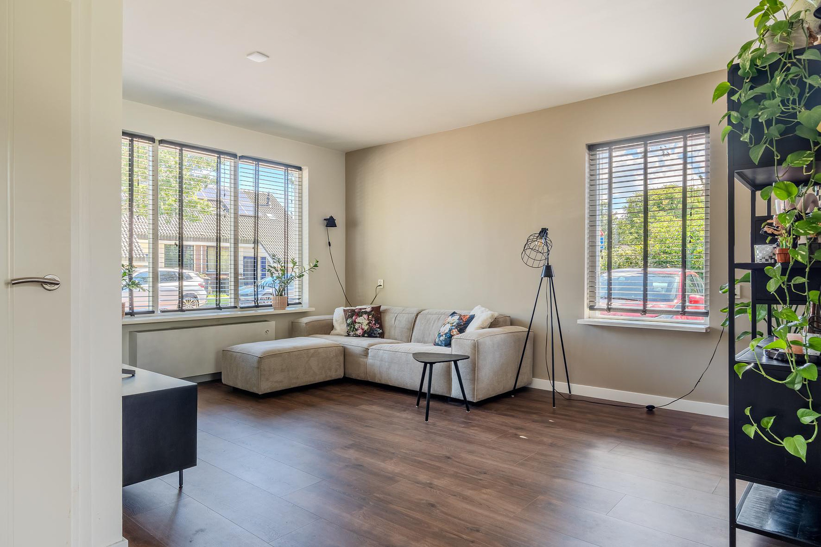 Je komt binnen in de hal met toilet en meterkast. Vanuit hier stap je de sfeervolle woonkamer binnen, die dankzij het grote zijraam heerlijk licht is. De ruimte is praktisch ingedeeld met een gezellige zithoek aan de straatzijde en een eetgedeelte met open keuken aan de tuinzijde.