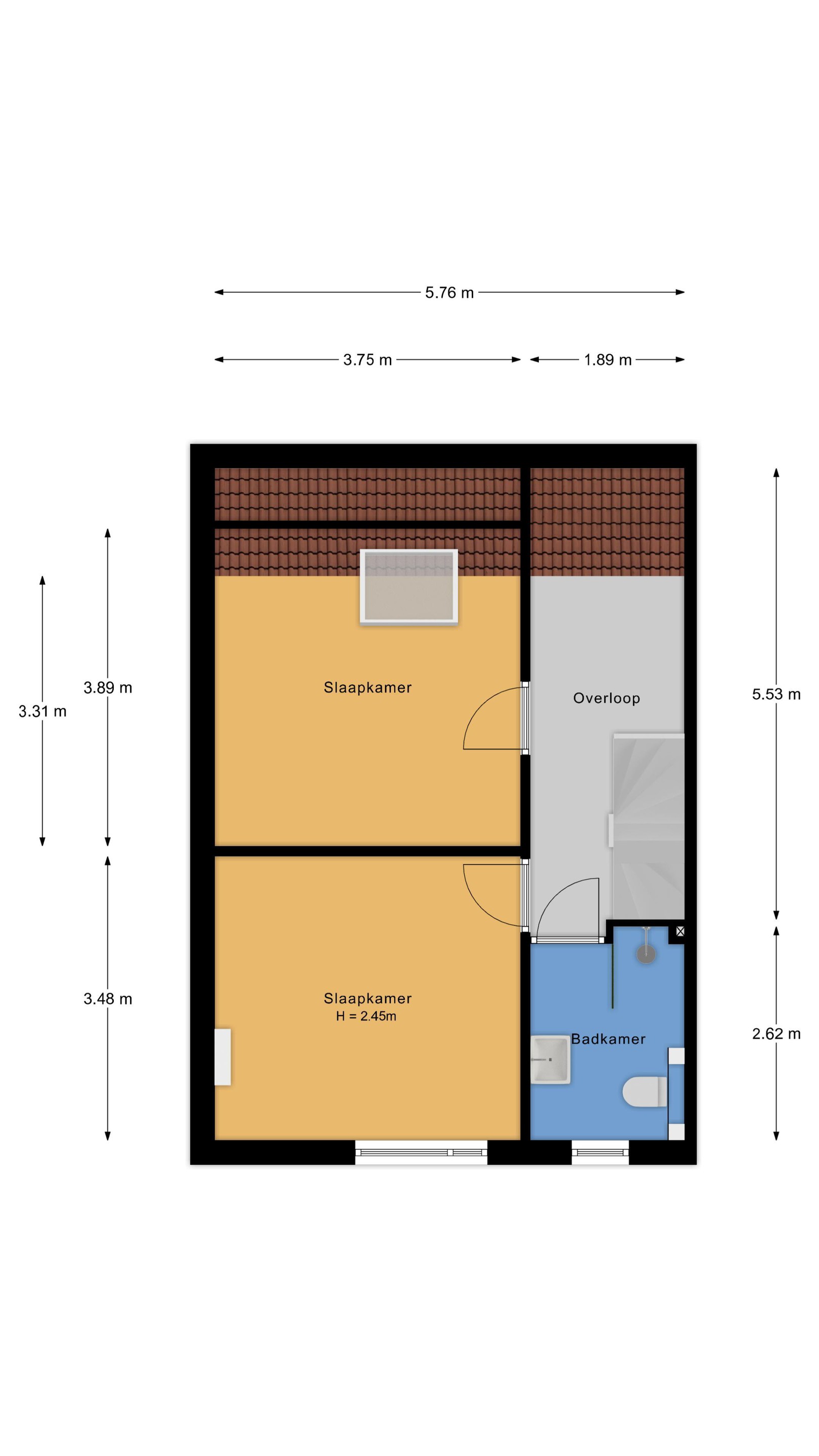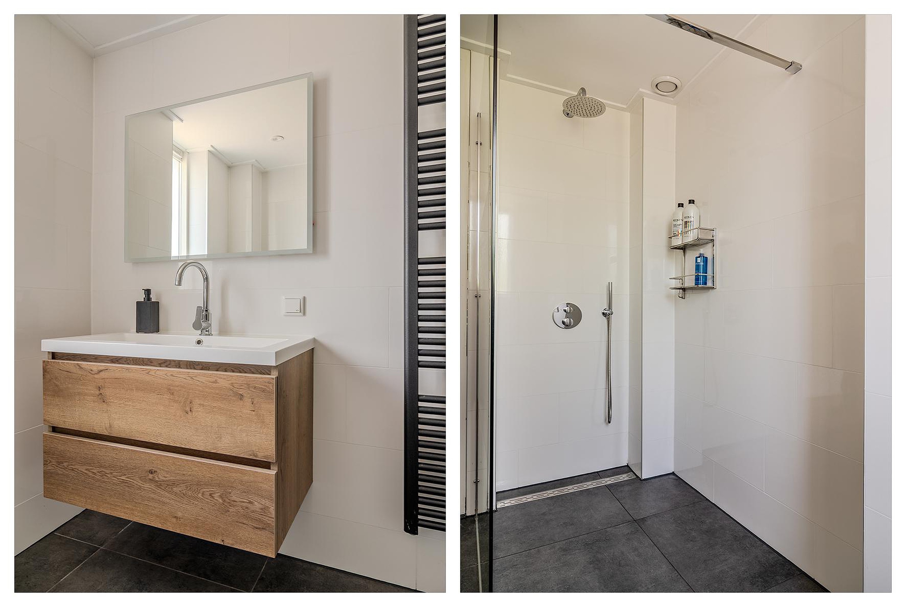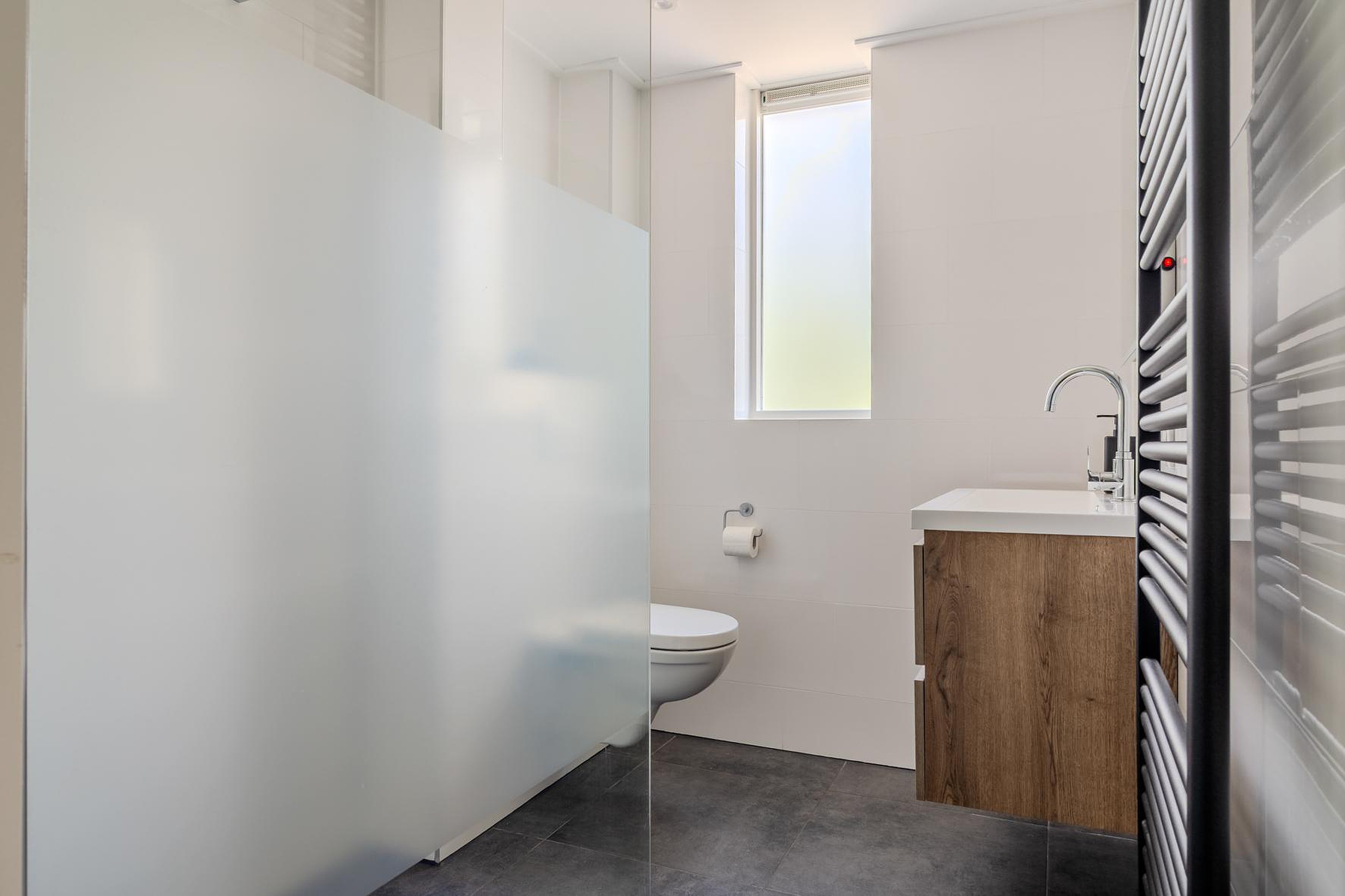 Op de eerste verdieping tref je aan een ruime overloop, waar je met gemak nog een werkruimte zou kunnen realiseren en een tweetal goed bemeten slaapkamers. De moderne badkamer is ingericht met een 2de toilet, een inloopdouche, een wastafelmeubel en handdoekradiator.