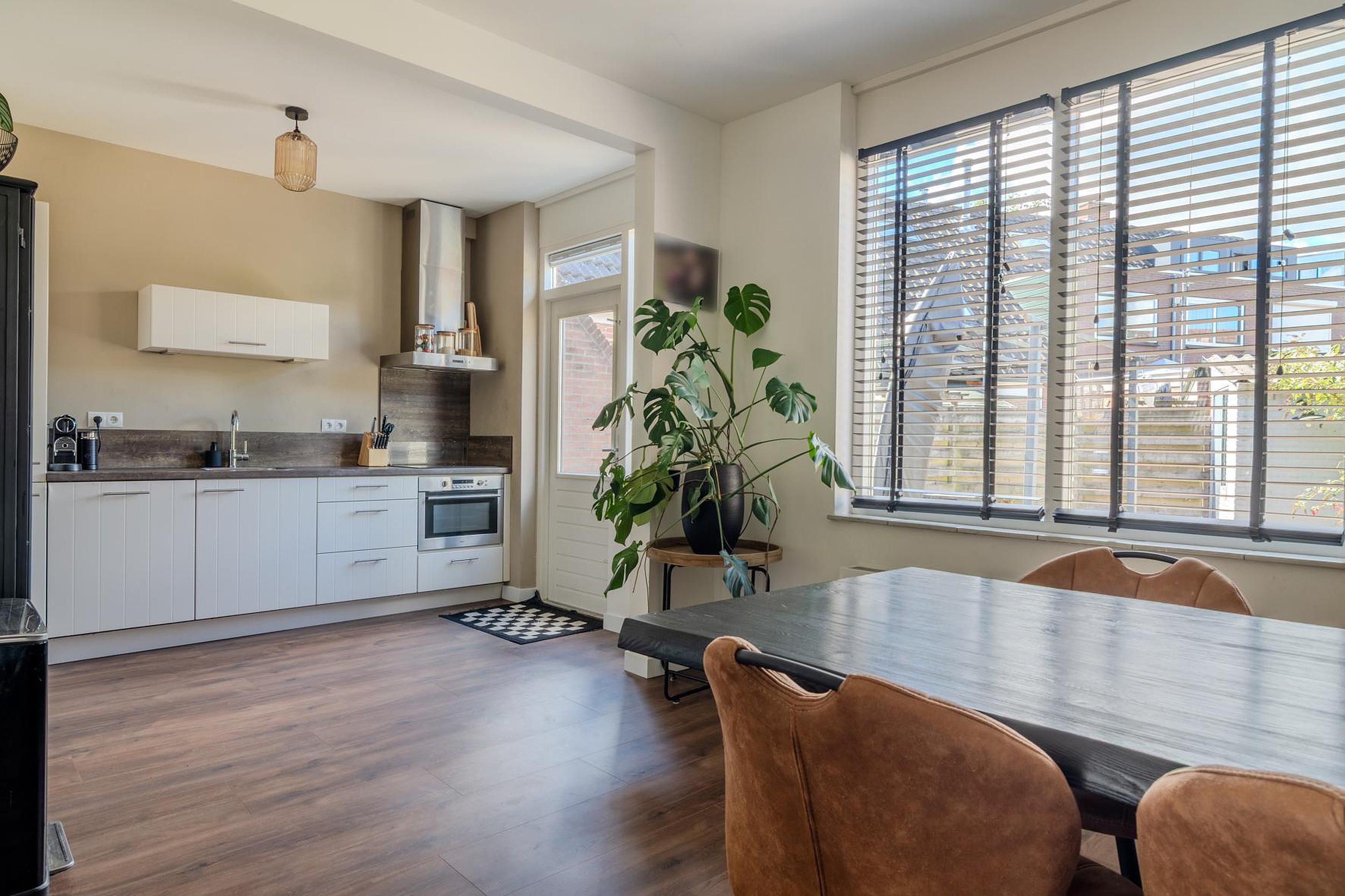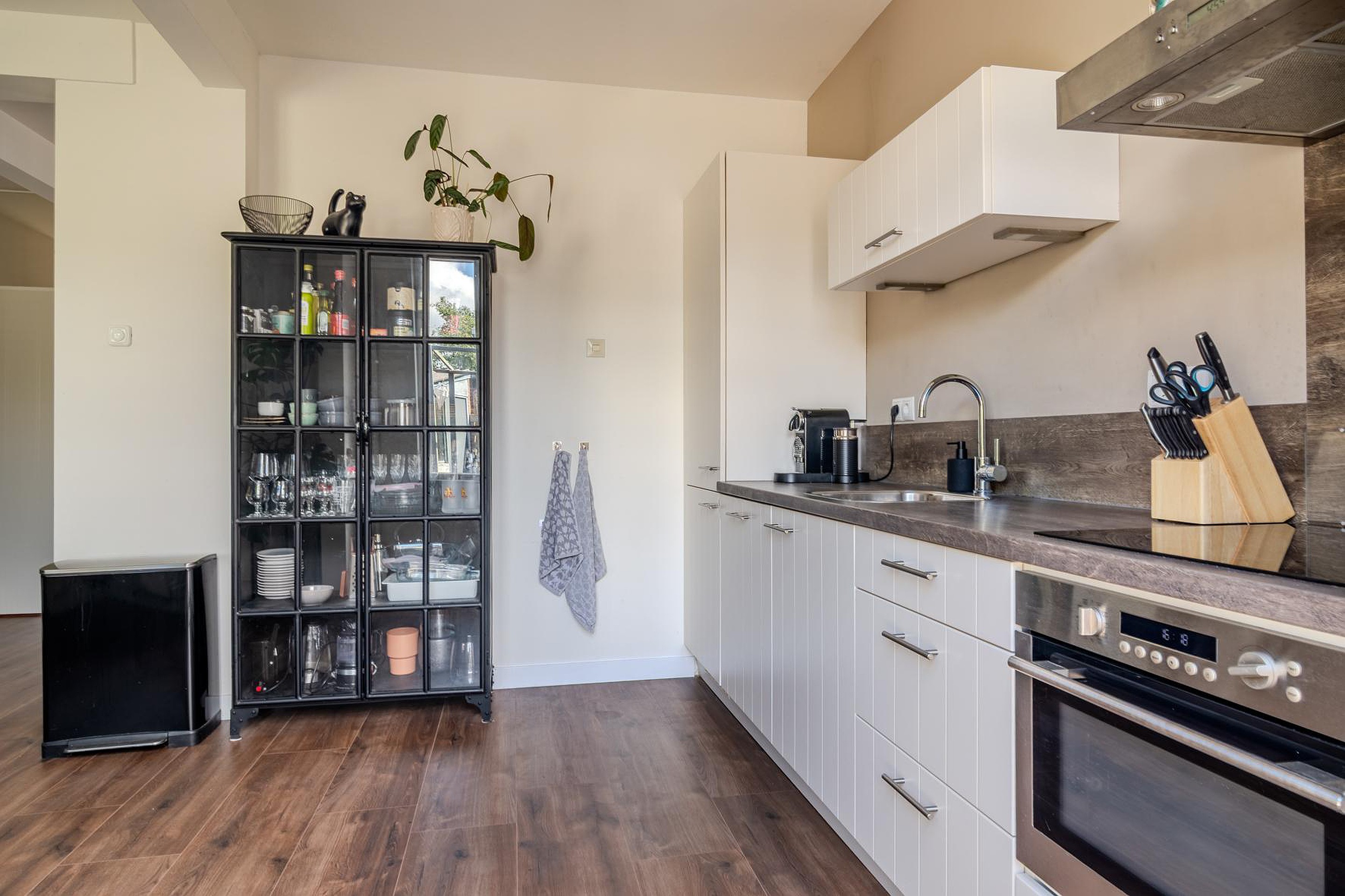 De keuken in een rechte opstelling is voorzien van diverse inbouwapparatuur zoals een inductie kookplaat, afzuigkap, vaatwasser, koelkast en een combi oven-magnetron. Er is bij het eetgedeelte voldoende ruimte voor de eettafel.