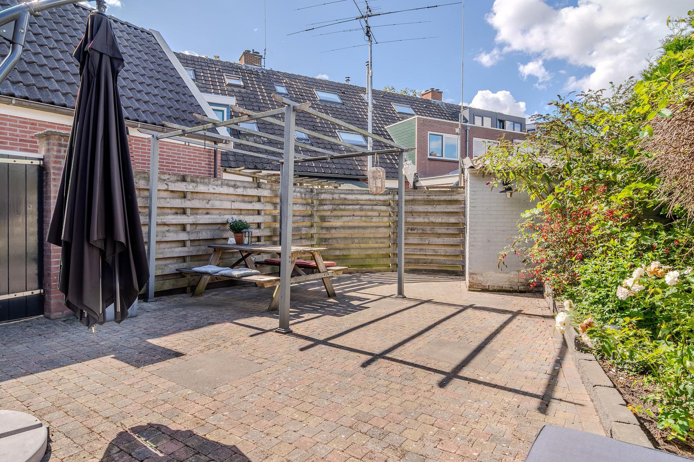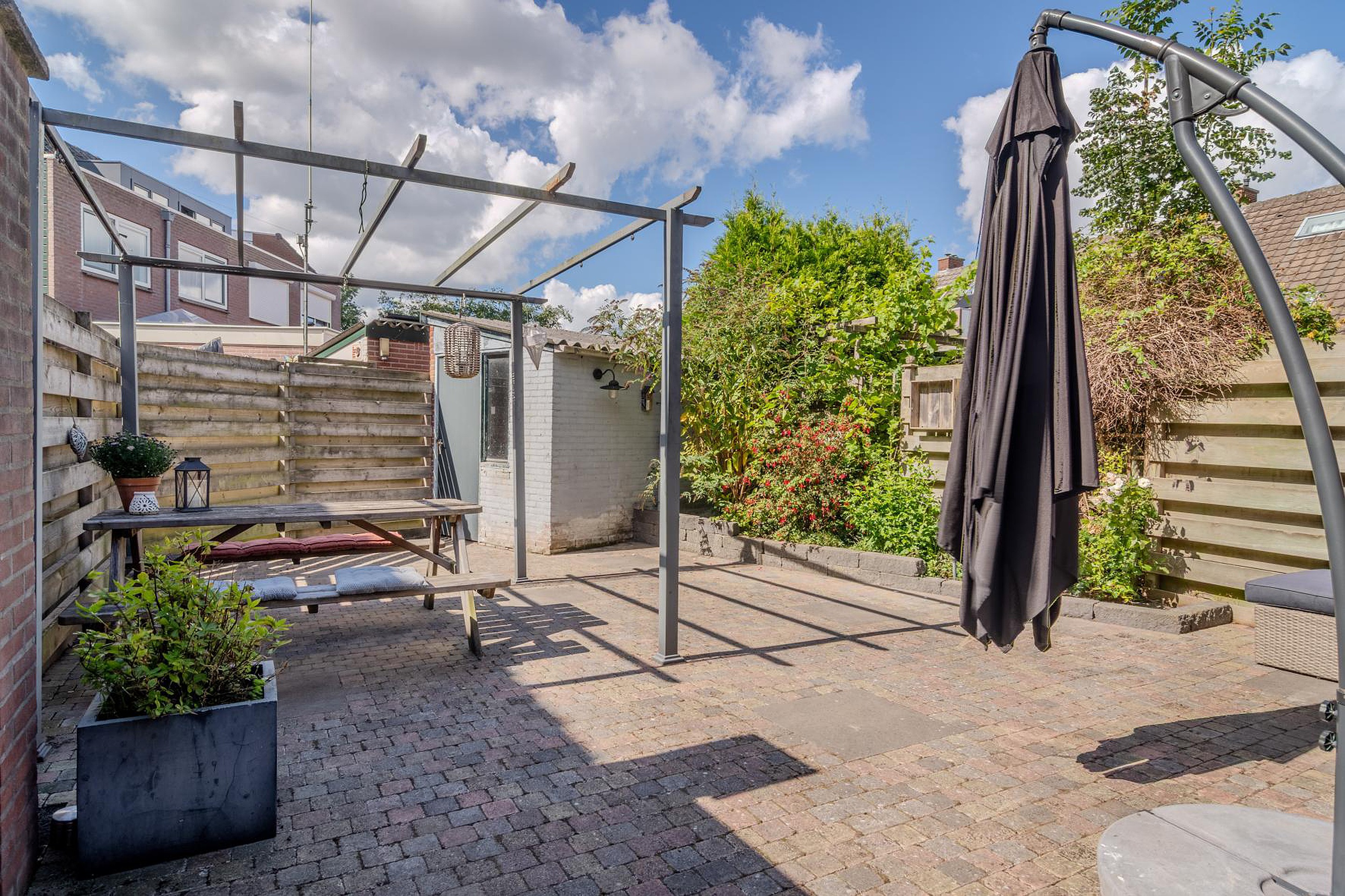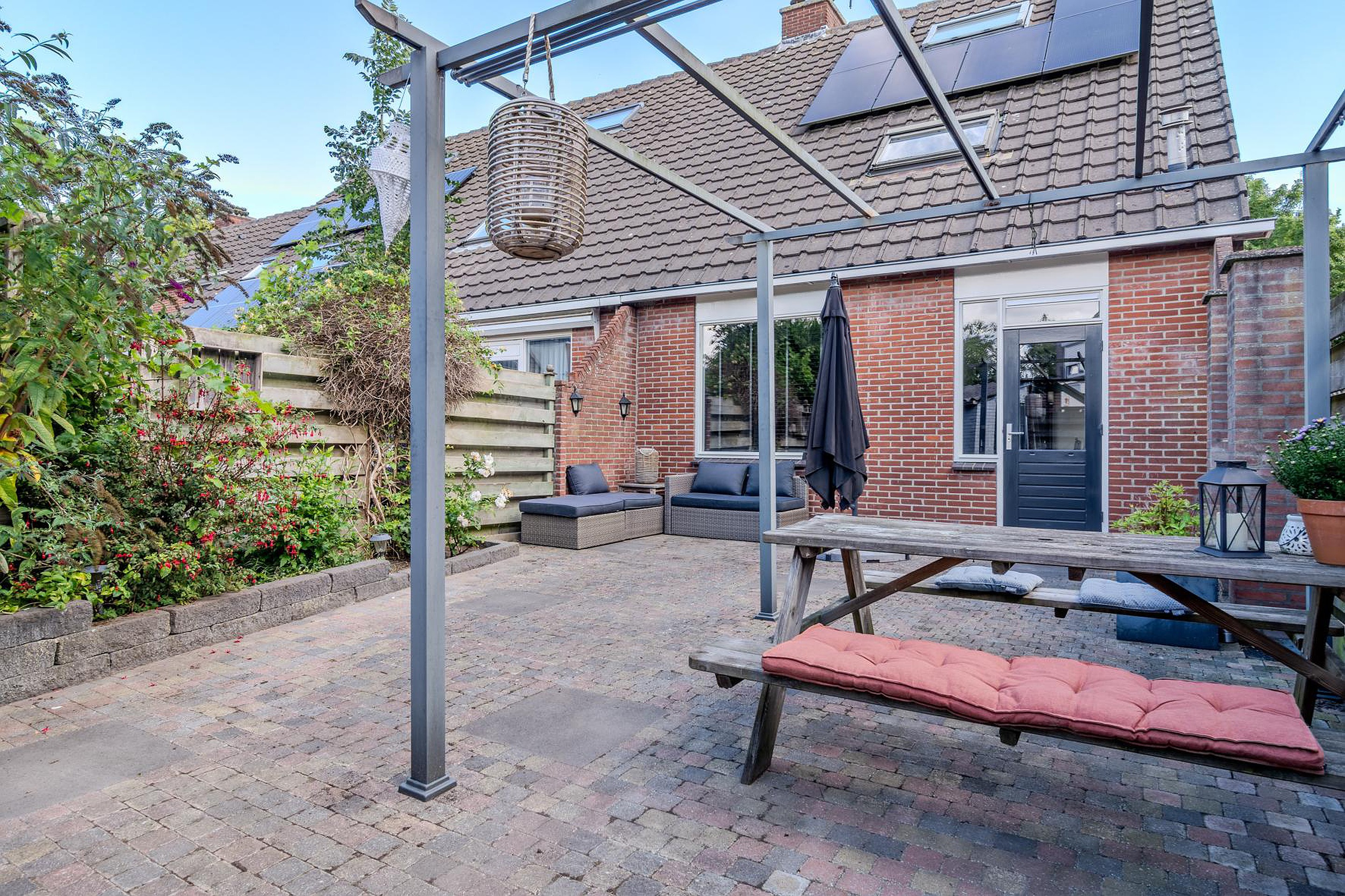 De zonnige achtertuin ligt op het westen, waardoor je al vanaf de middag tot in de avond van de zon kunt genieten. Via de handige zijpoort heb je direct toegang tot de tuin — perfect voor de fiets of als je snel naar de berging achterin de tuin wilt.