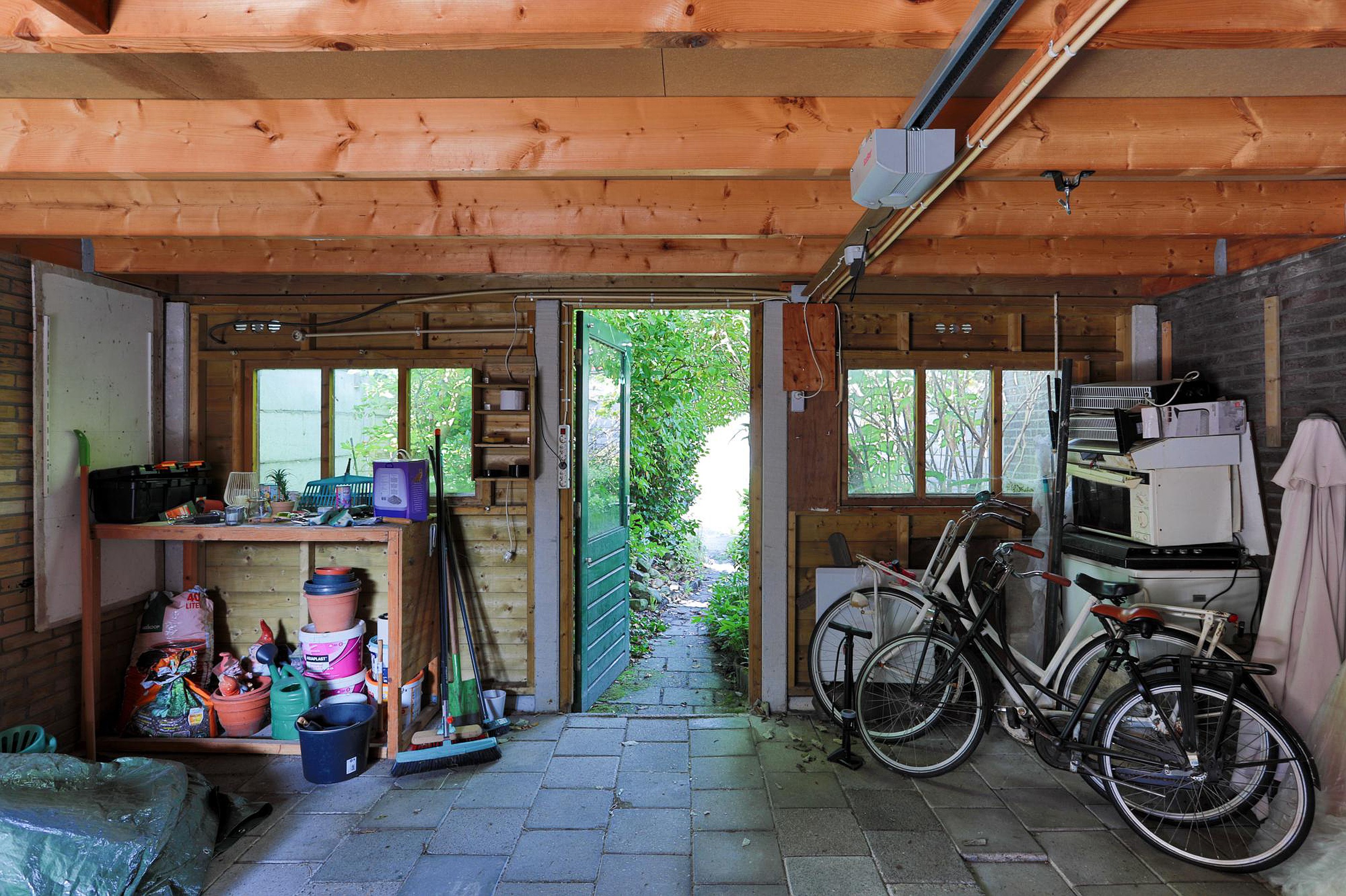 Vrijstaande houten garage, bereikbaar via de tuin alsmede een achter het perceel gelegen straat