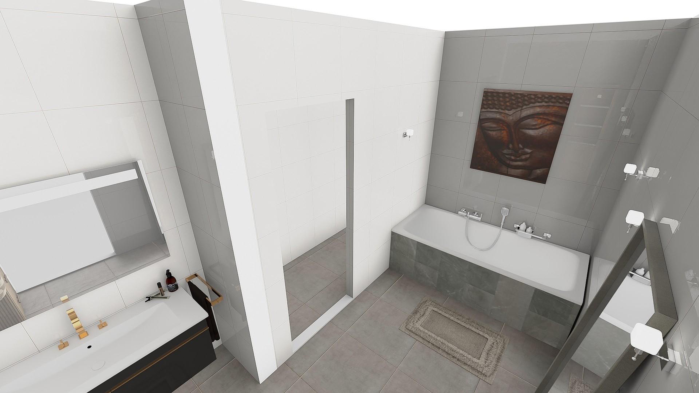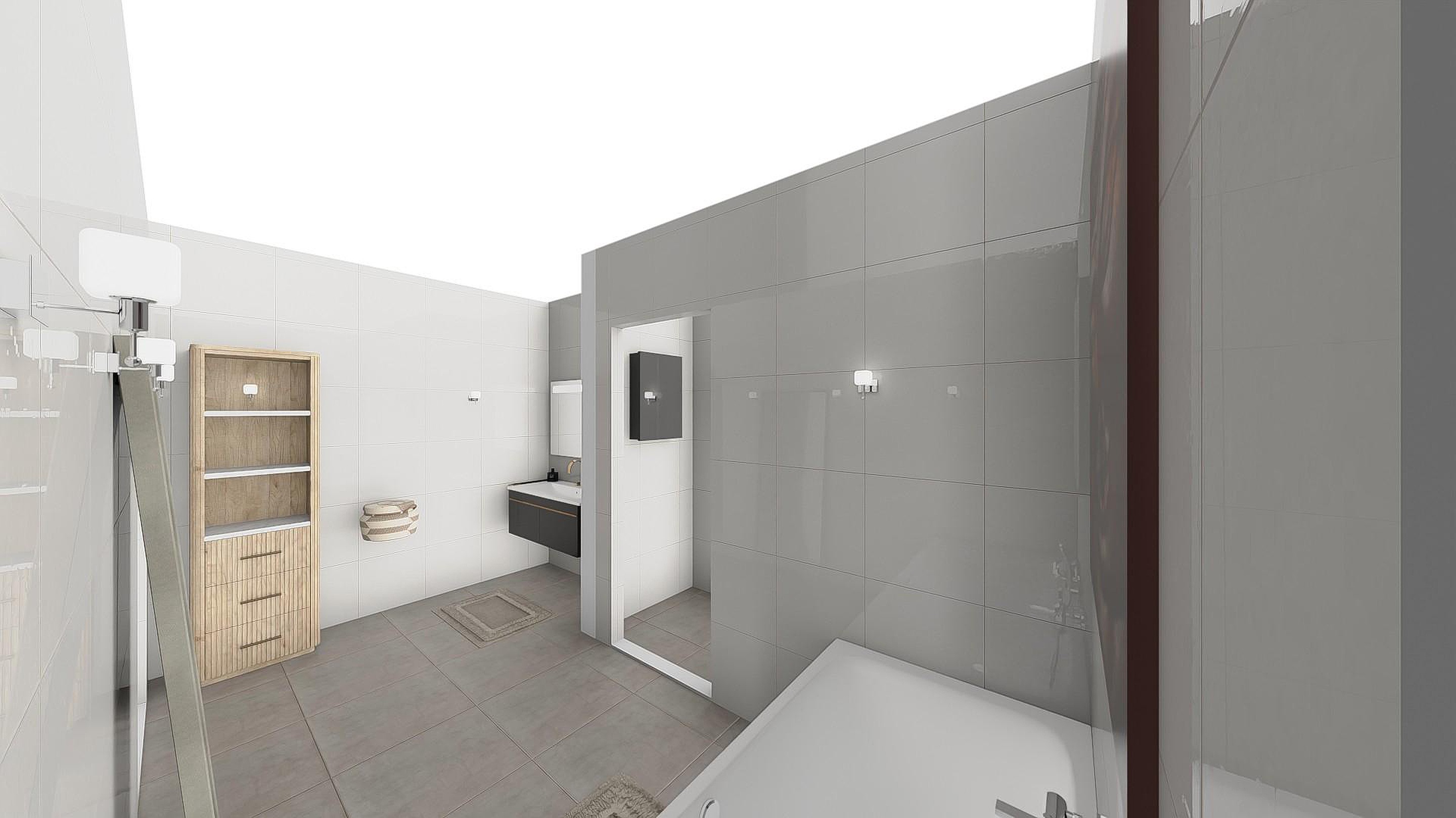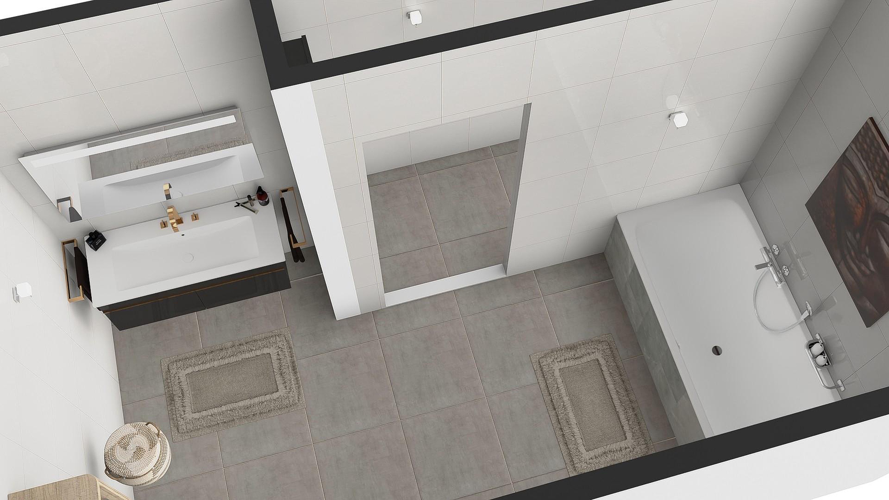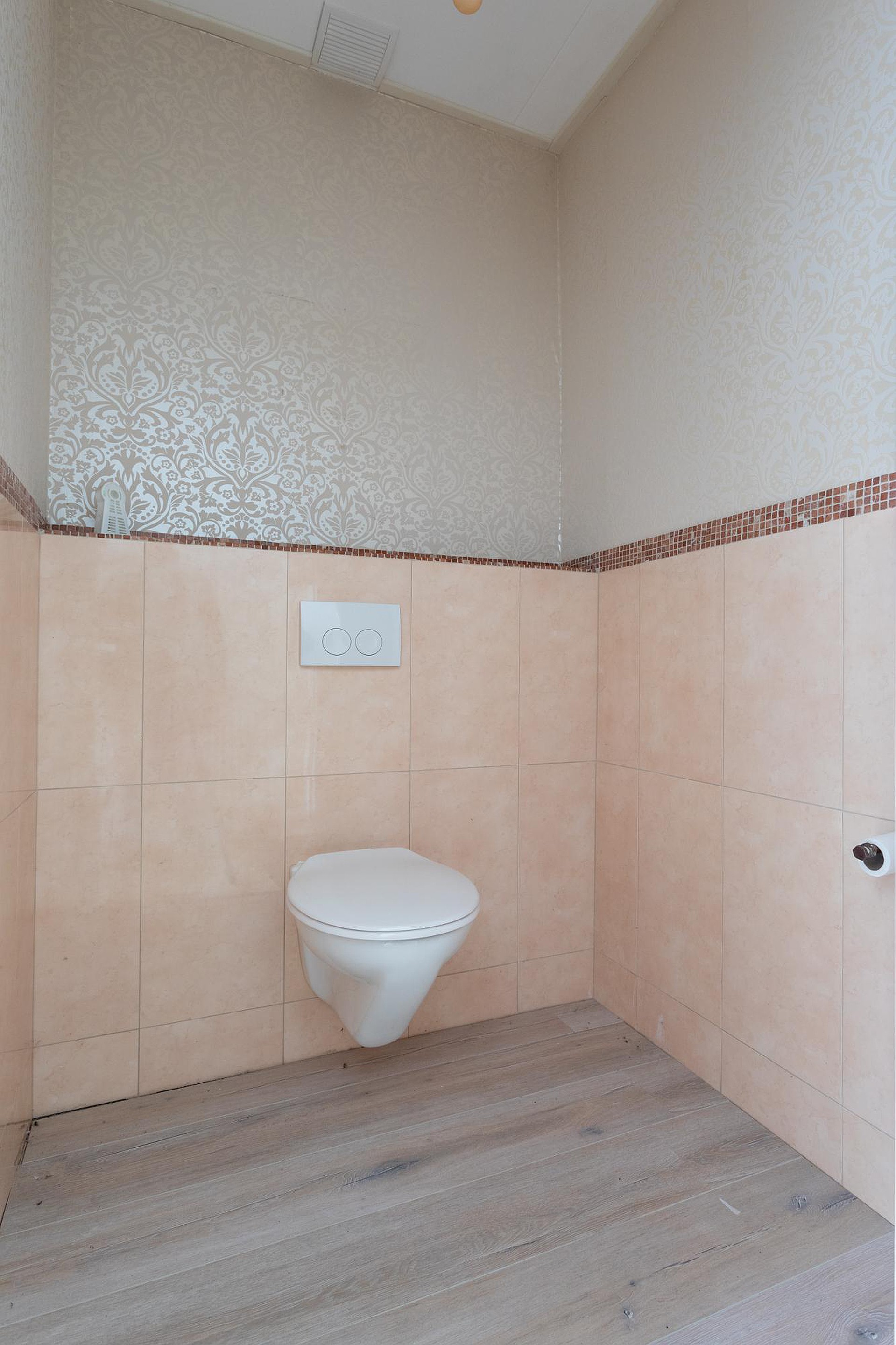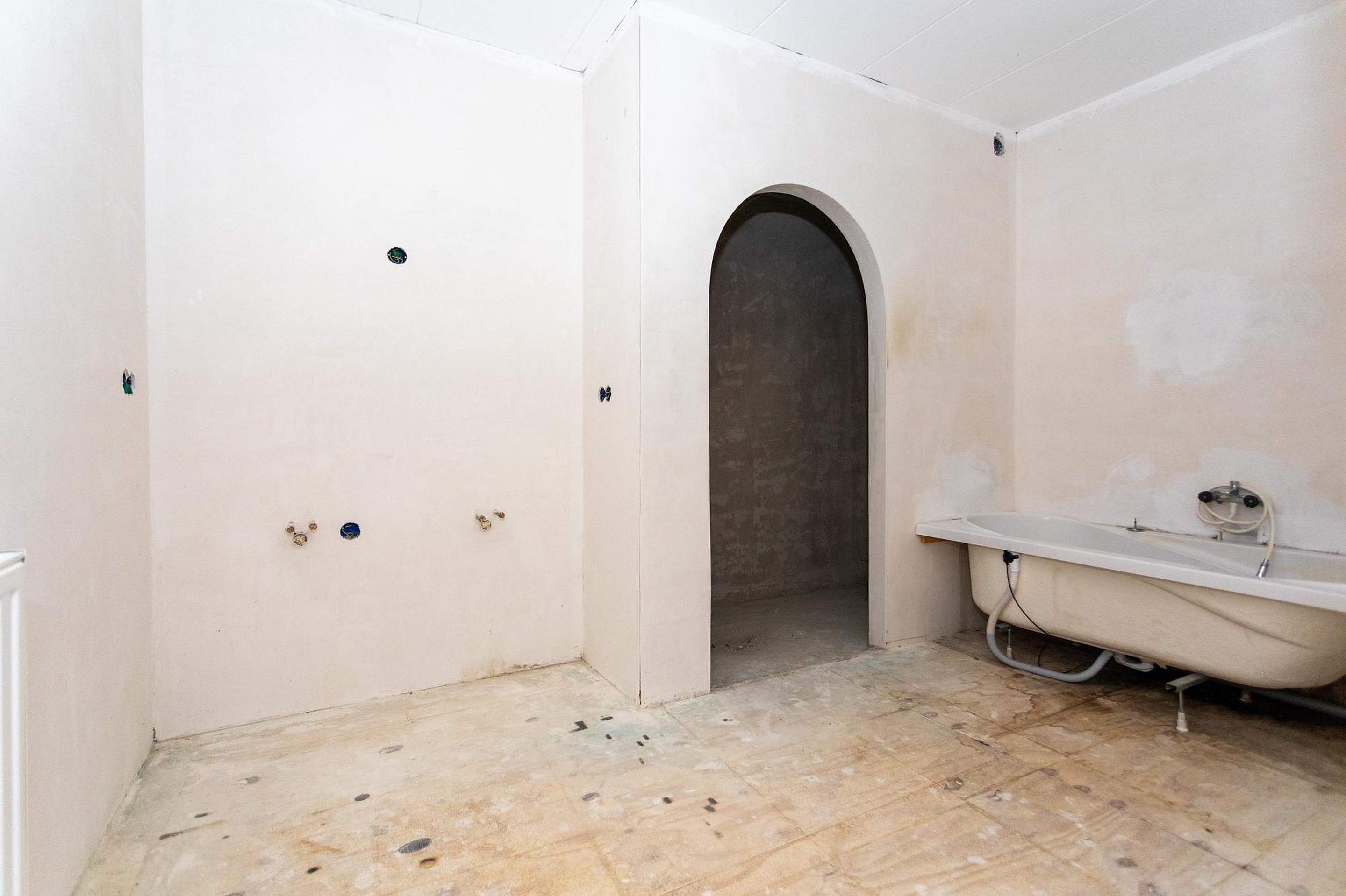 De badkamer met ligbad, douchehoek en mogelijkheid dubbele wastafel bevindt zich eveneens op de begane grond en is technisch helemaal voorbereid en geheel naar eigen smaak in te richten.