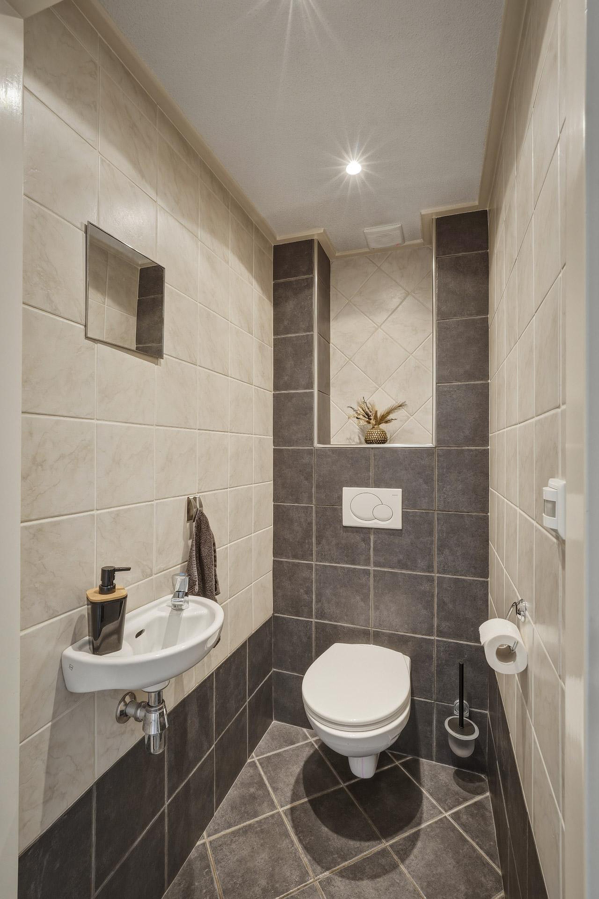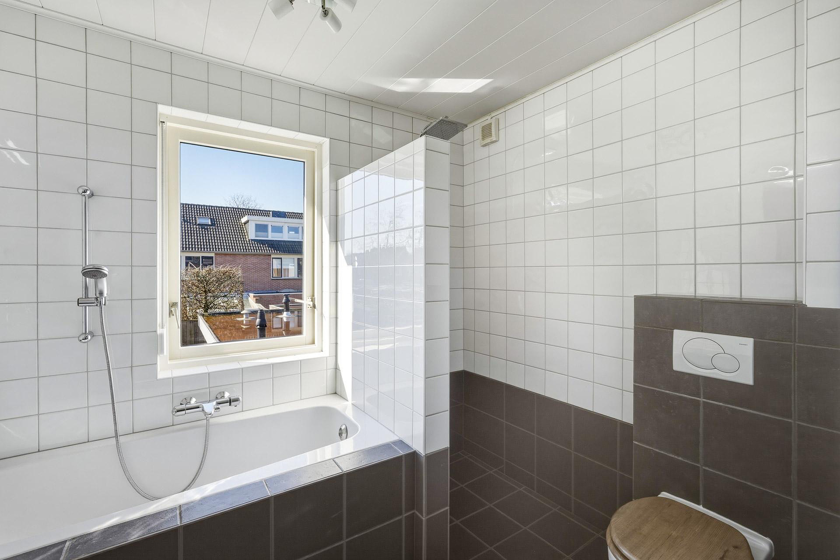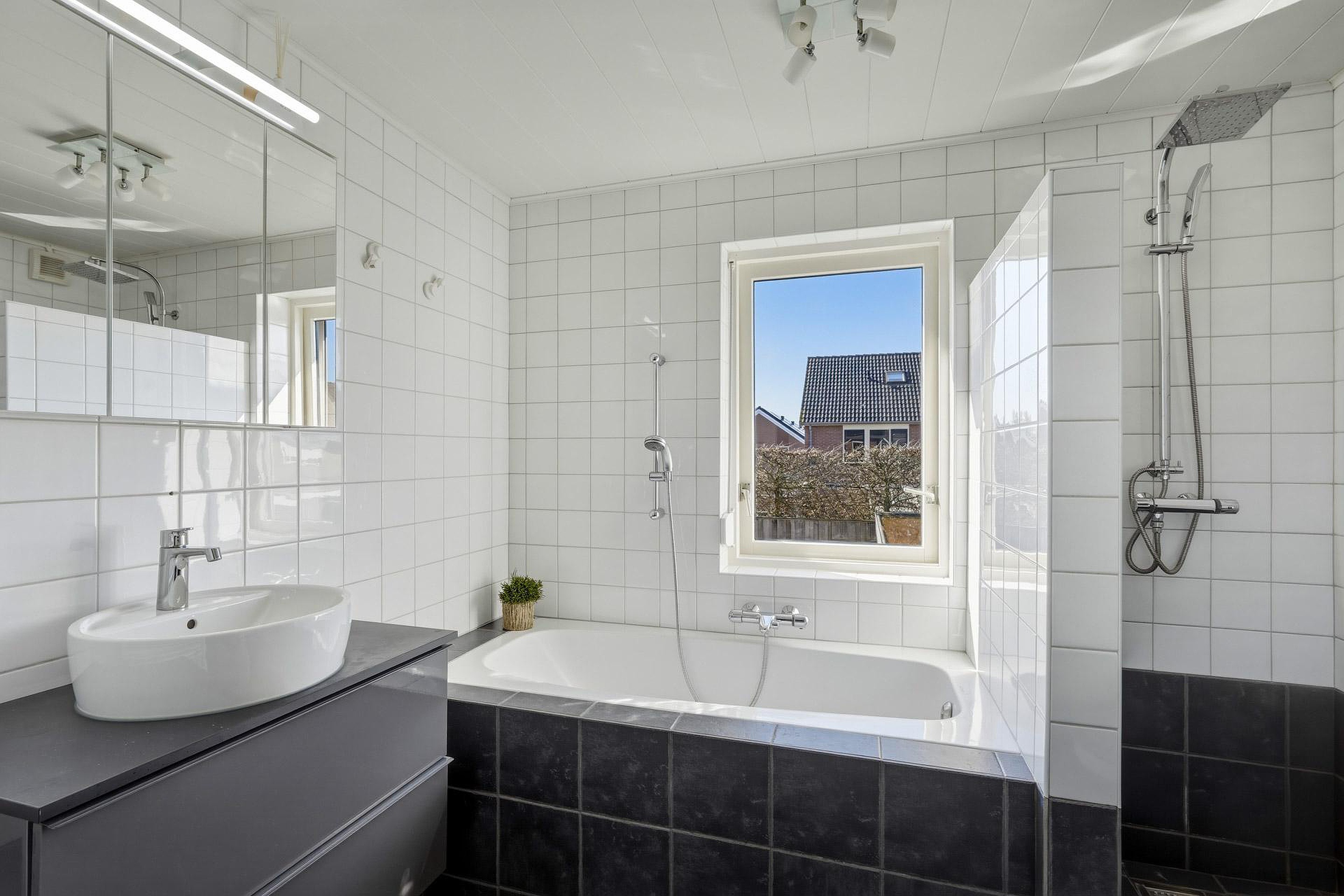 – Nette badkamer voorzien van ligbad, inloopdouche, wastafelmeubel en toilet;