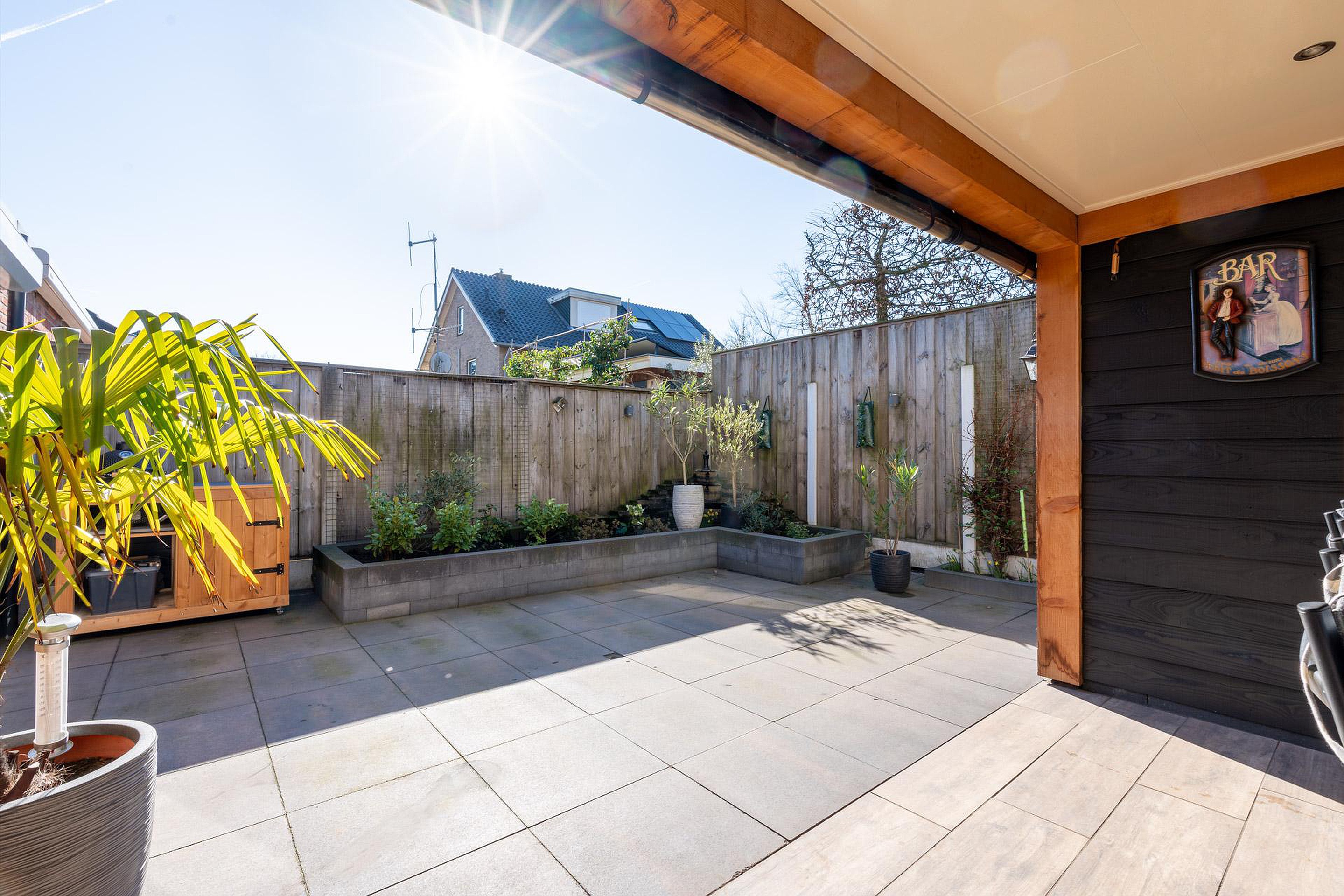 De achtertuin is verzorgd aangelegd en biedt veel privacy. Door de gunstige ligging kun je hier optimaal genieten van de zon. Of je nu wilt ontspannen, tuinieren of gezellig buiten wilt zitten met familie en vrienden, deze tuin biedt daar alle ruimte voor.