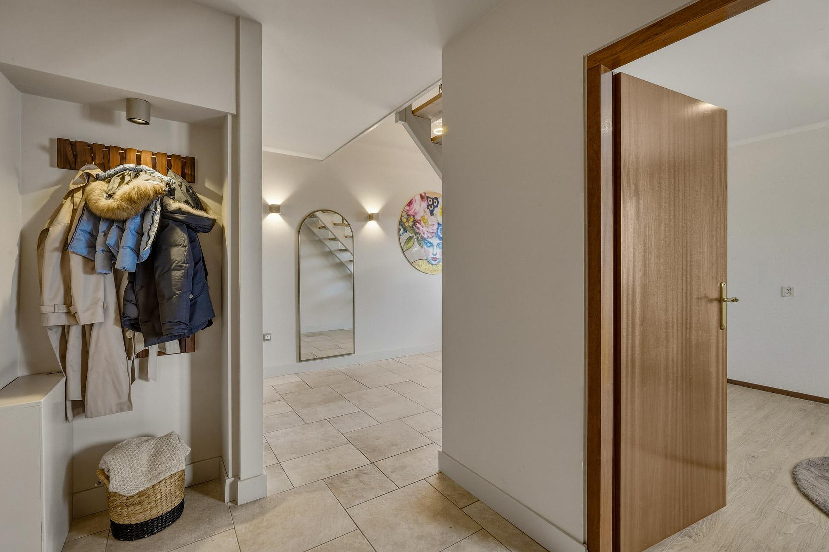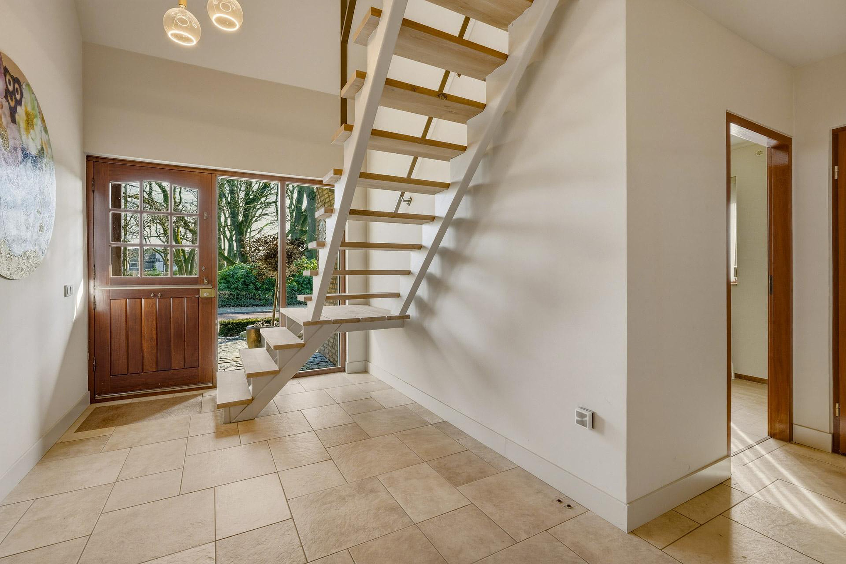 Entree in de royale hal met vide, meterkast, toiletruimte en trapopgang naar de eerste verdieping. Vanuit de hal is er toegang tot de keuken, de woonkamer en de overige vertrekken.