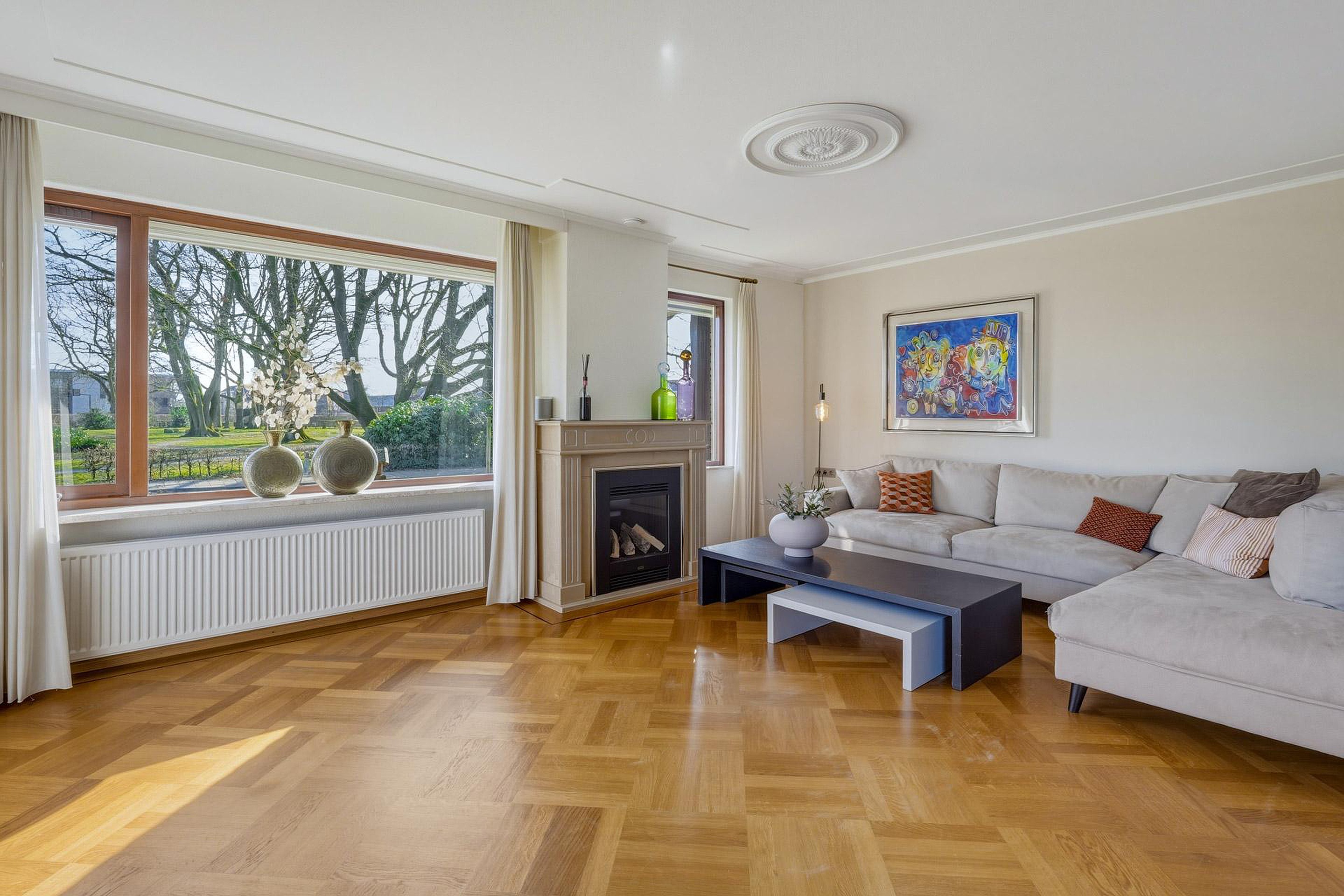 – Ruime, straatgerichte woonkamer met sfeervolle houtkachel;