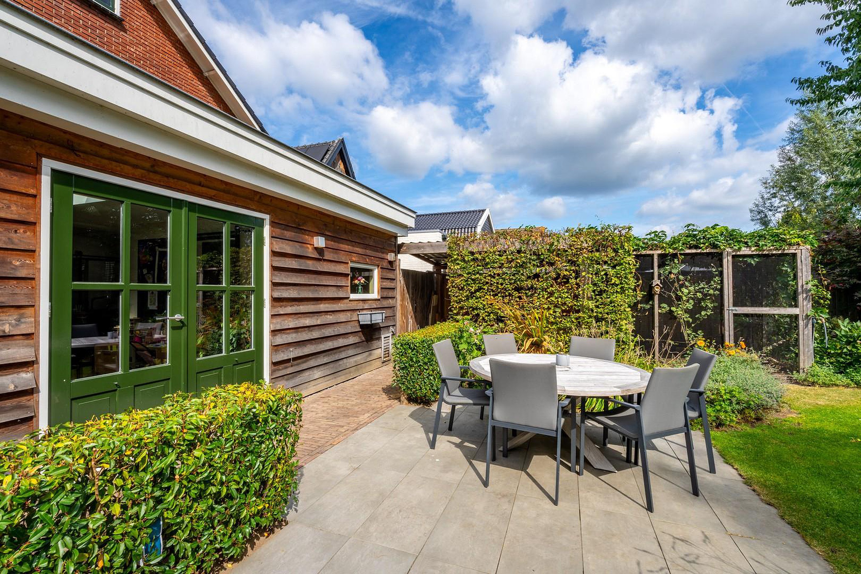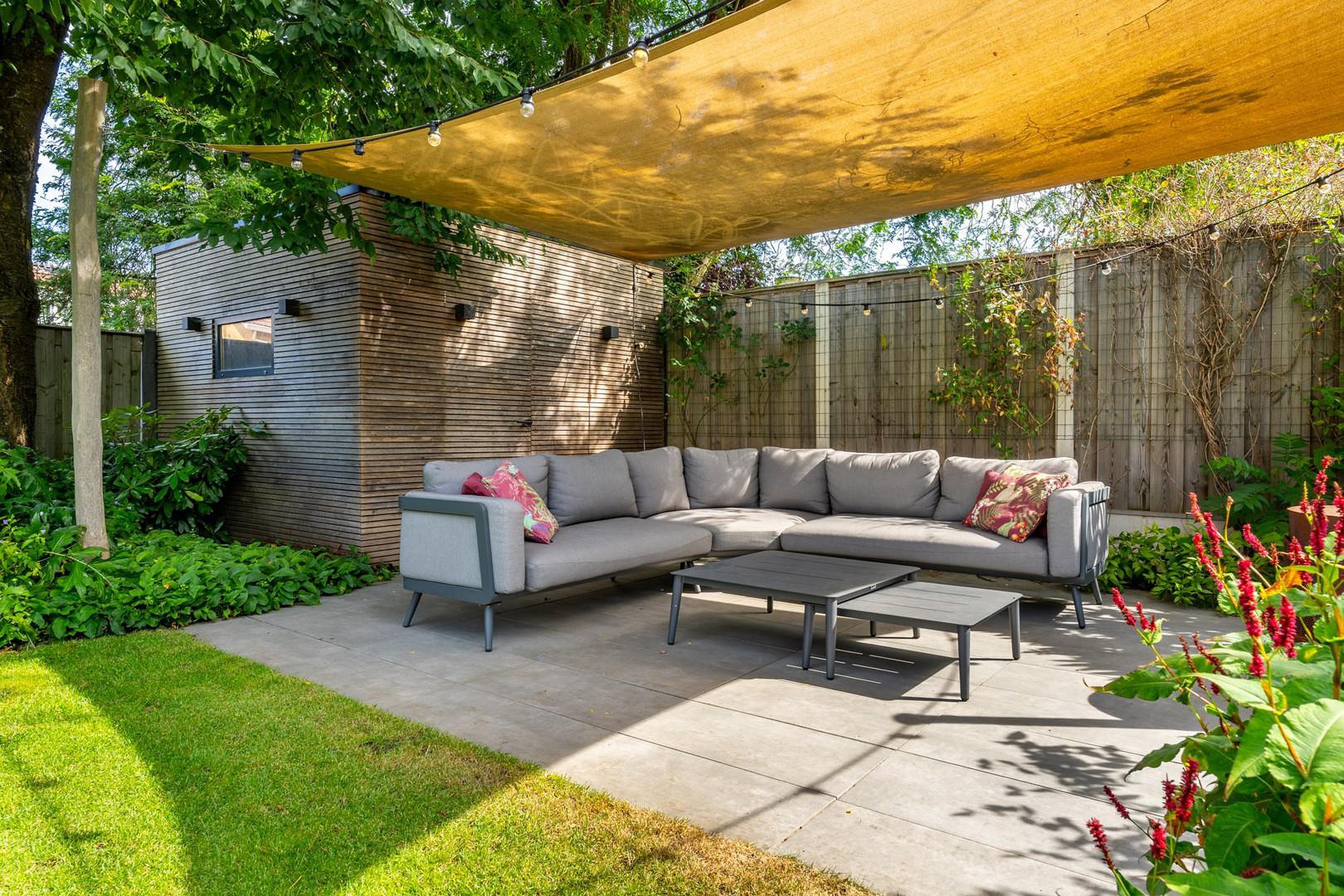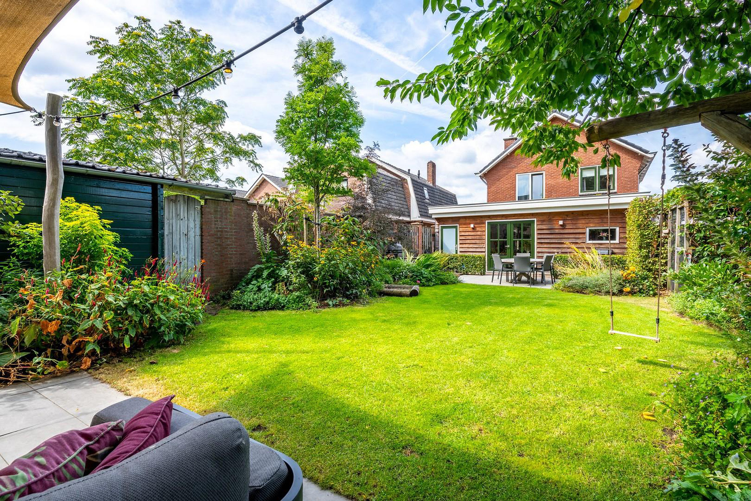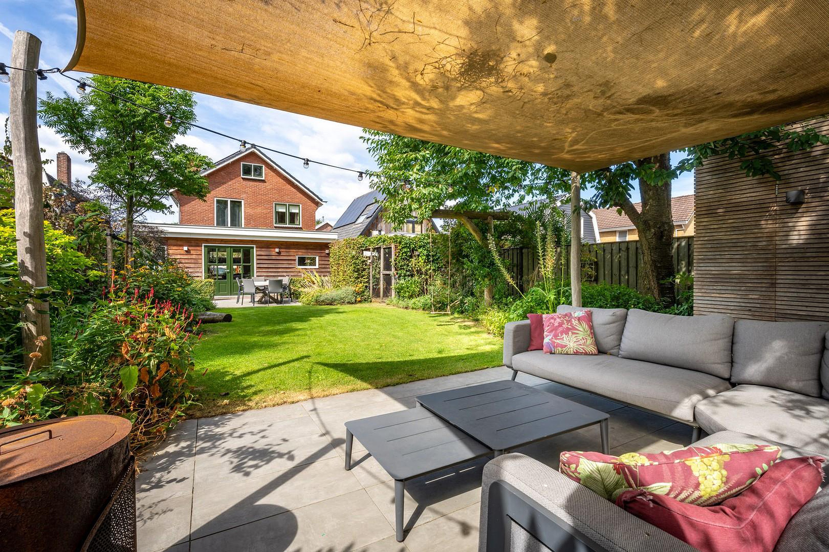 De achtertuin is fraai aangelegd met gazon en meerdere terrassen, zodat u op elk moment van de dag kunt genieten van zon of schaduw. Een fijne plek voor kinderen om te spelen of om met vrienden en familie buiten te zitten. Daarnaast bevindt zich in de achtertuin nog een vrijstaand schuurtje.