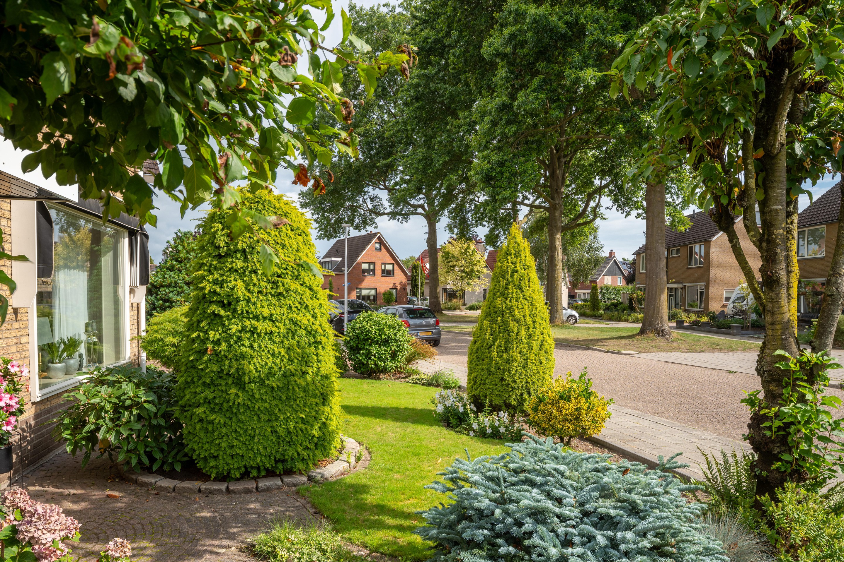 De woning beschikt over een fraai aangelegde voortuin, voorzien van een strak gazon en diverse beplantingen. Daarnaast bevindt zich aan de voorzijde van de woning een ruime oprit met carport, waar u met gemak twee auto’s kunt parkeren.