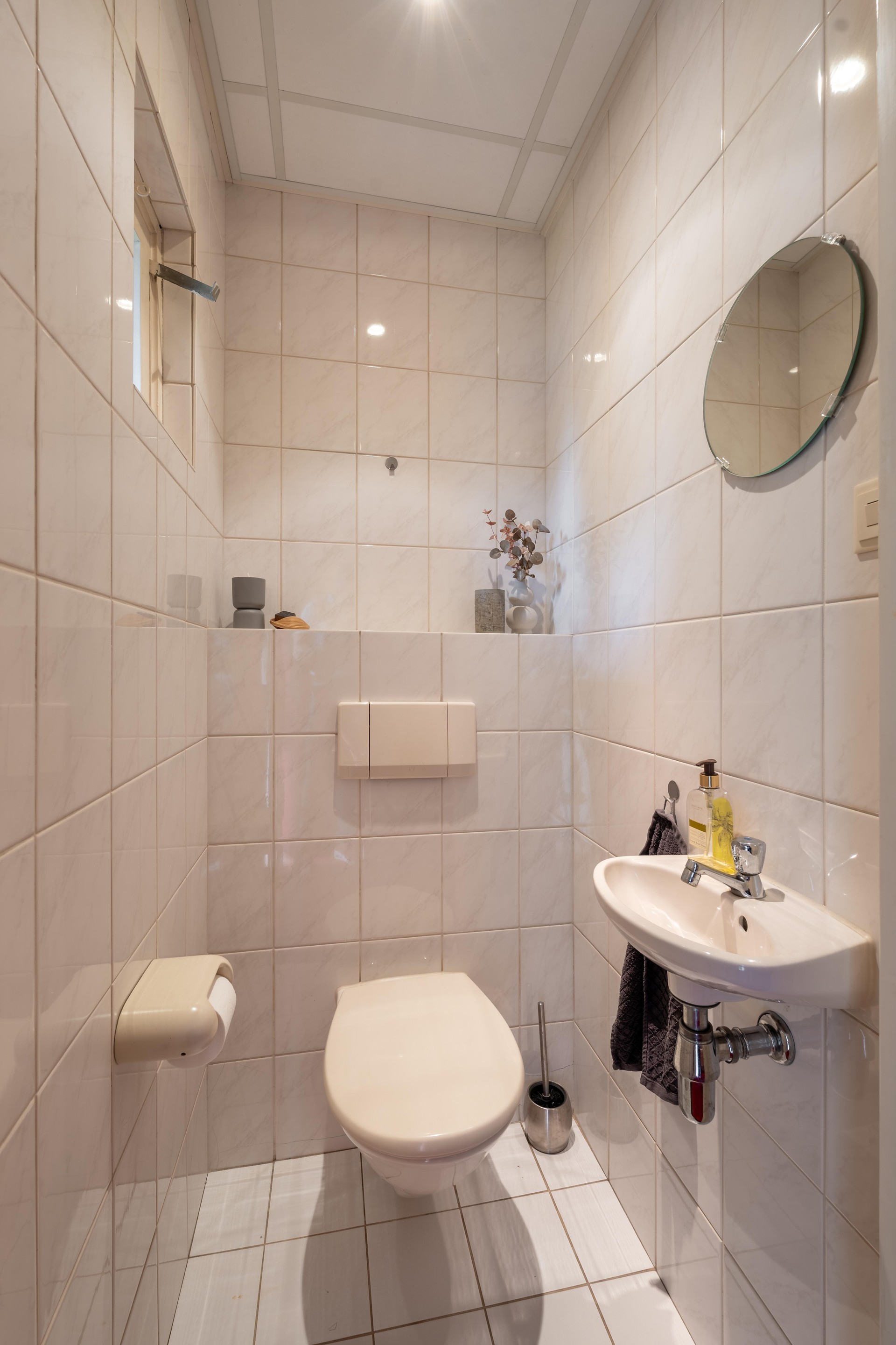 Entree/hal met toilet, trapopgang, meterkast en vaste kast. Vanuit de hal heeft u toegang tot de keuken, o.a. voorzien van vaatwasser, inductiekookplaat, afzuigkap, combimagnetron en toegang tot een kelderkast. De keuken biedt daarnaast toegang tot de ruime, straatgerichte woonkamer met veel natuurlijk lichtinval, en een ruime berging met inbouwkast, wastafel en toegang tot de tuin.