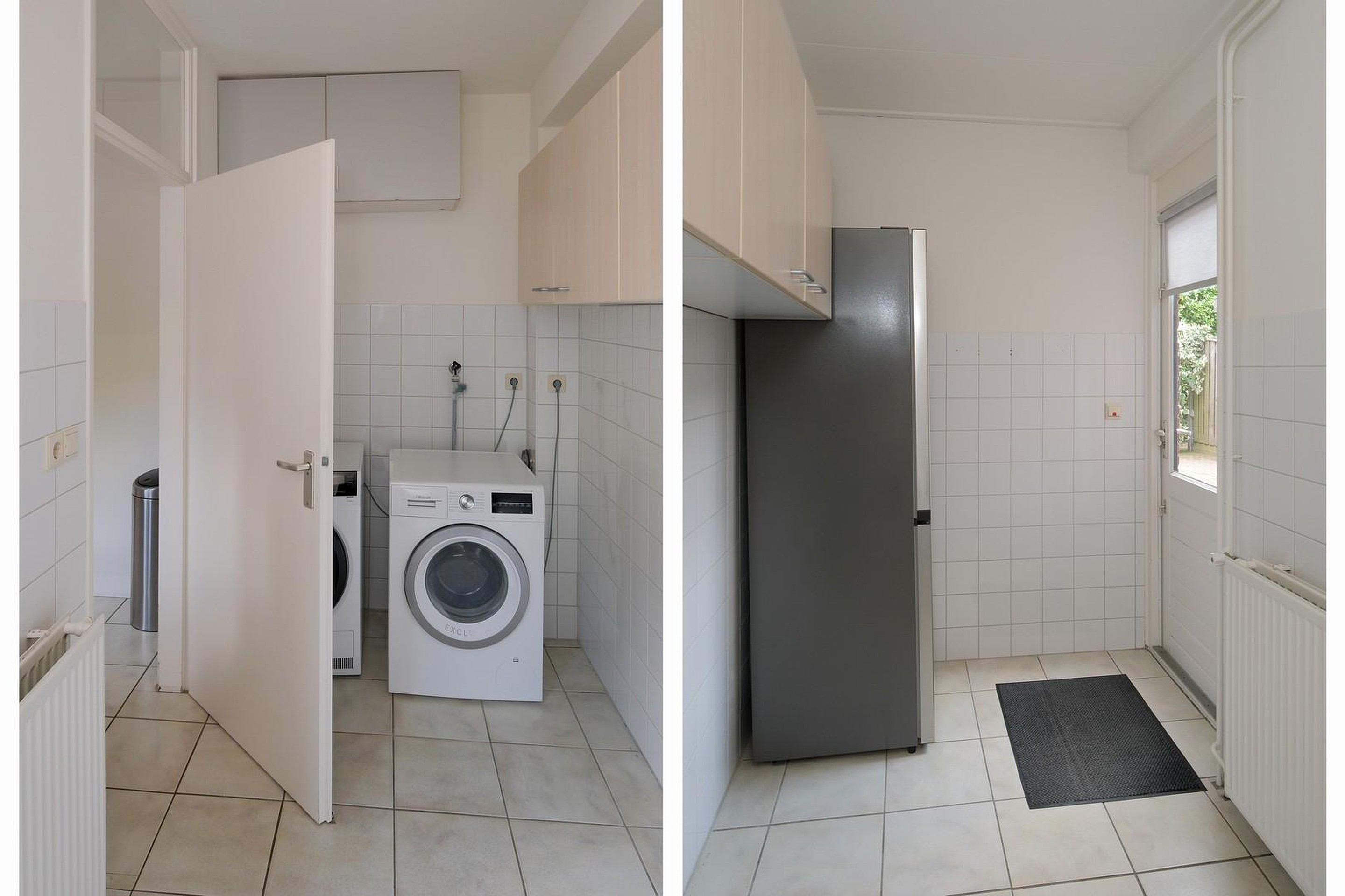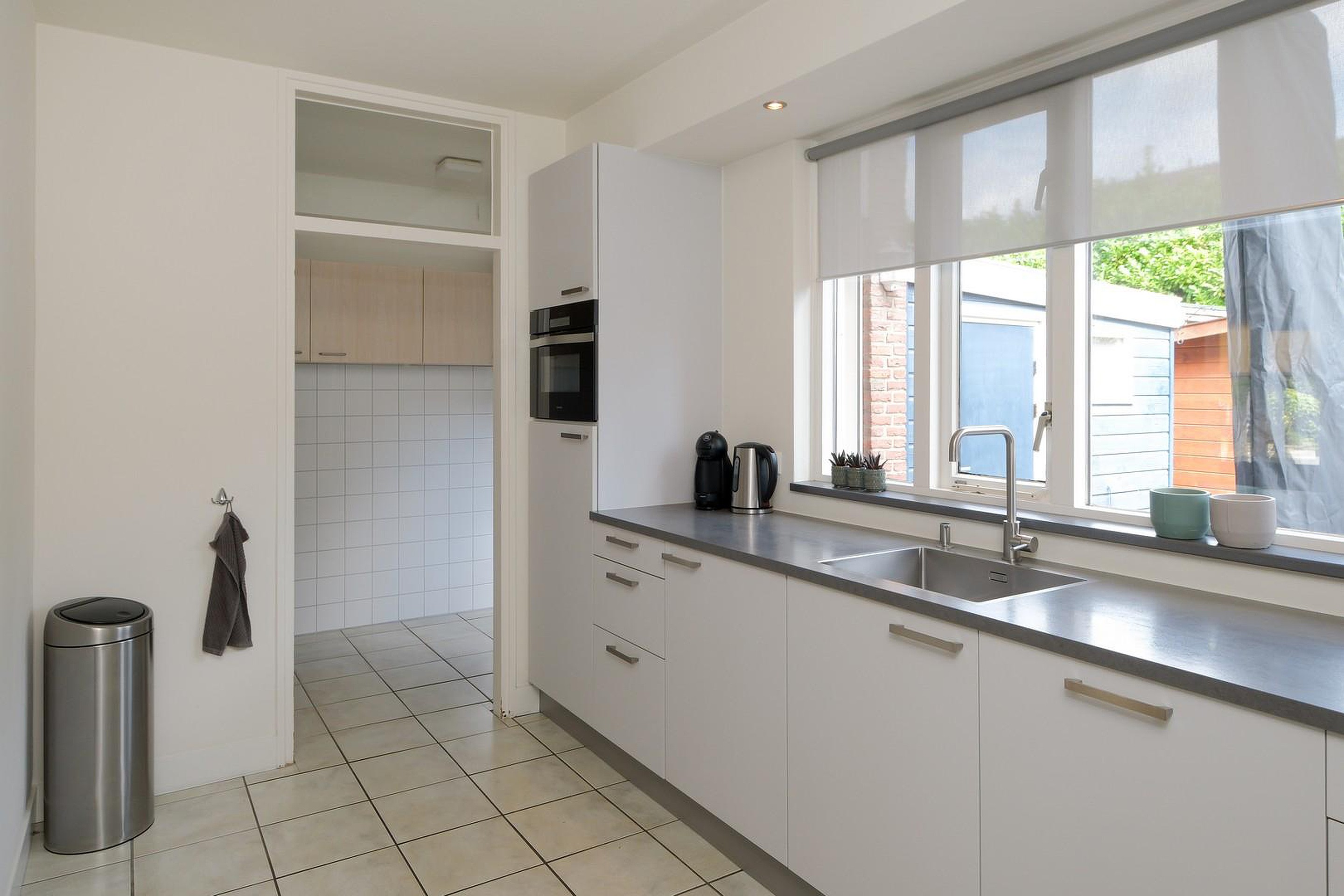 Entree, toilet, meterkast, woonkamer, keuken en ruime berging met doorgang naar de tuin. De woonkamer is voorzien van een parketvloer en de keuken beschikt over een gasfornuis, afzuigkap, oven en vaatwasser.