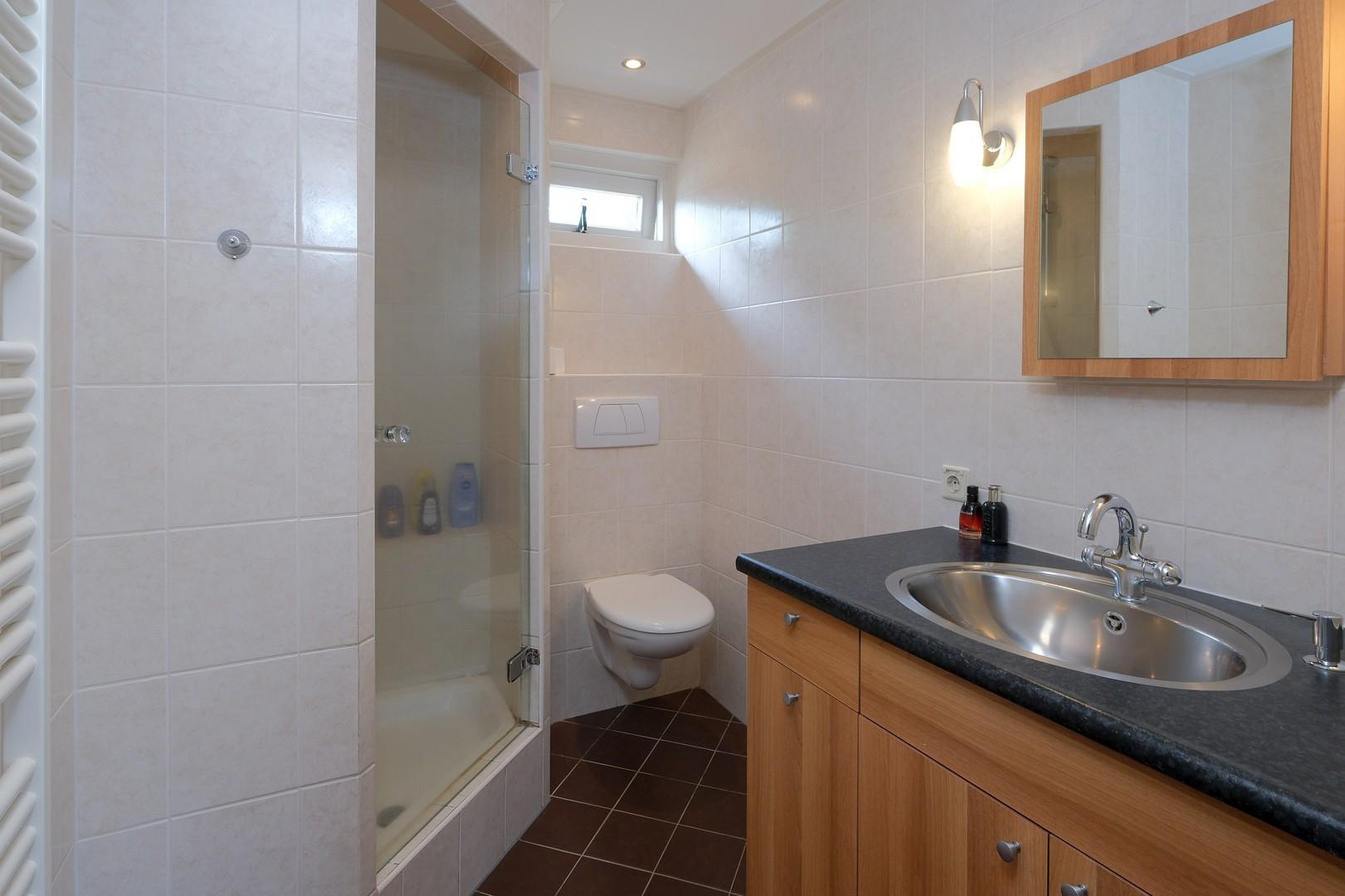 Overloop, drie ruime slaapkamers en complete badkamer voorzien van badkamermeubel, design radiator, toilet en douche.