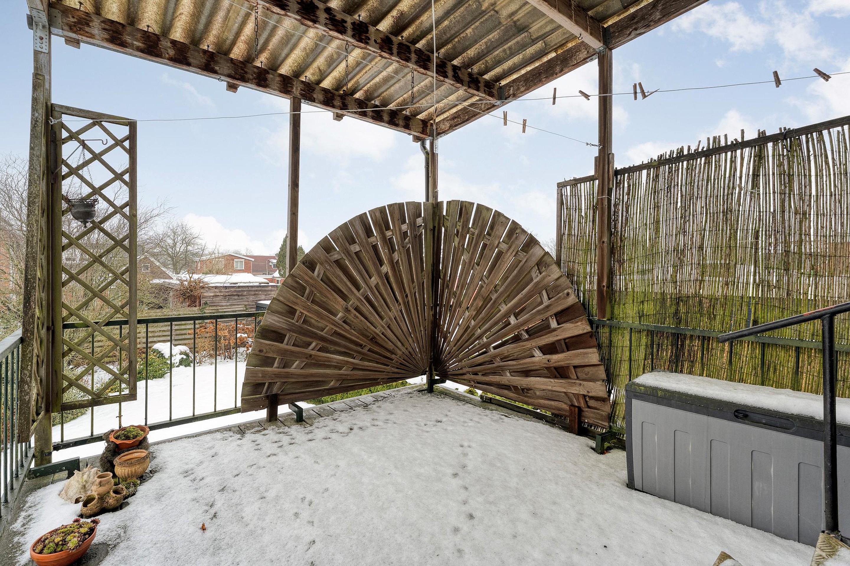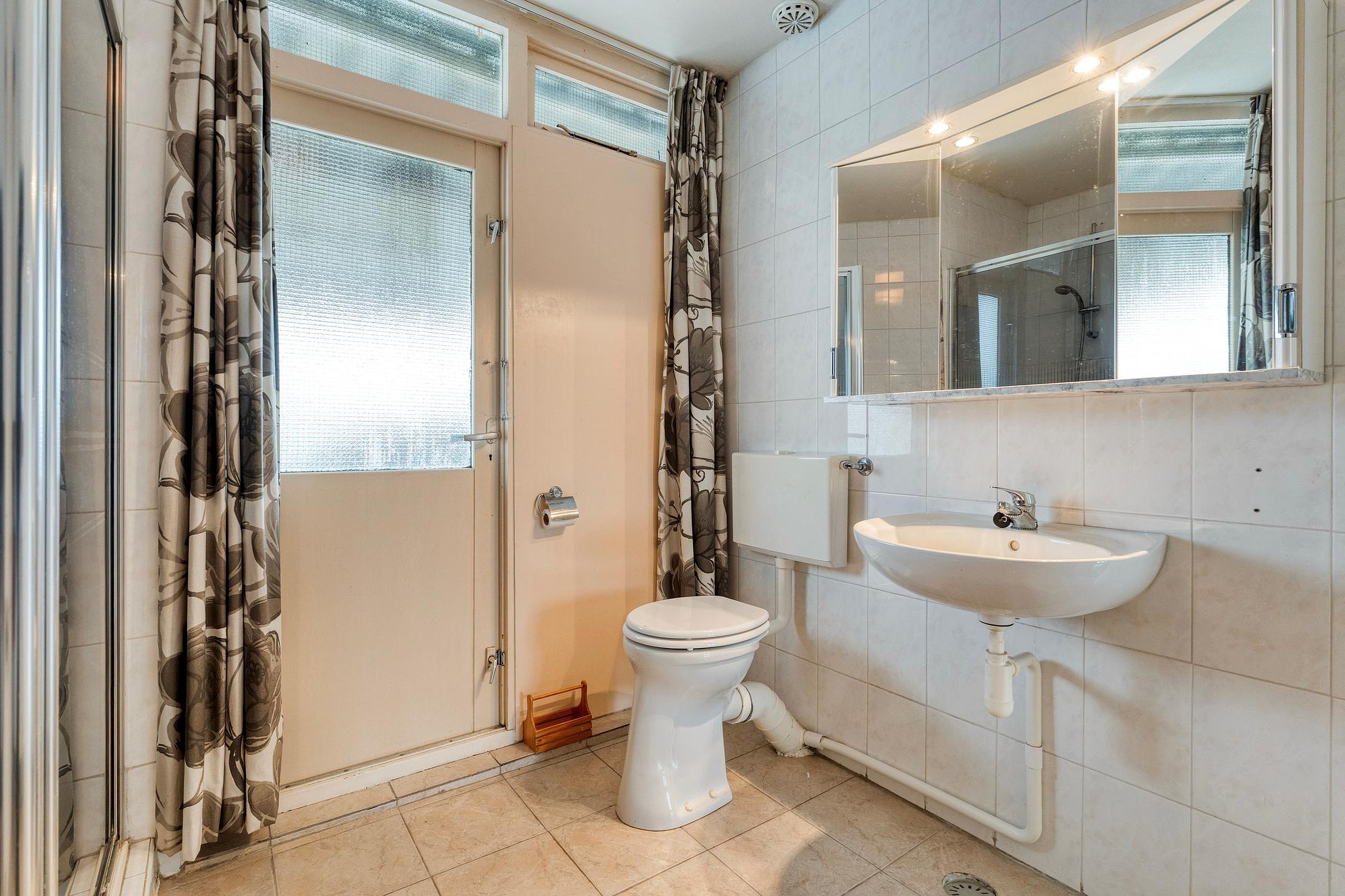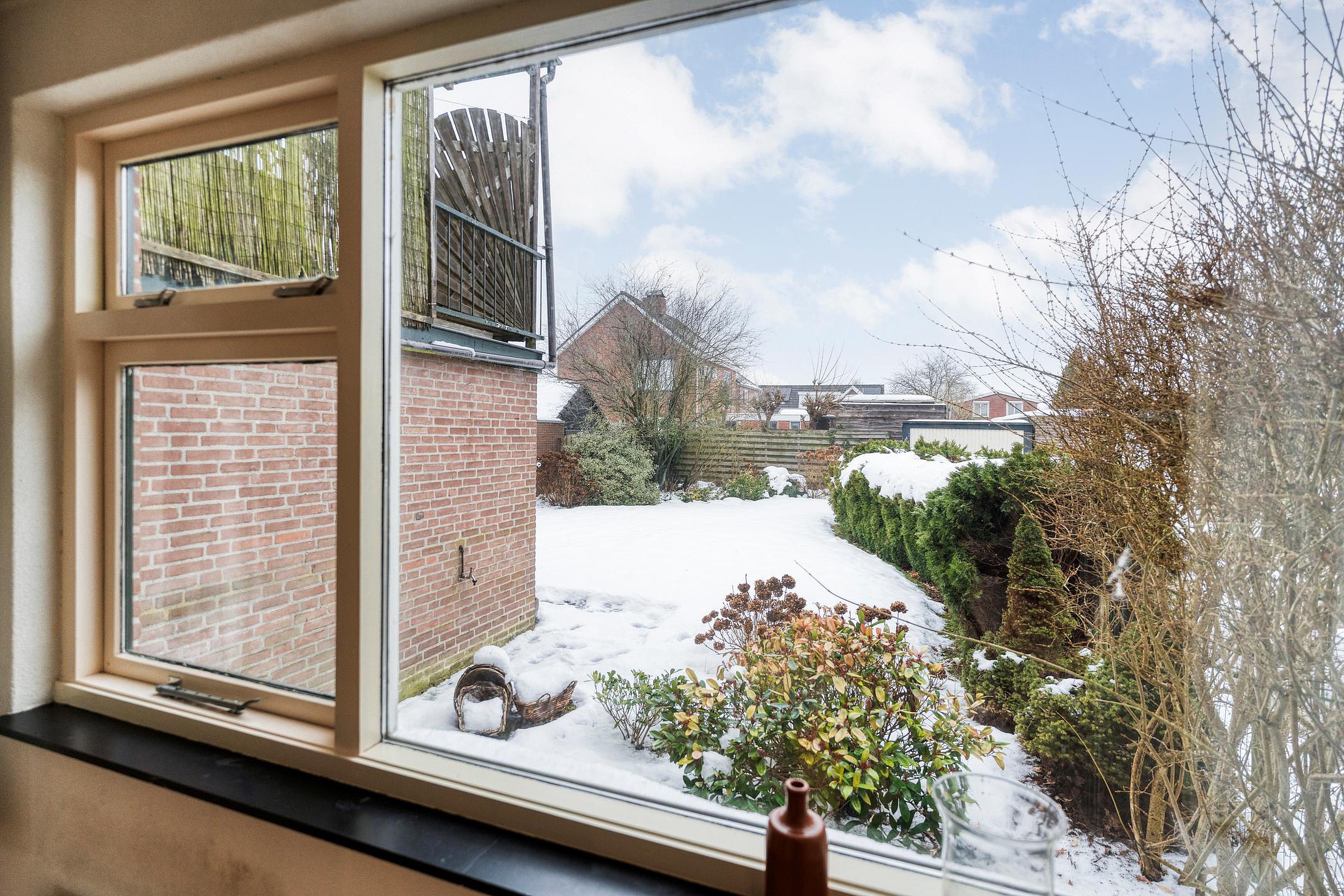 Achter de woning een aangebouwde berging met eigen toegangsdeur.
