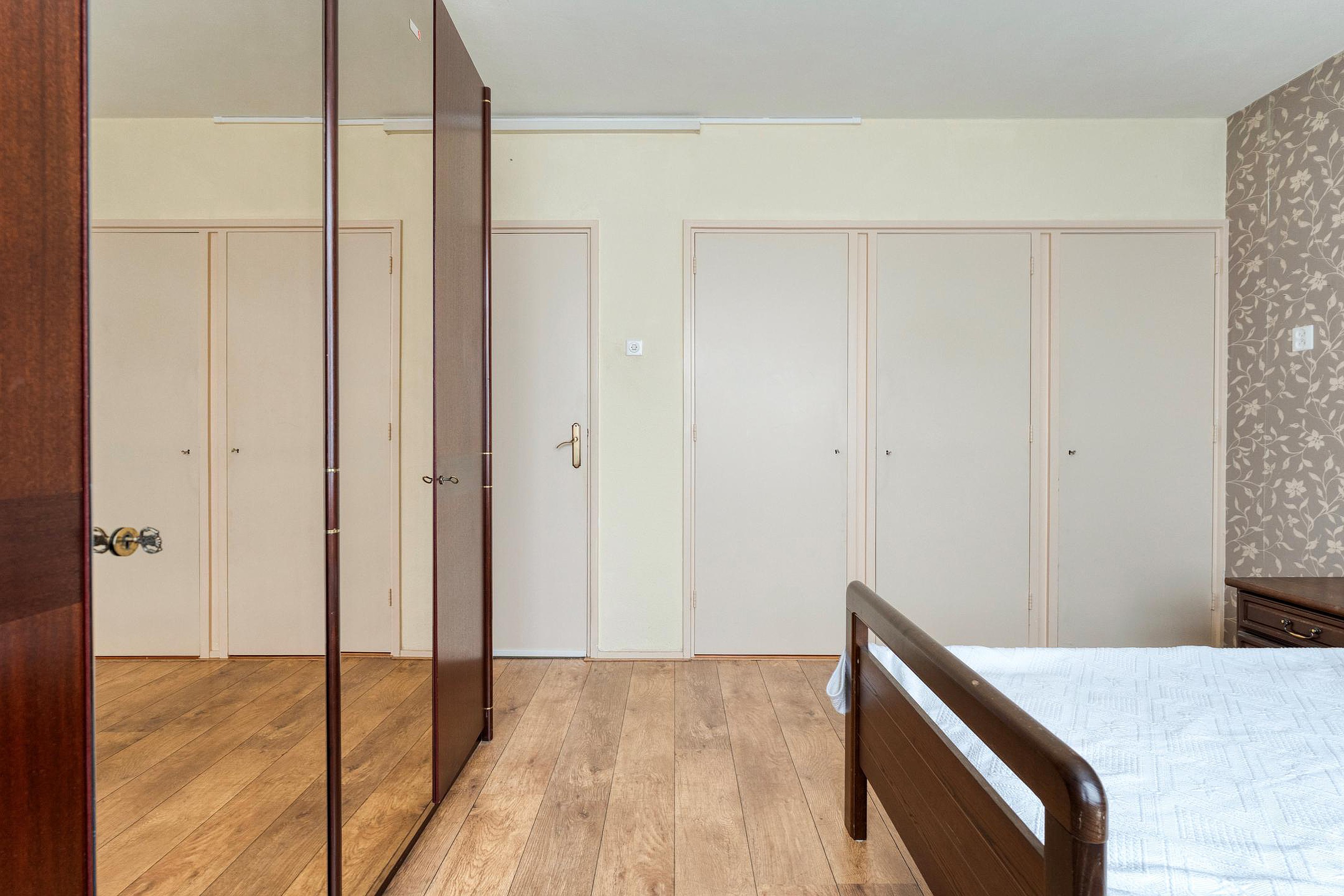 Aan de achterzijde een tweede slaapkamer en tenslotte een zeer ruime badkamer met balkondeur en toegang tot het dakterras.