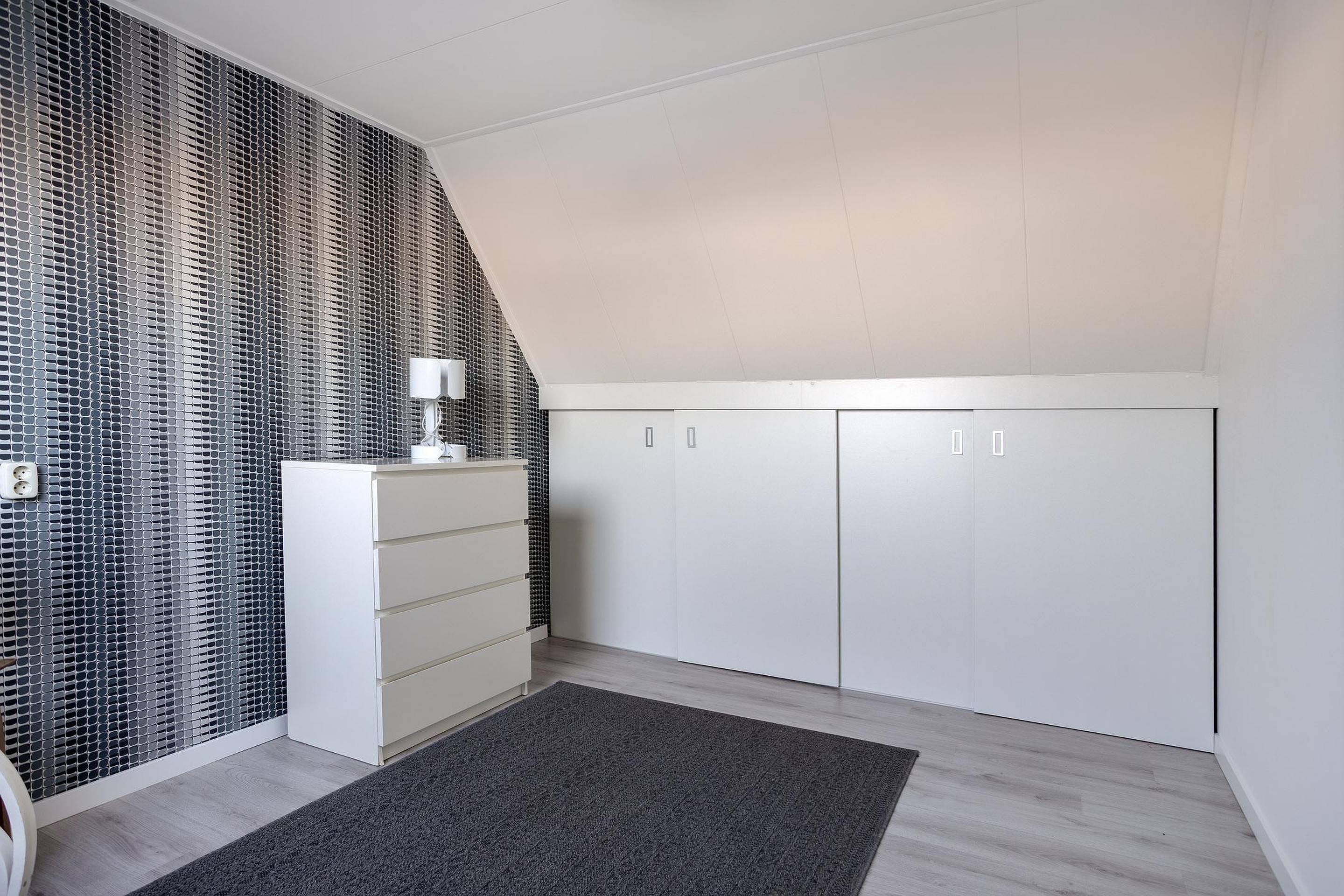 De perfecte thuiswerkkamer, welke aan de achterzijde van de woning is gelegen. Ook hier zorgt het dakkapel voor veel daglicht en ruimte. Wil je een extra slaapkamer? Dan is dit ook zeker een prima kinderslaapkamer, of voor de shoppers onder ons een walk-in-closet. Het rolluik zorgt voor verduistering.