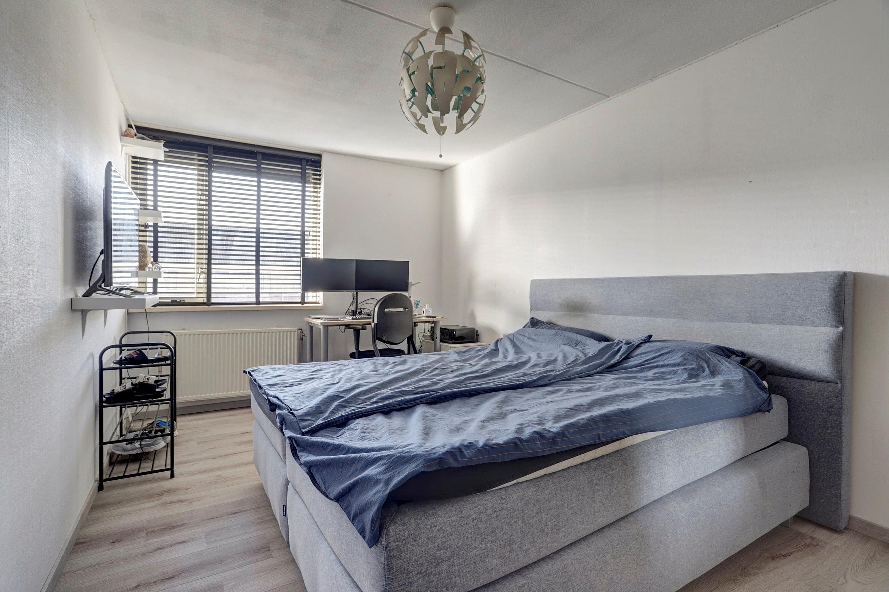 De hoofdslaapkamer aan de achterzijde is ruim van formaat (ca. 14m2) en biedt voldoende ruimte voor een tweepersoonsbed en kastruimte. De overige twee slaapkamers (ca. 12m2 en 7m2) zijn eveneens goed in te richten als kinder-, werk- of hobbykamer. Dankzij de rechte gevels zijn de kamers praktisch indeelbaar en prettig licht. Alle slaapkamers zijn voorzien van behangen wanden en een laminaatvloer.