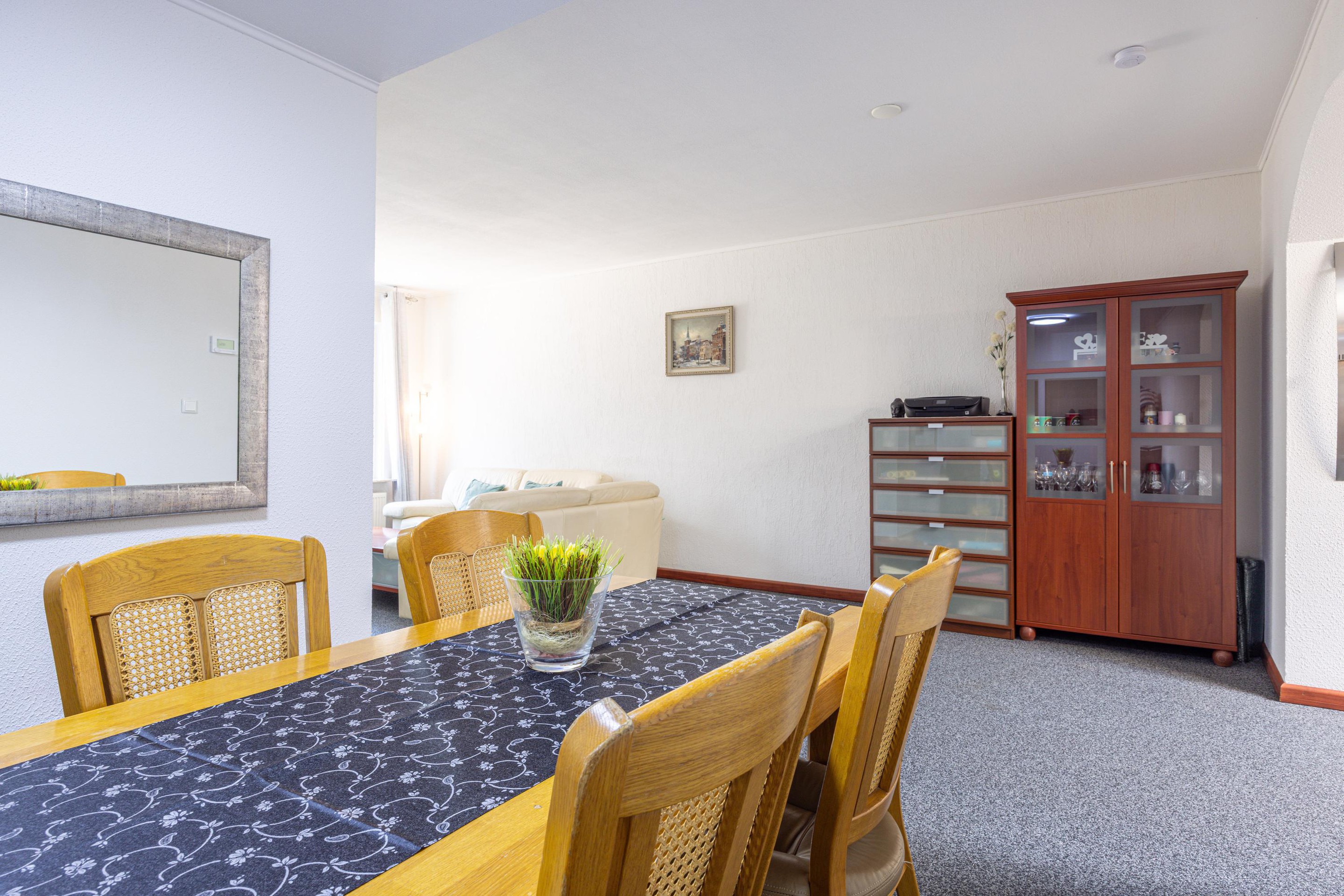 Aan de Tripsstraat in Eygelshoven ligt deze goed onderhouden tussenwoning met aanbouw, diepe achtertuin en een vrijstaande garage met oprit. De woning beschikt over een ruime indeling, drie slaapkamers, een zolderverdieping met mogelijkheden voor een extra kamer en een verzorgde tuin met meerdere terrassen. Dankzij de uitbouw aan de achterzijde is de begane grond opvallend ruim opgezet en vormt de leefkeuken een centraal punt in de woning.