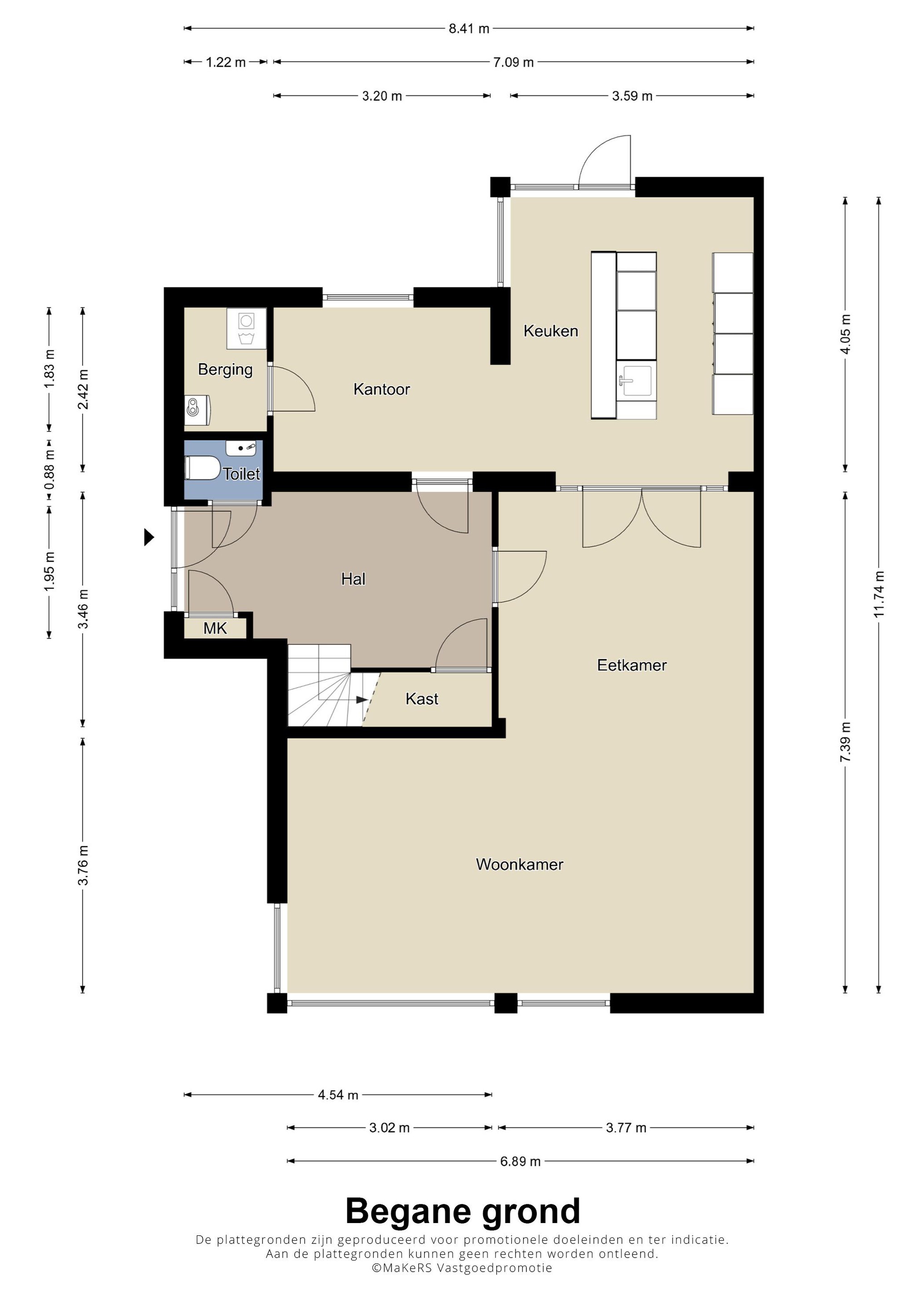 Vanuit de keuken is de kantoor ruimte toegankelijk.