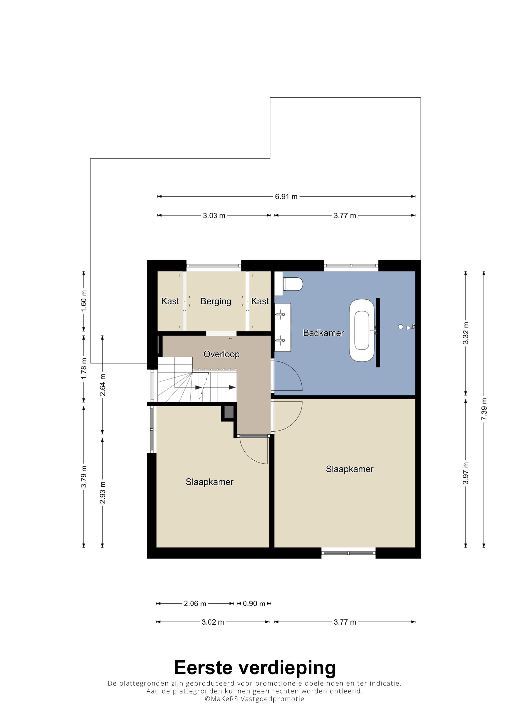 Overloop, berging/kleedruimte, twee ruime slaapkamers en een vernieuwde, luxueuze badkamer.