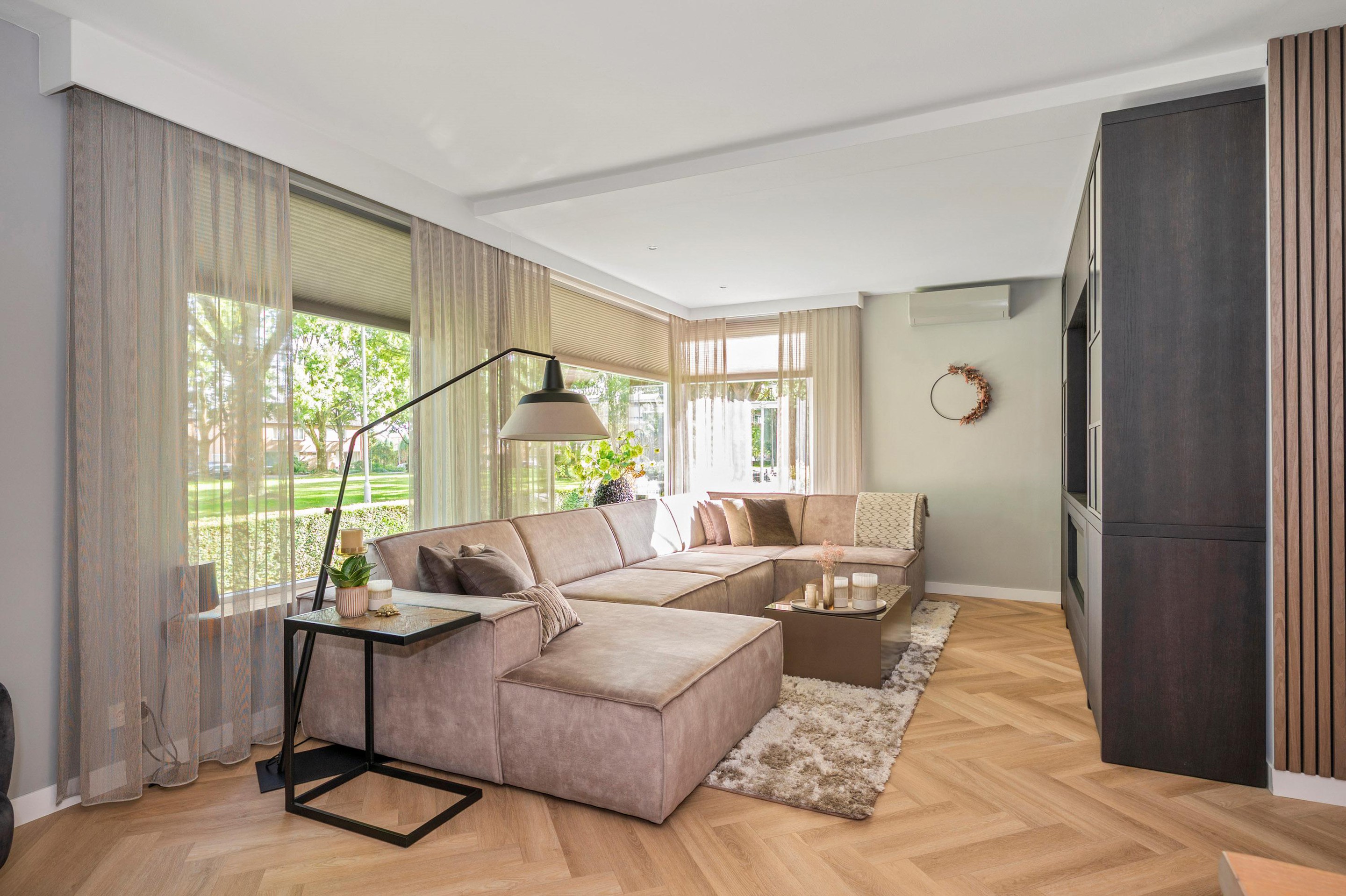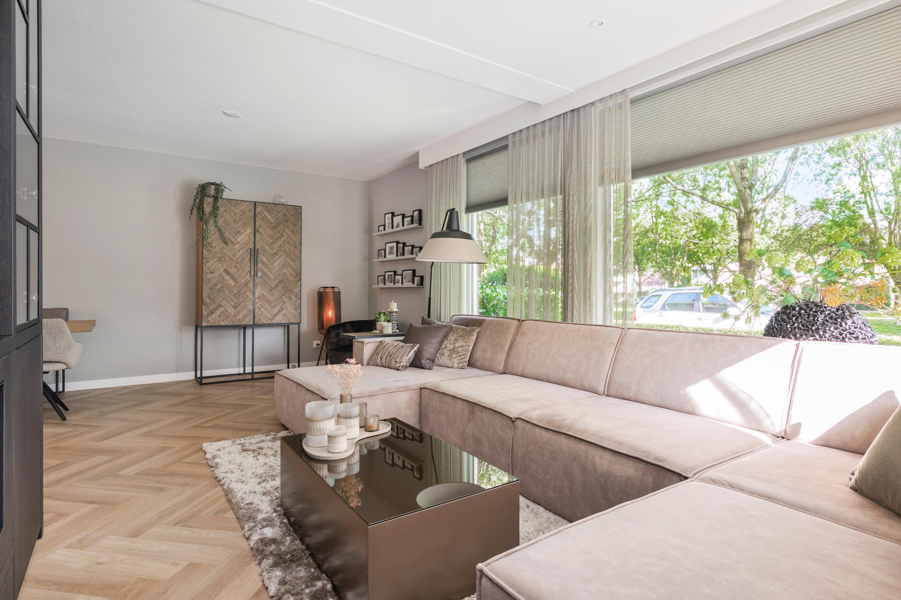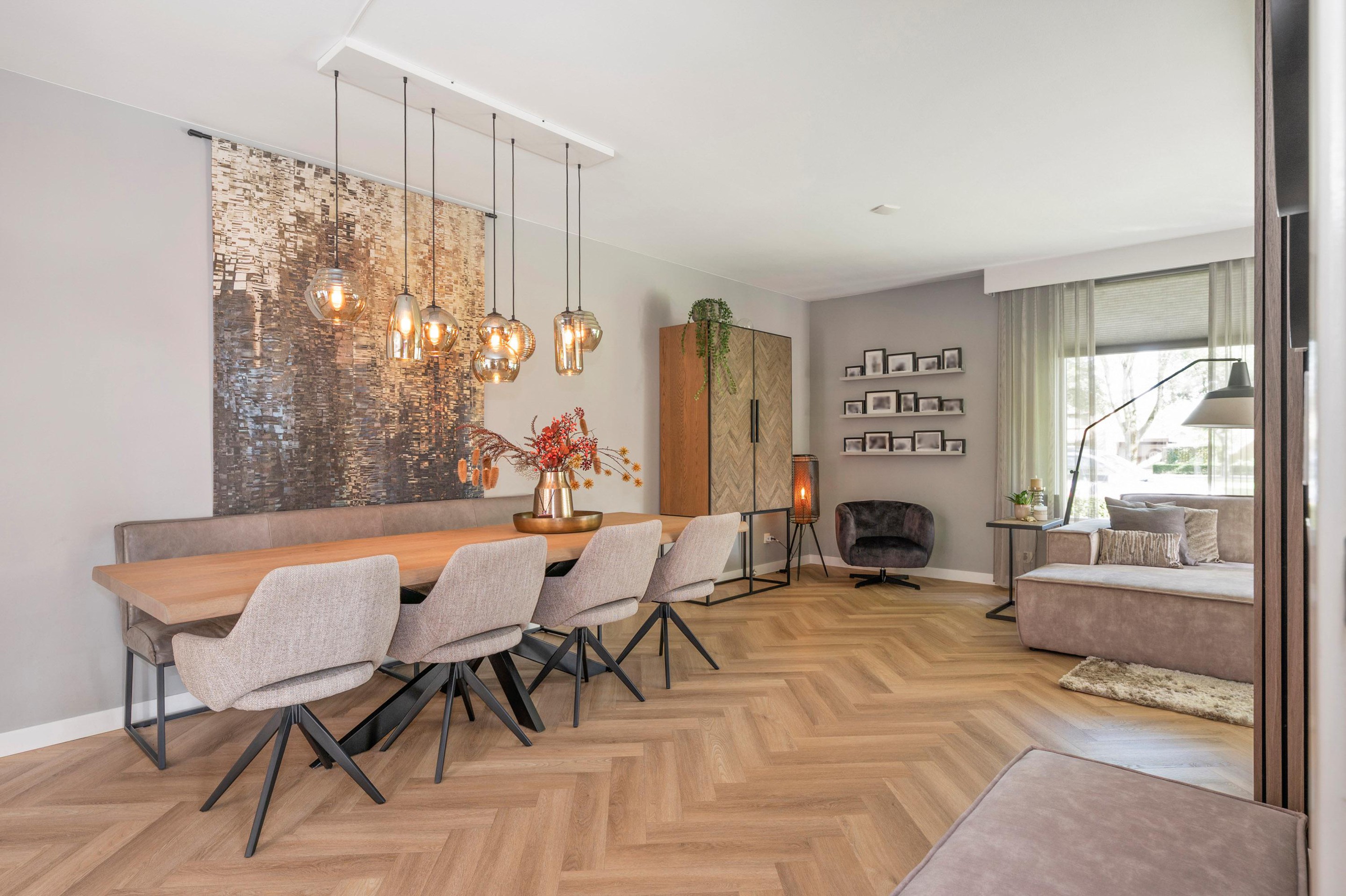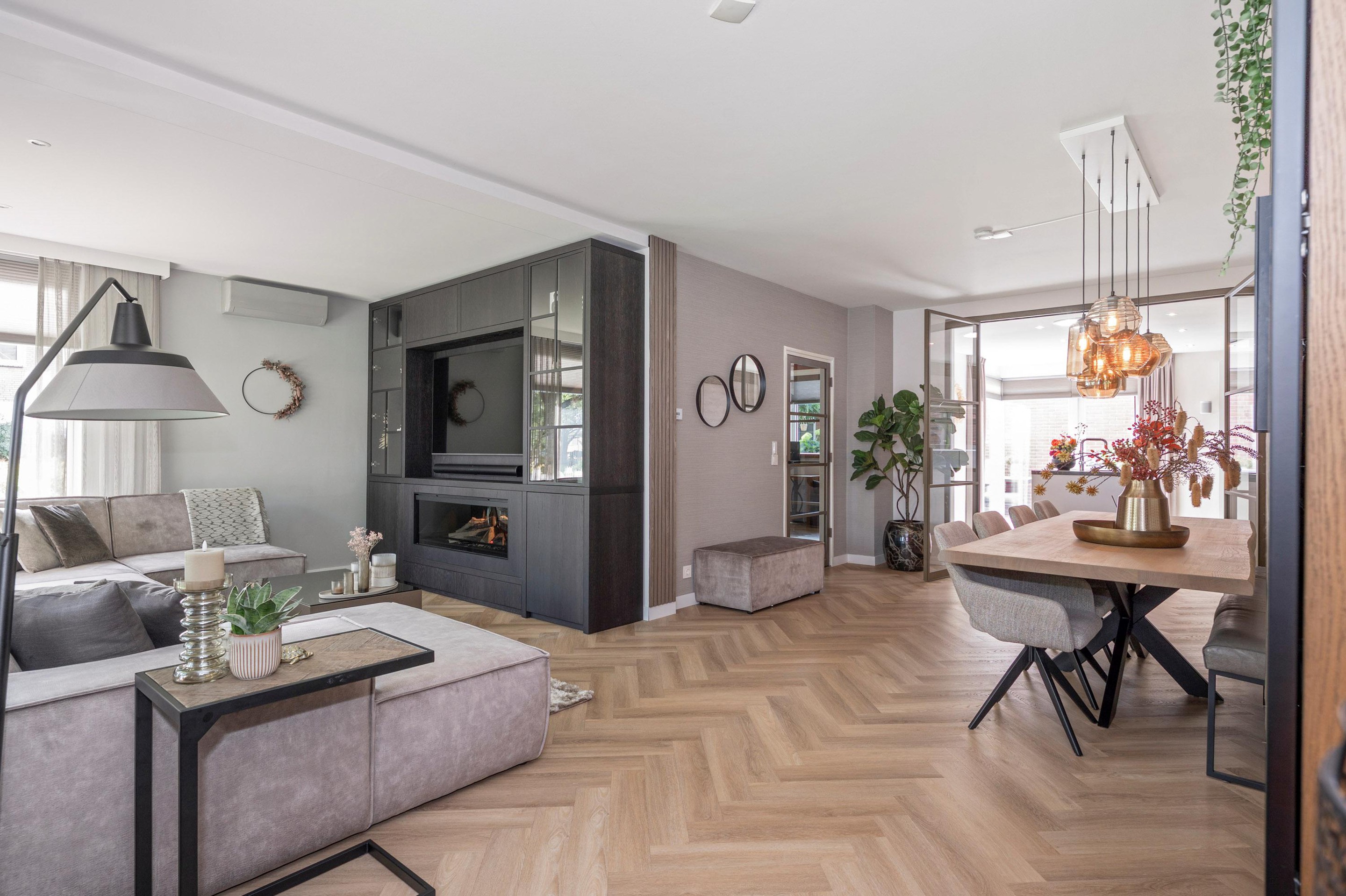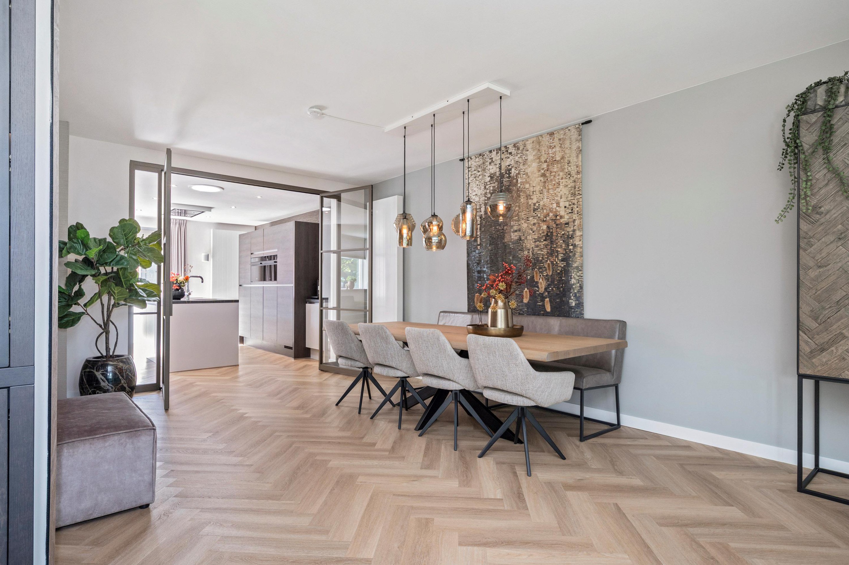 De gehele begane grond is voorzien van een pvc visgraatvloer.