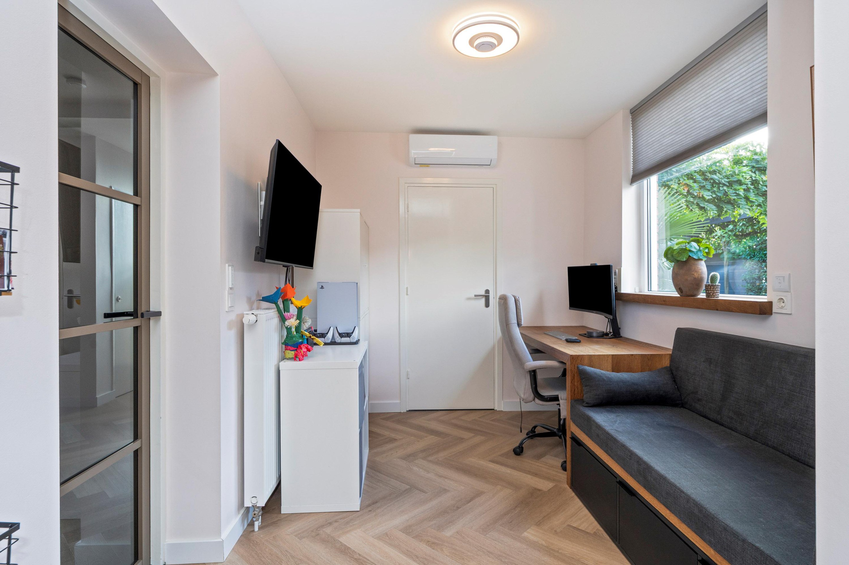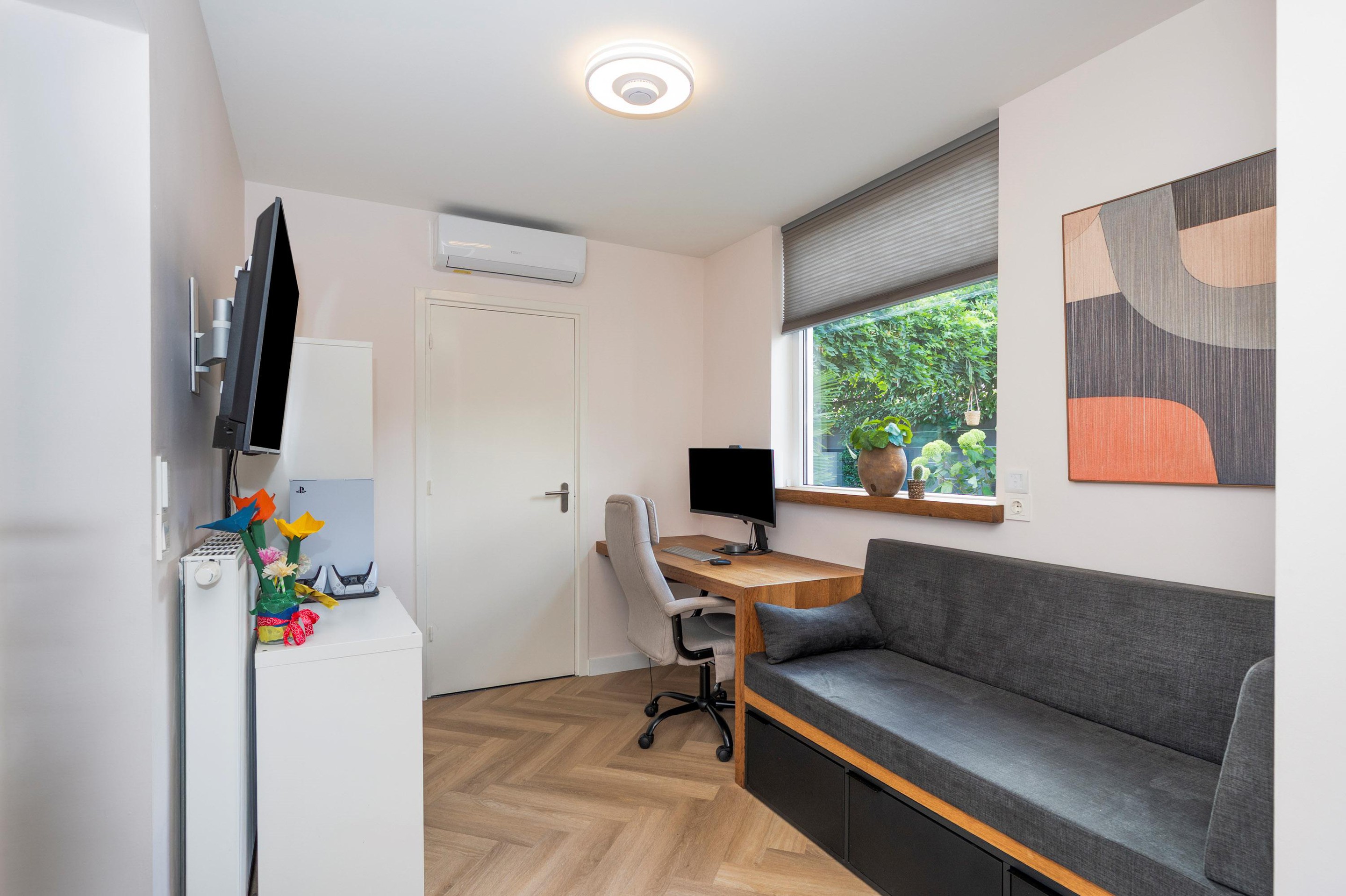 Zowel in de woonkamer als in de kantoorruimte bevindt zich een airco-unit.