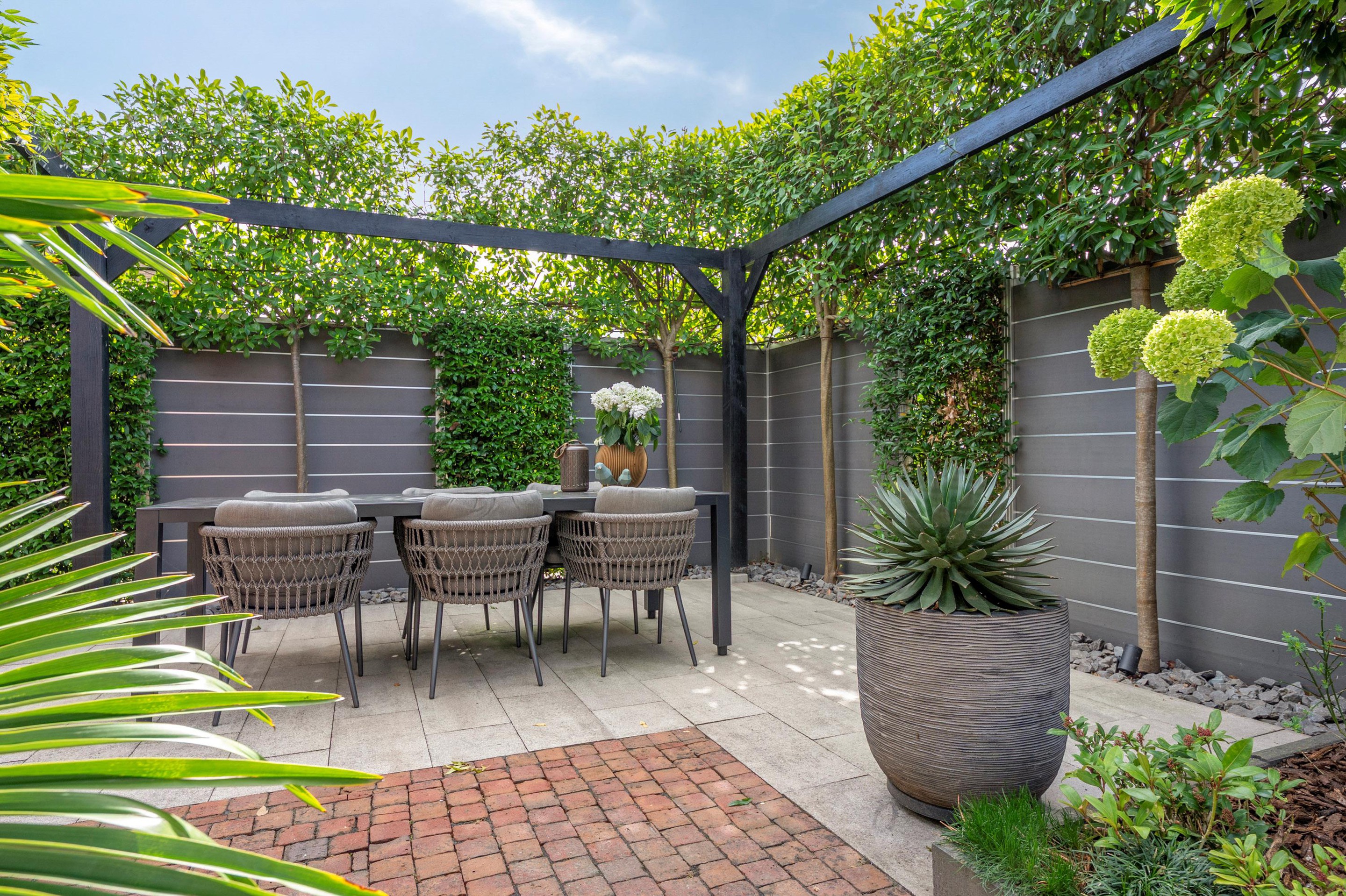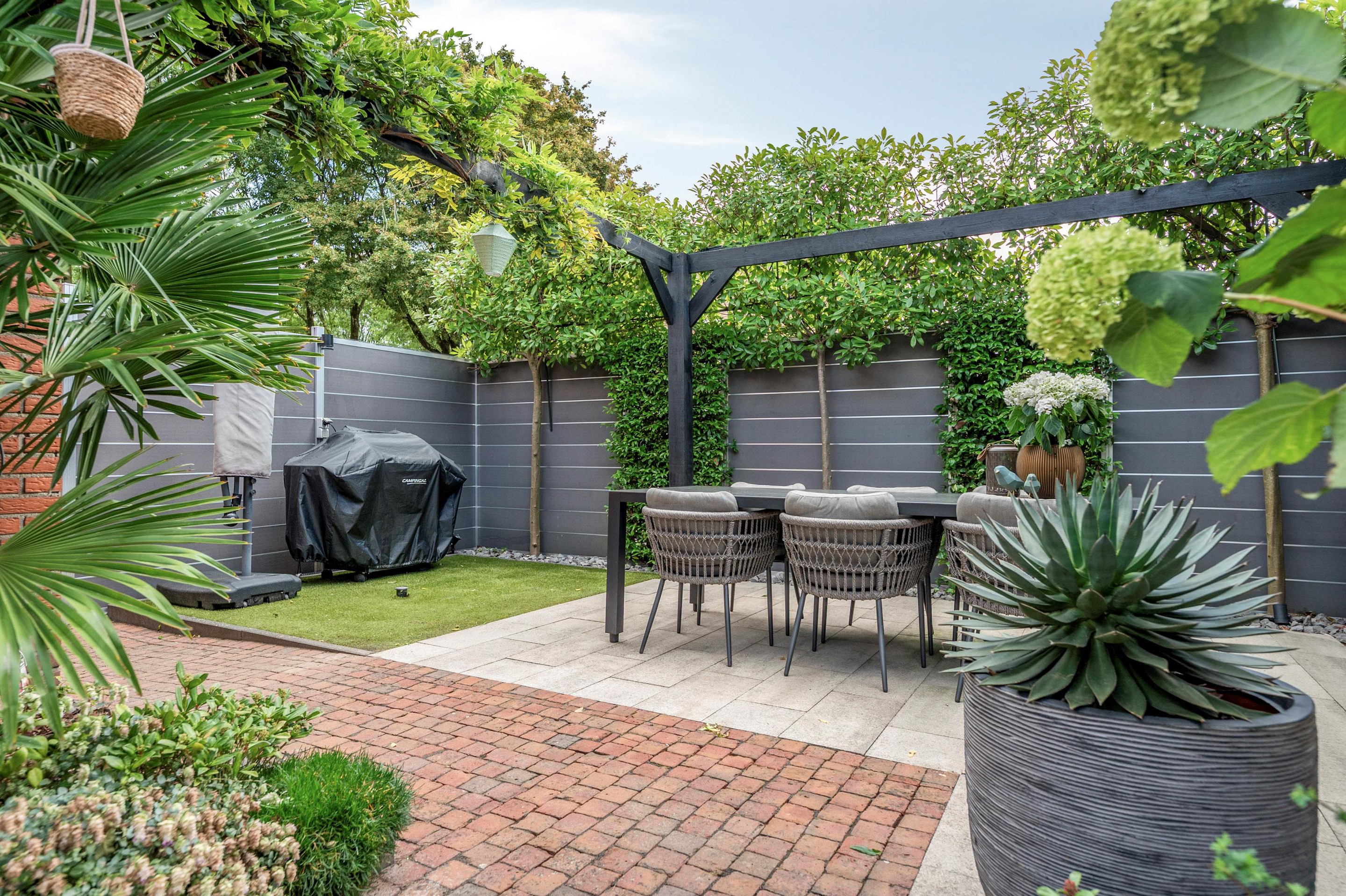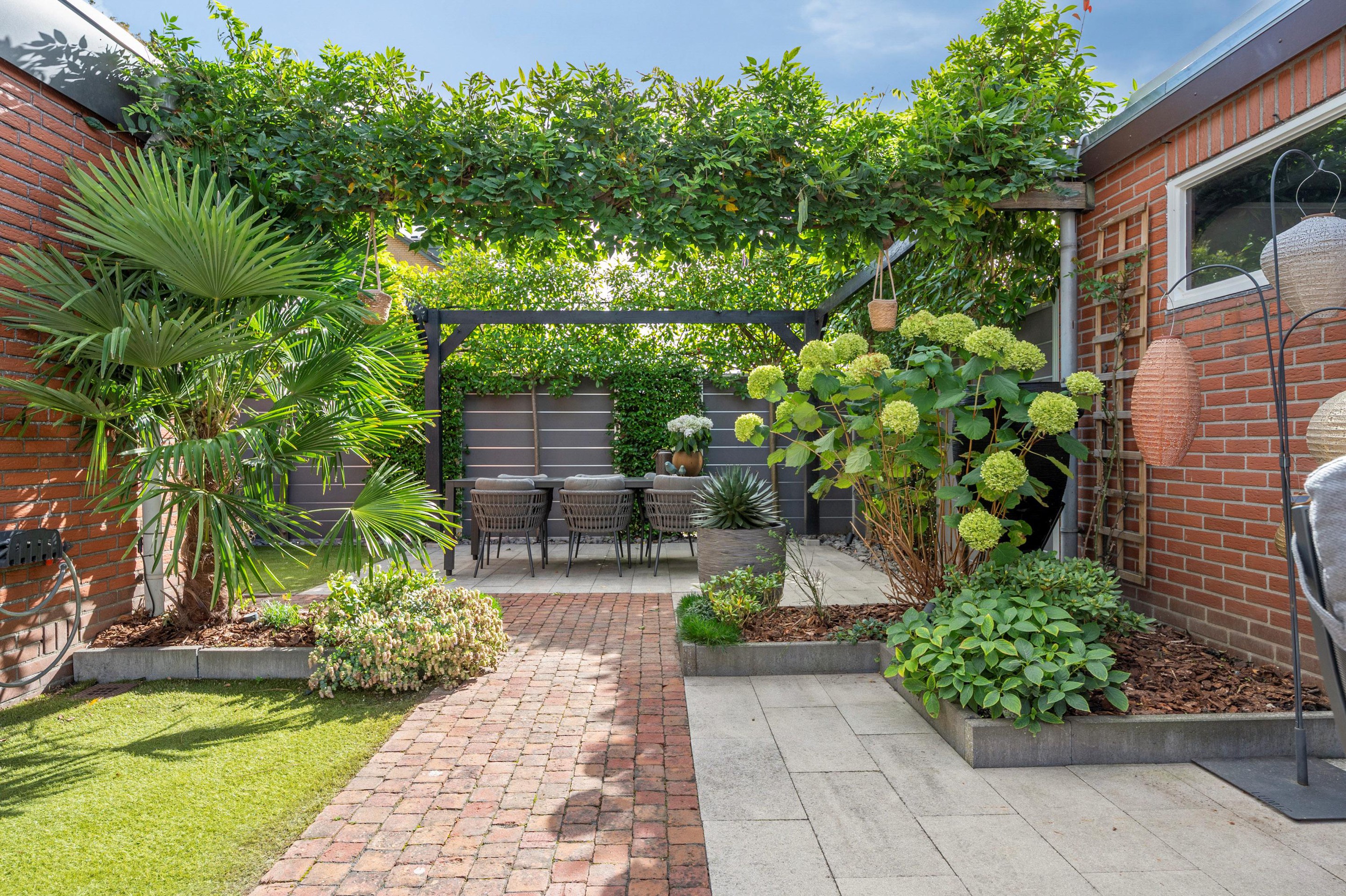 Keurig aangelegde en onderhouden gezellige tuin welke voorzien is van een 2 betegelde terrassen, een gazon en diverse borders met beplanting.