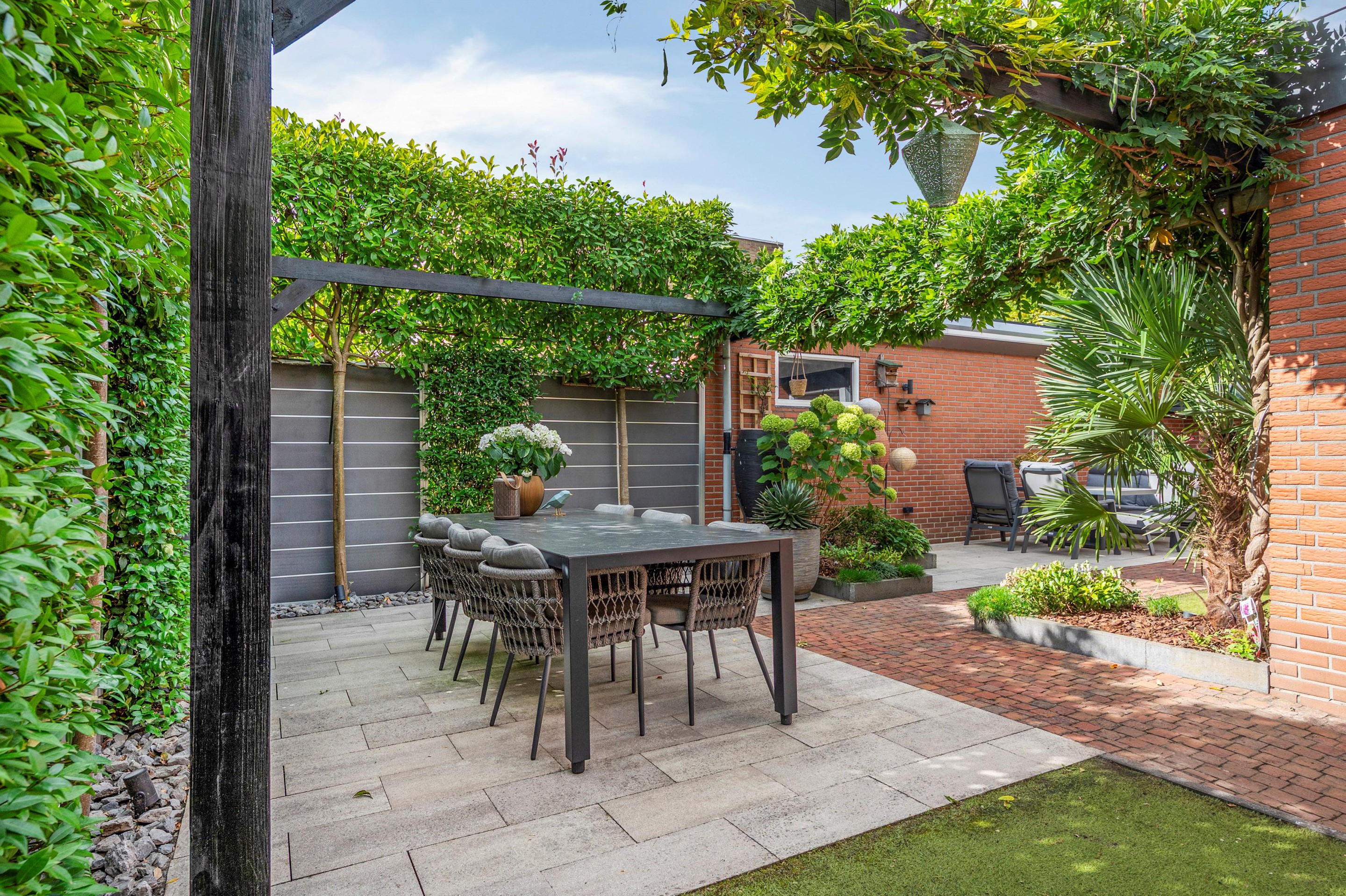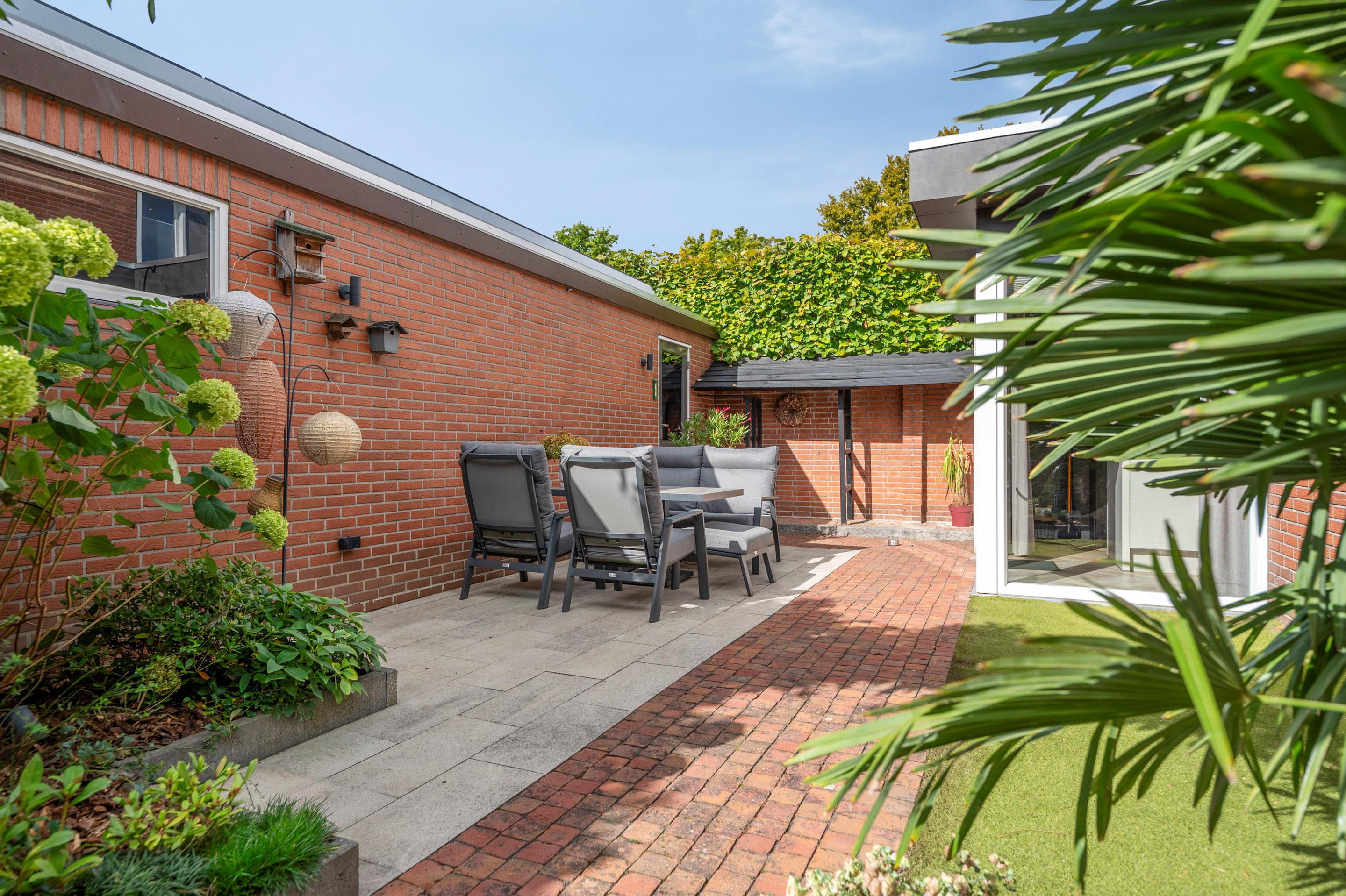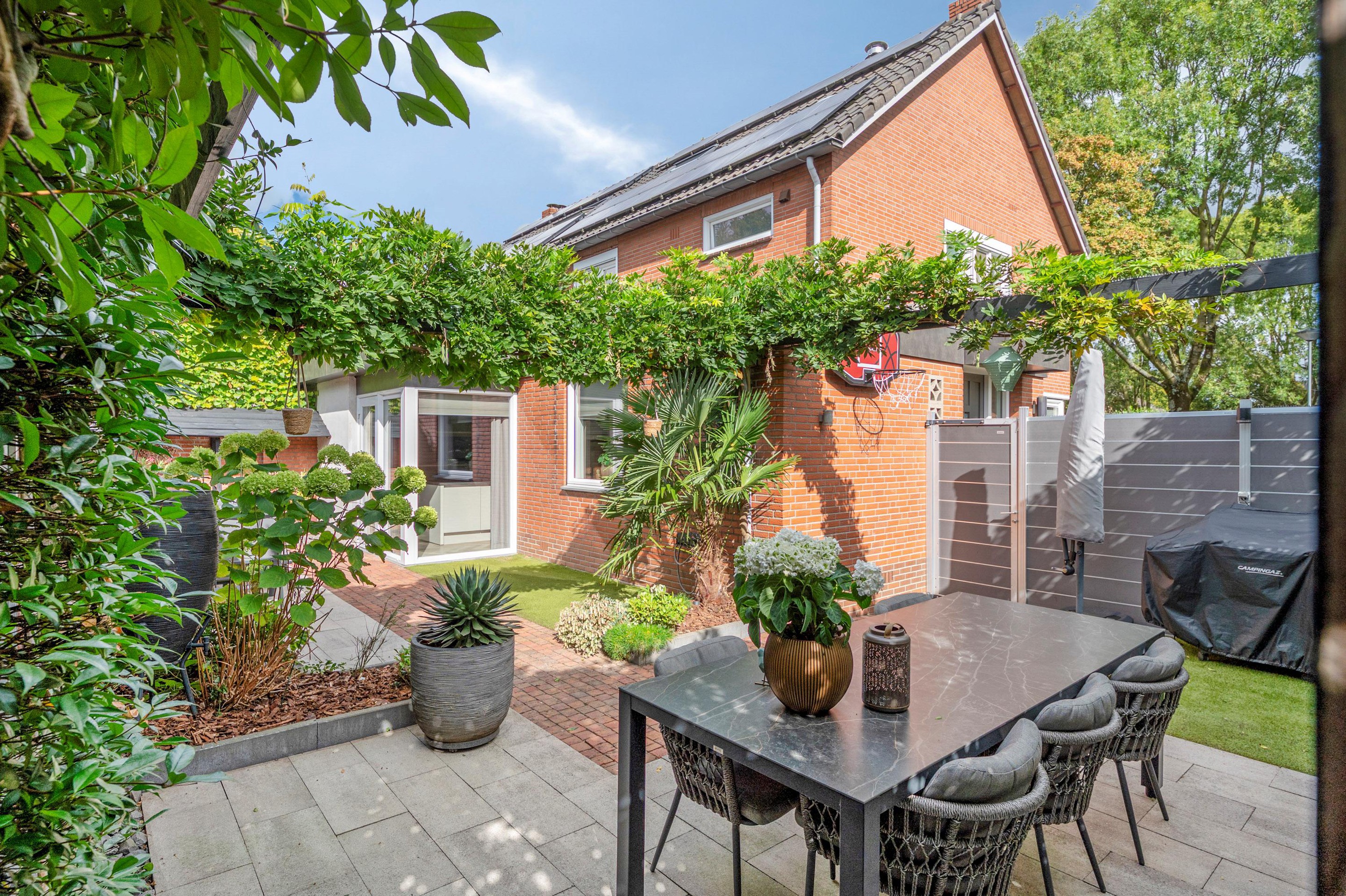Aan de achterzijde van de woning bevindt zich een ruime vrijstaande garage met voorgelegen oprit.